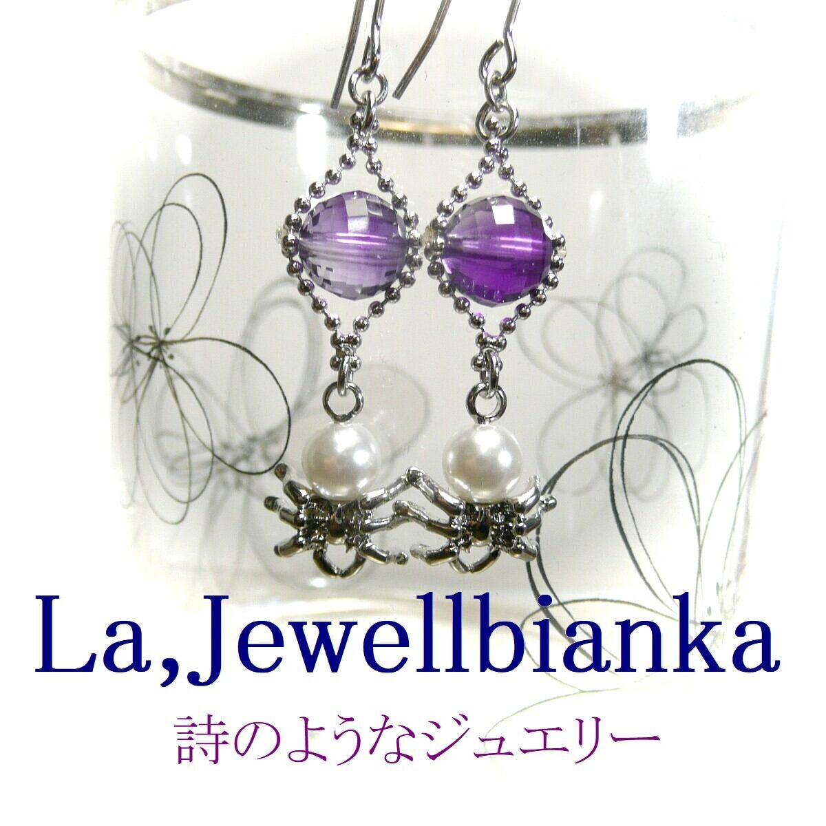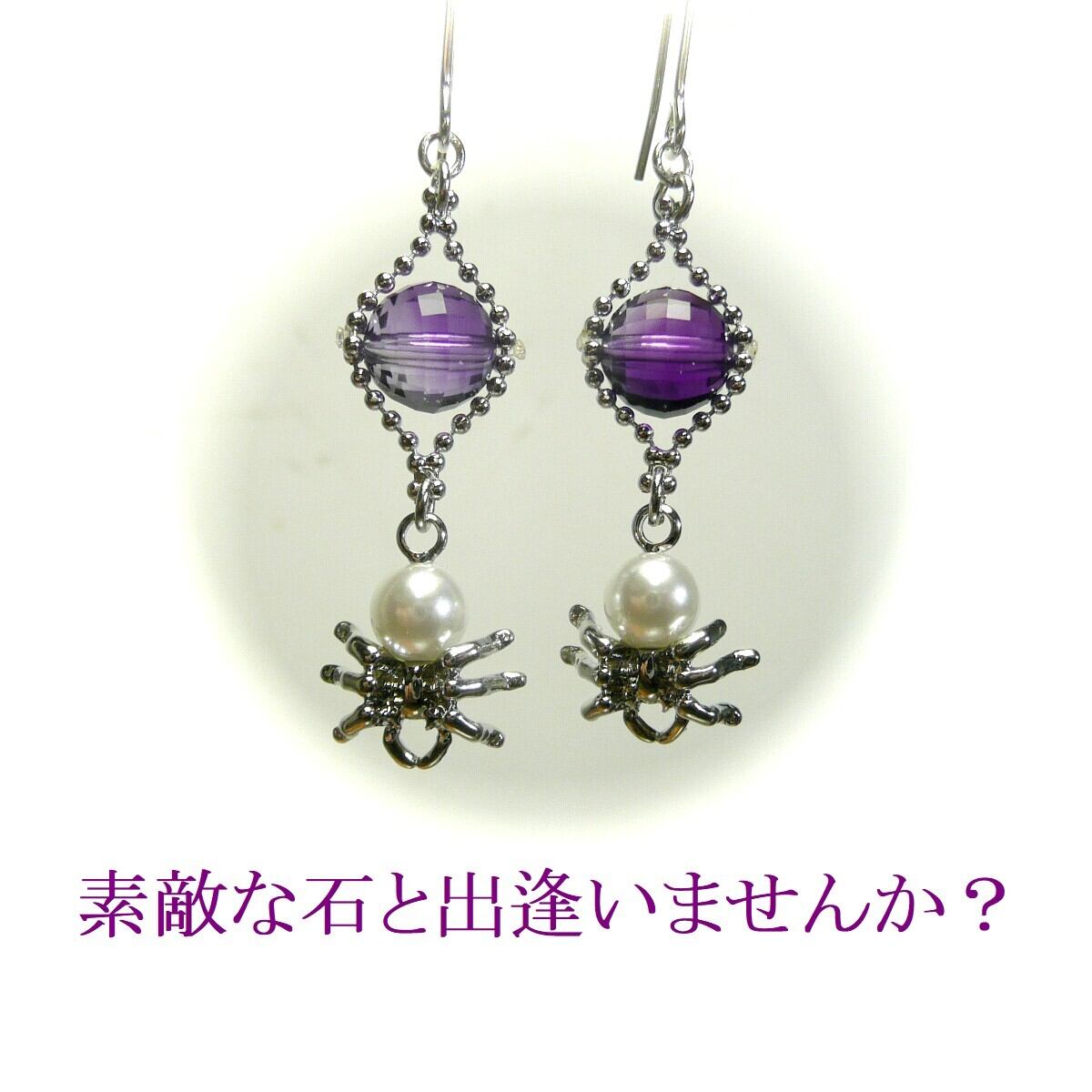 「 アメジスト イヤリング 蜘蛛 」と検索なさりご覧下さい。