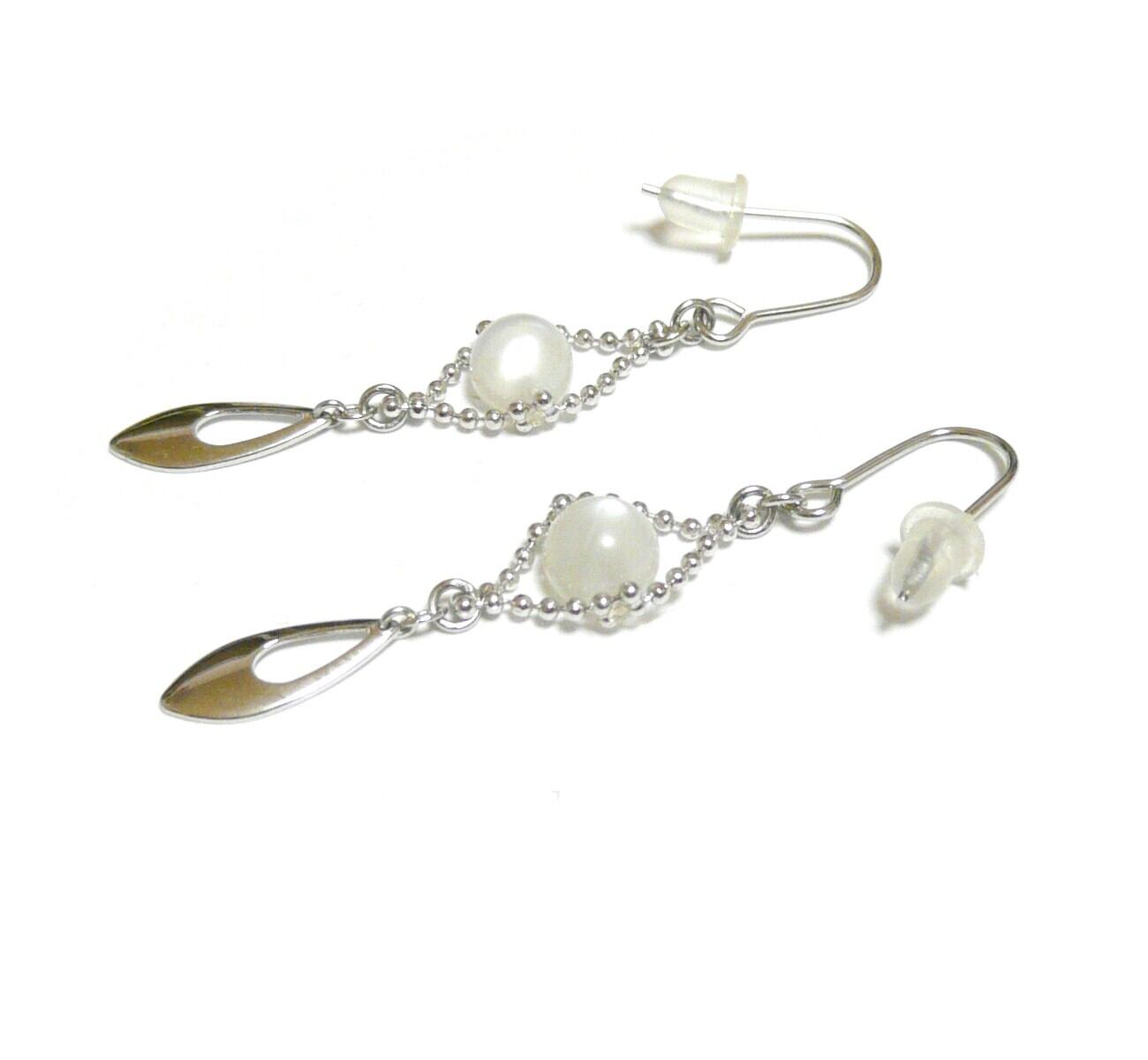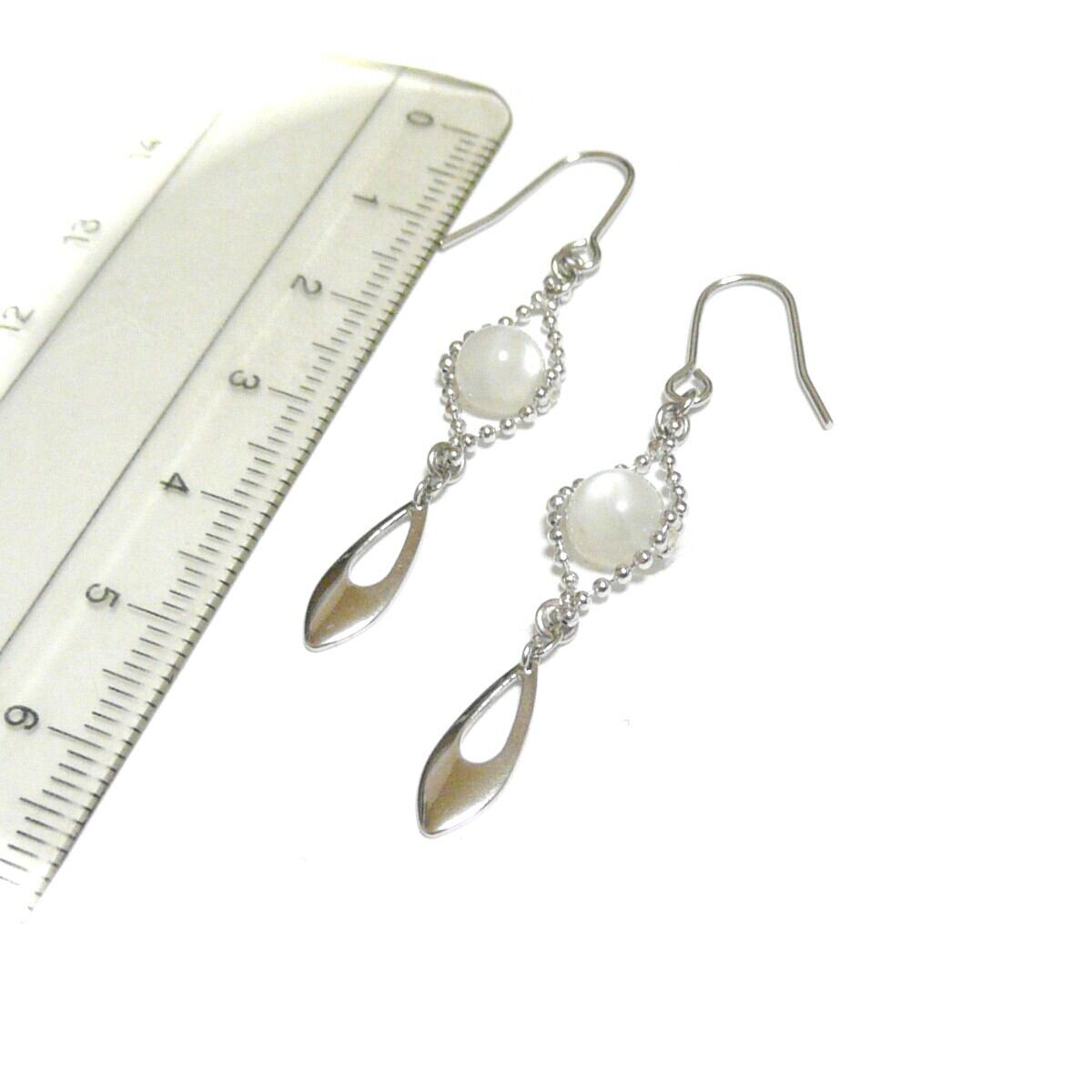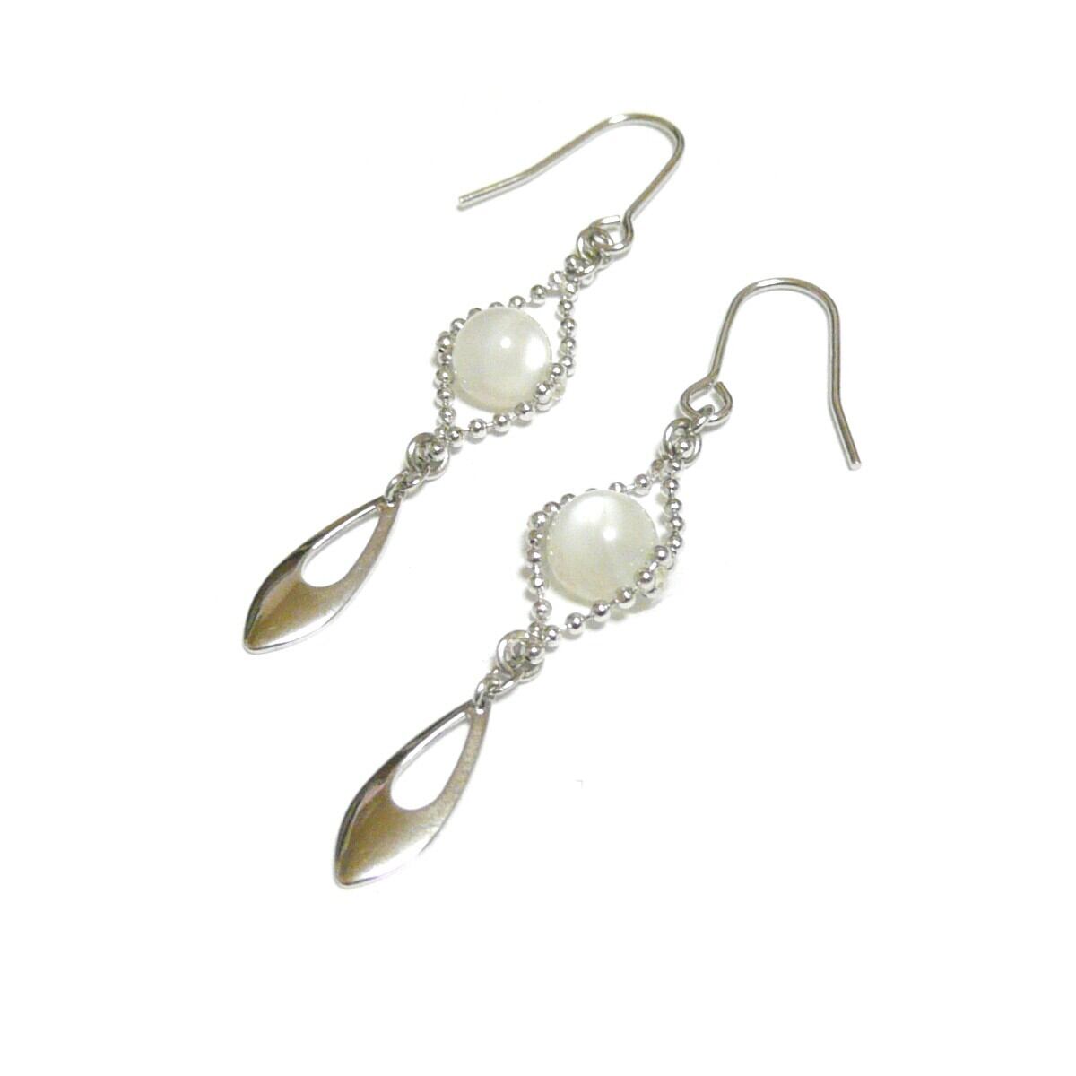 ムーンストーン ピアス 月長石 小粒 ロング 銀色 シルバーカラー 6mm 丸珠 【 女王 アヴァンテ 】