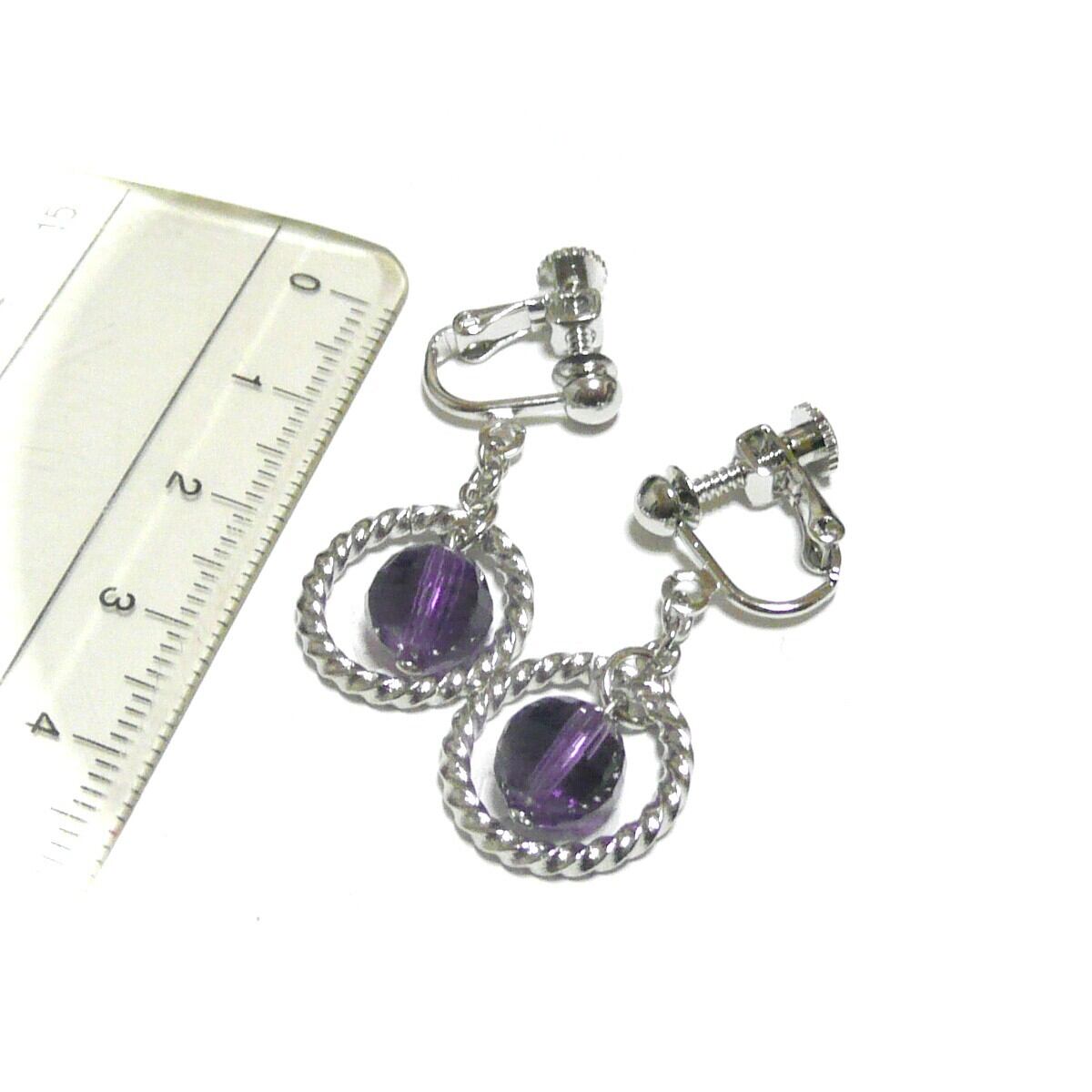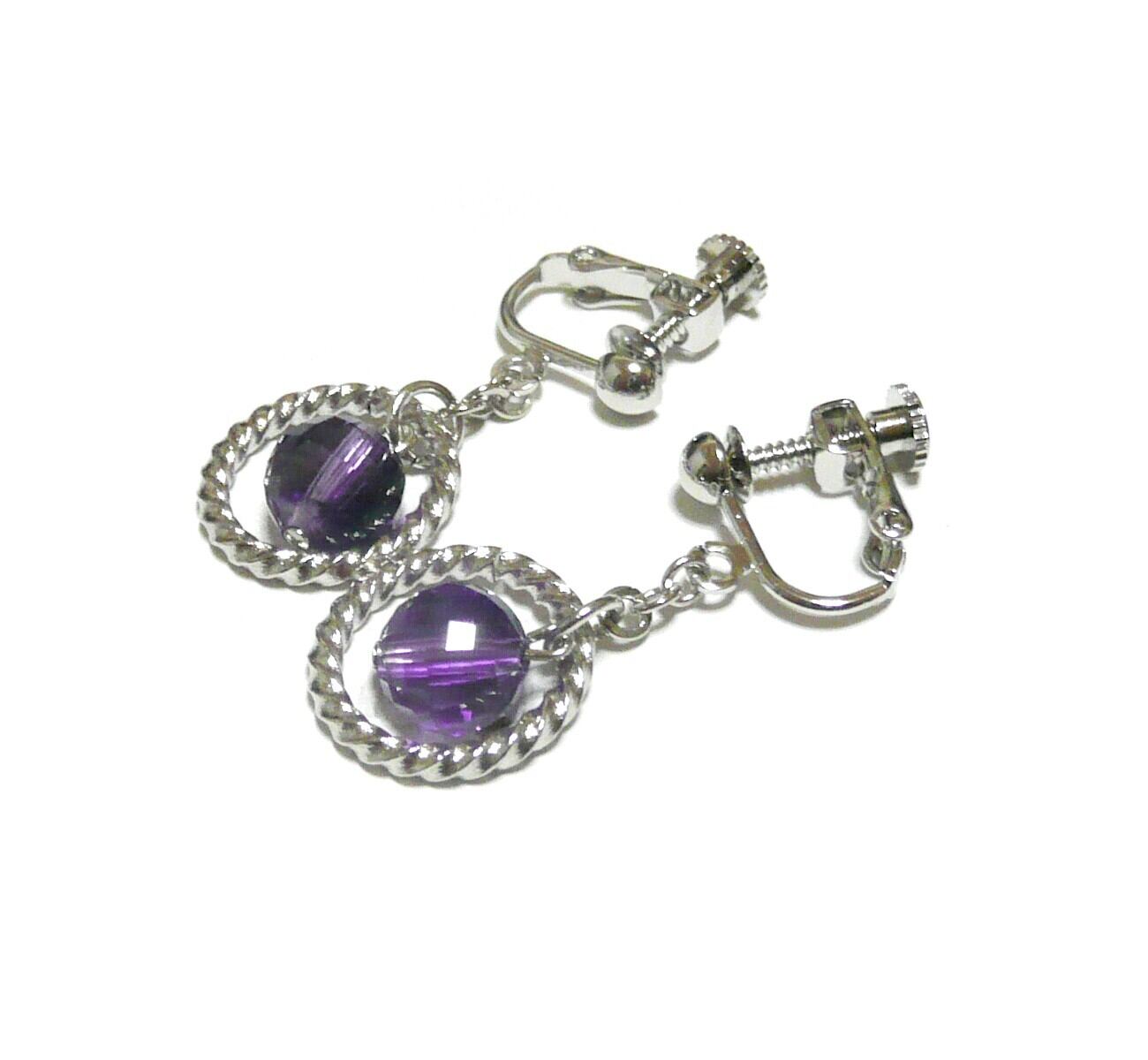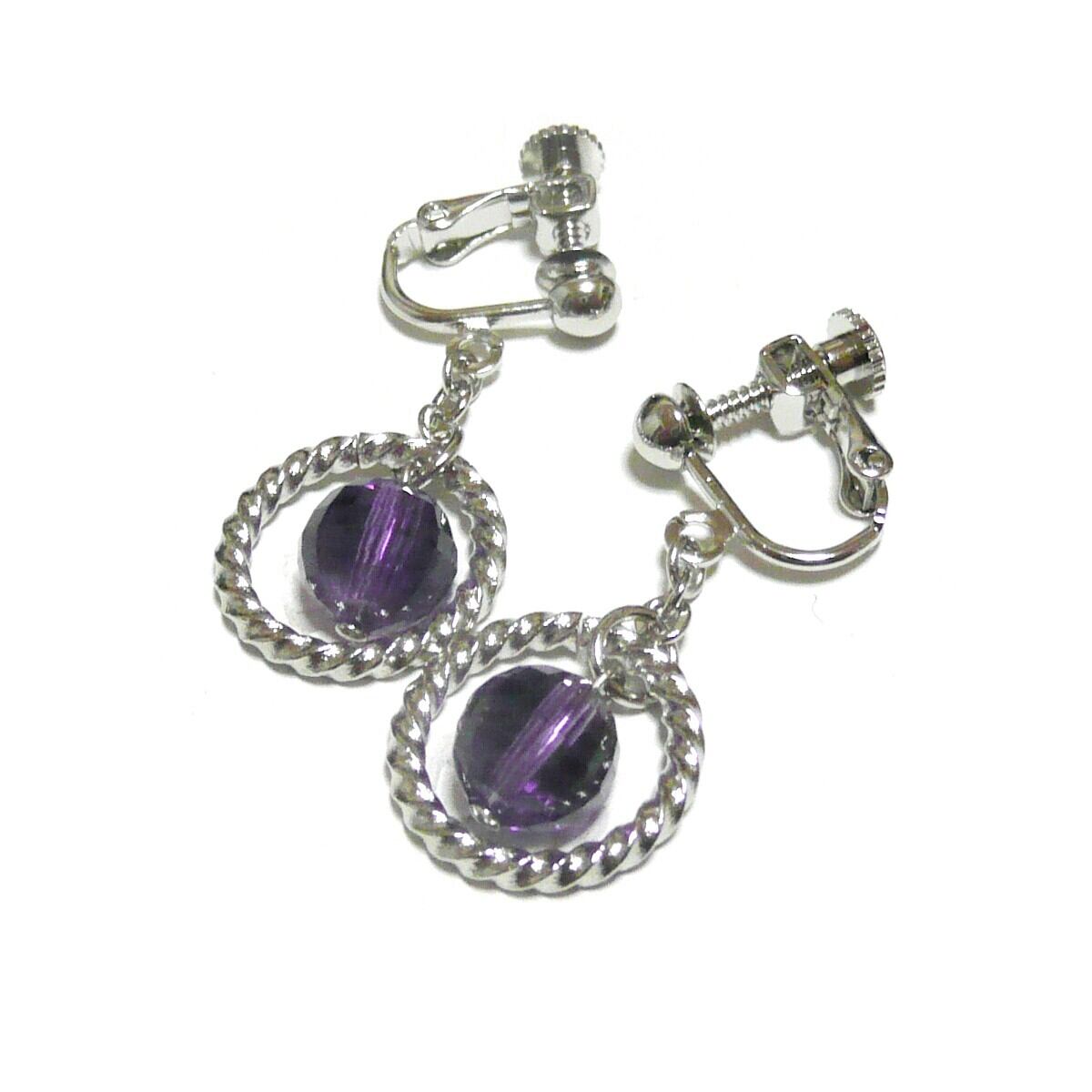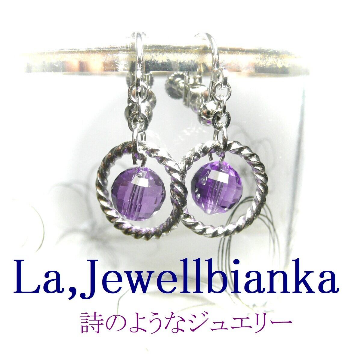 アメジスト イヤリング ツイスト フープ 紫水晶 まどか 銀色 シルバーカラー 【 MADOKA 】