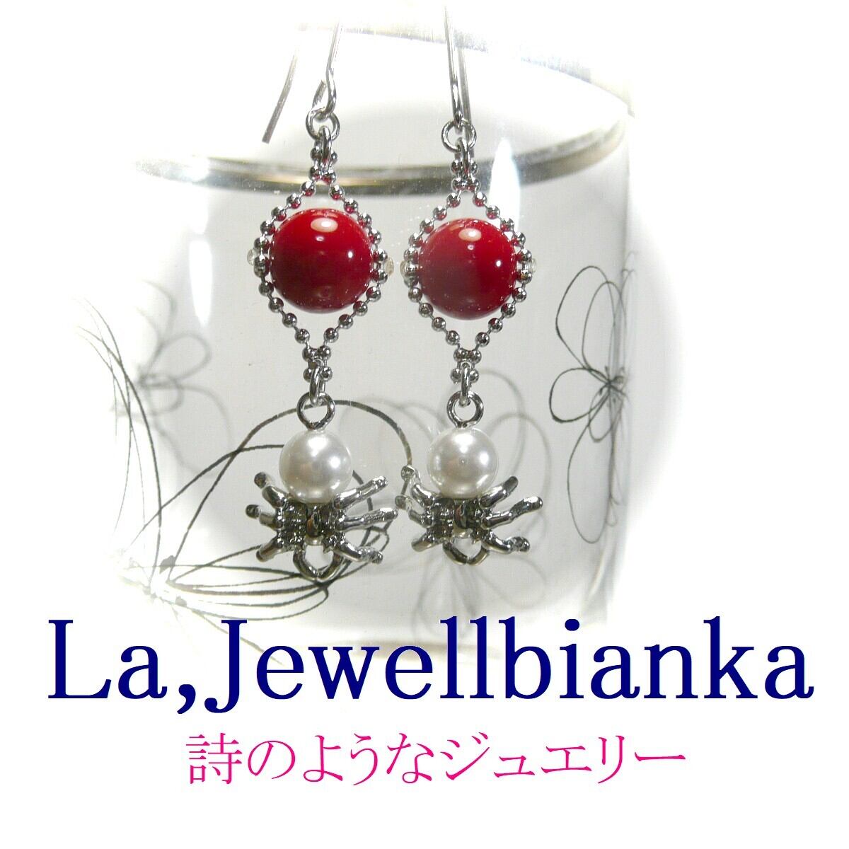 「 赤珊瑚 イヤリング 蜘蛛 」と検索なさりご覧下さい。