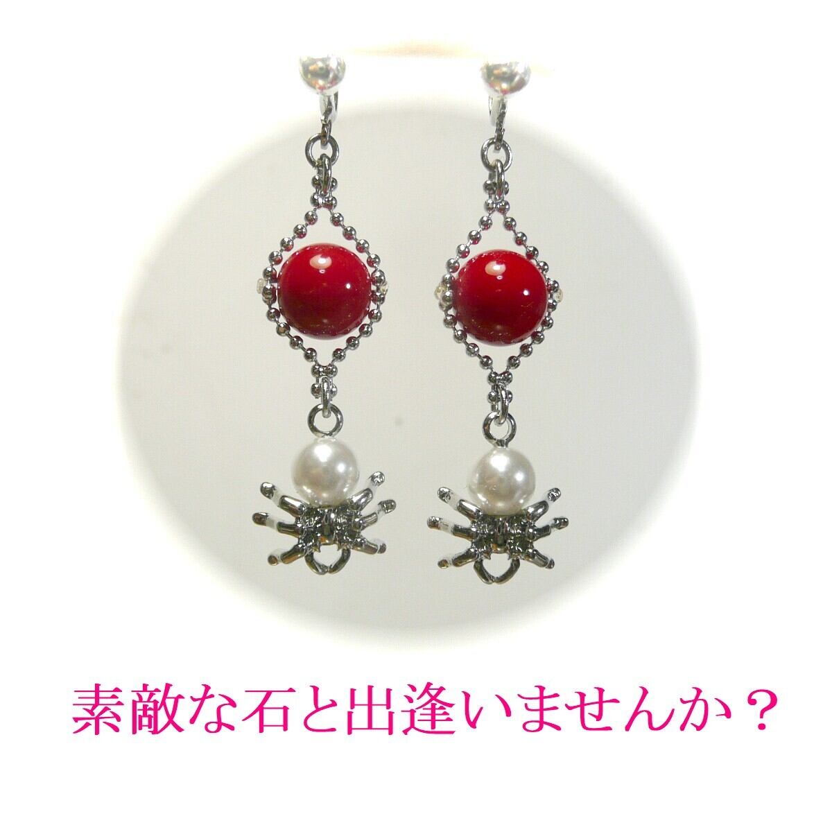 「 赤珊瑚 ピアス 蜘蛛 」と検索なさりご覧下さい。