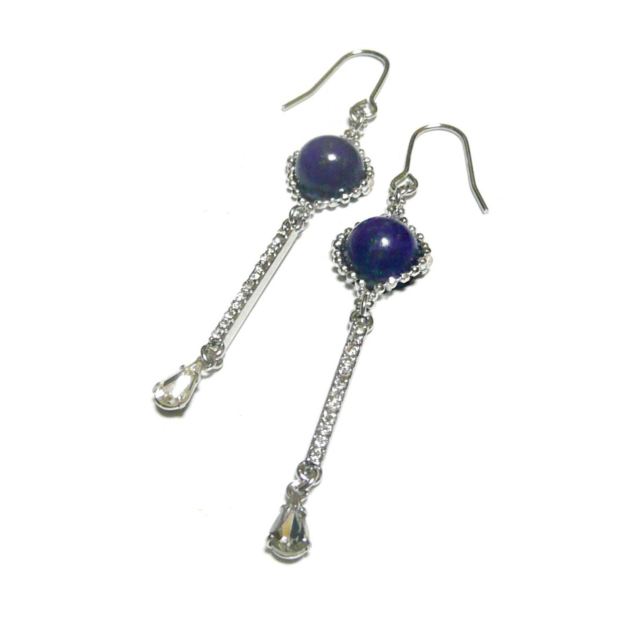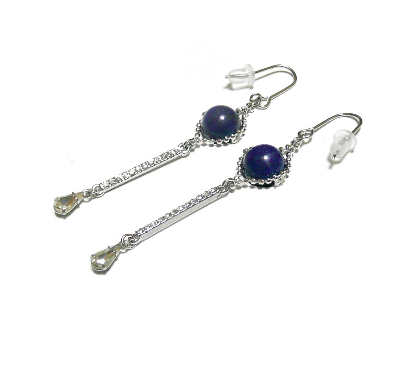 ラピスラズリ パヴェ ピアス クリスタル キュービックジルコニア 銀色 シルバーカラー 瑠璃 8mm丸珠