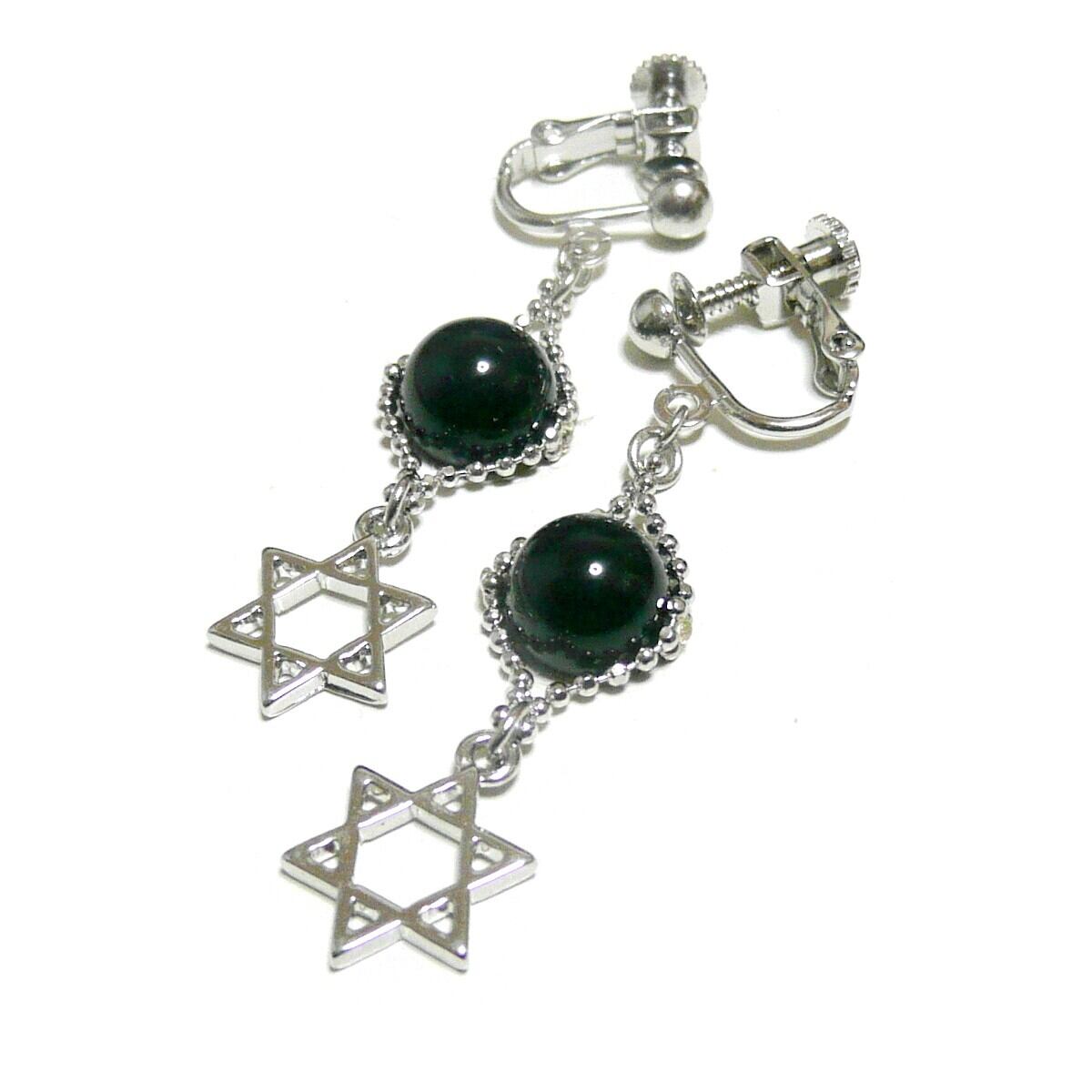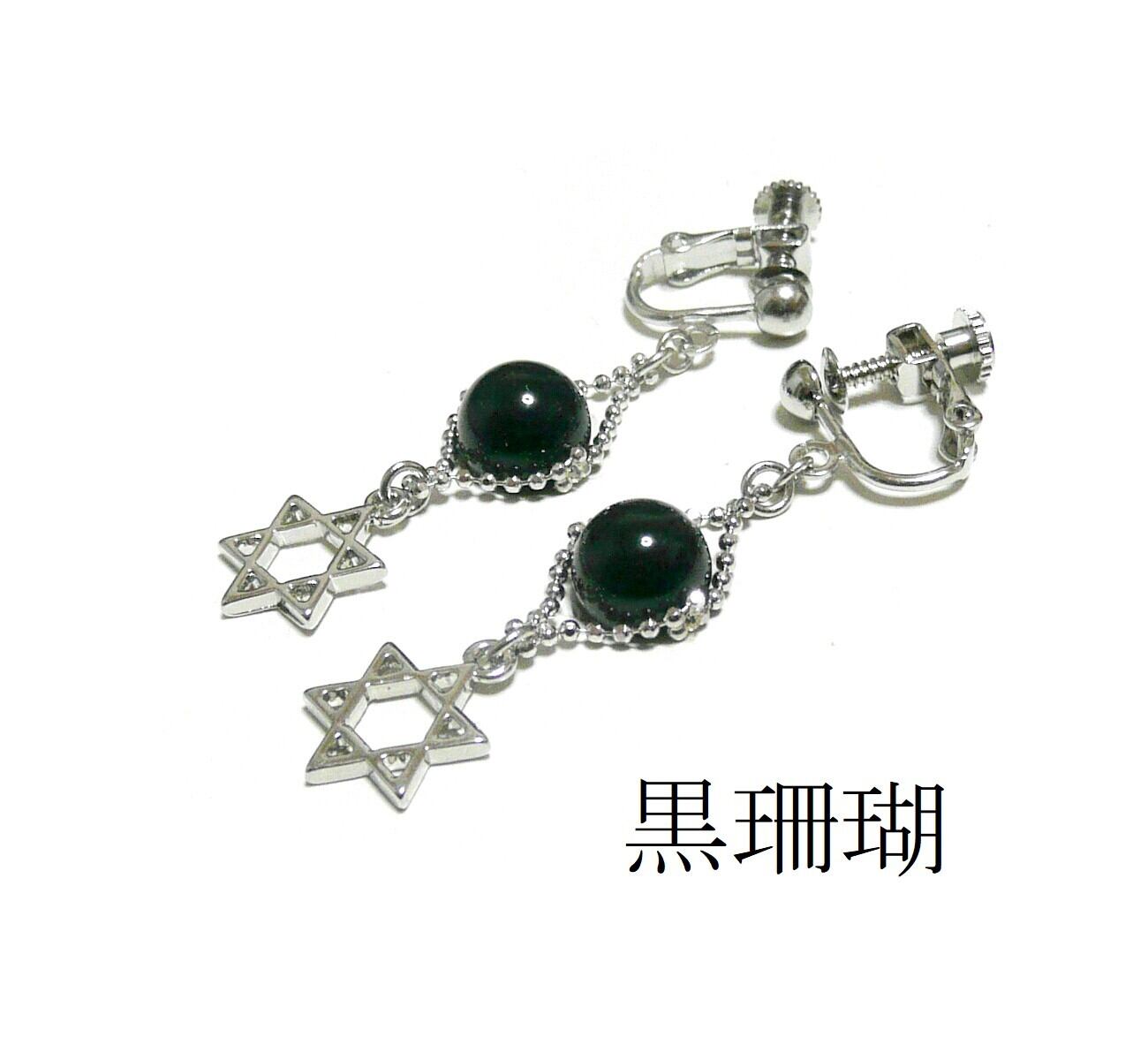 黒珊瑚 イヤリング 六芒星 サンゴ さんご コーラル 銀色 シルバーカラー 【 聖母の星 】