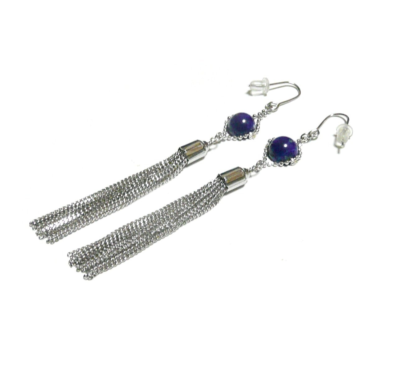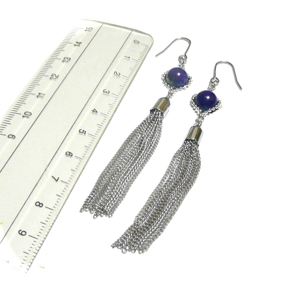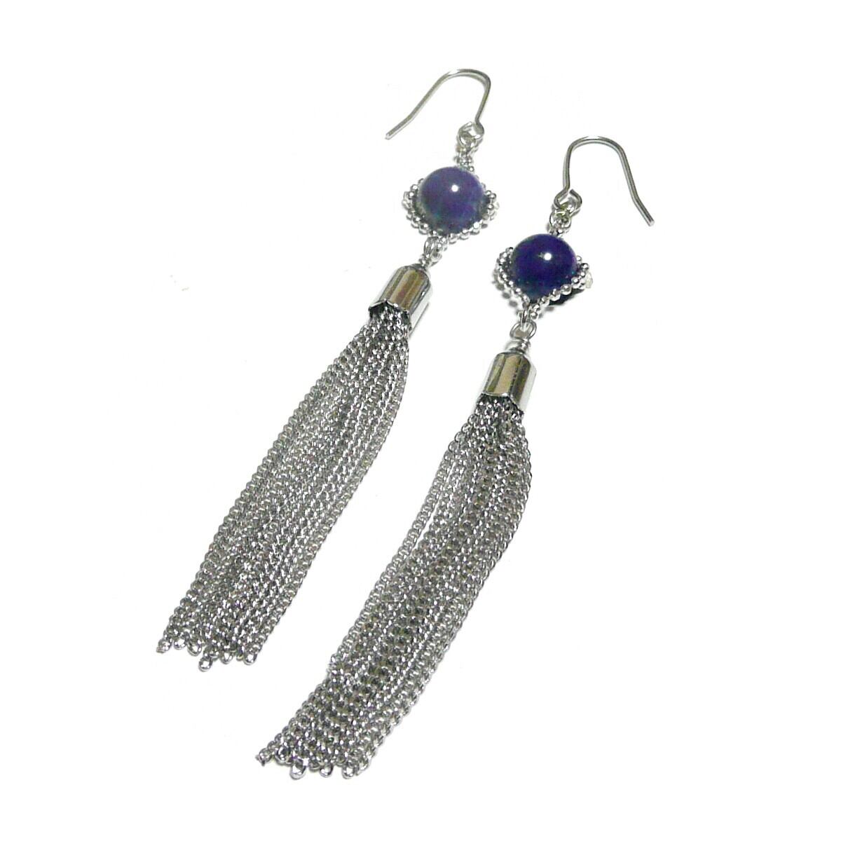 ラピスラズリ タッセル ピアス 房 ロングフリル 瑠璃 8mm 丸珠 銀色 シルバーカラー