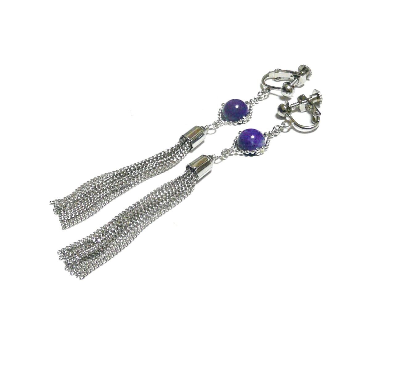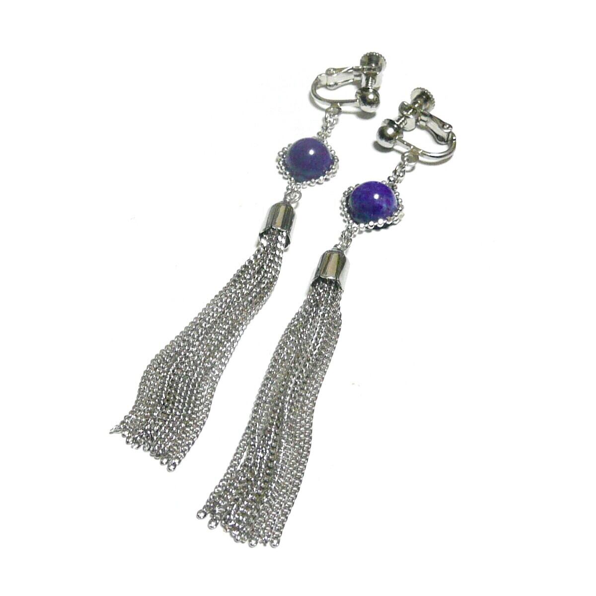 ラピスラズリ タッセル イヤリング 房 ロングフリル 瑠璃 8mm 丸珠 銀色 シルバーカラー