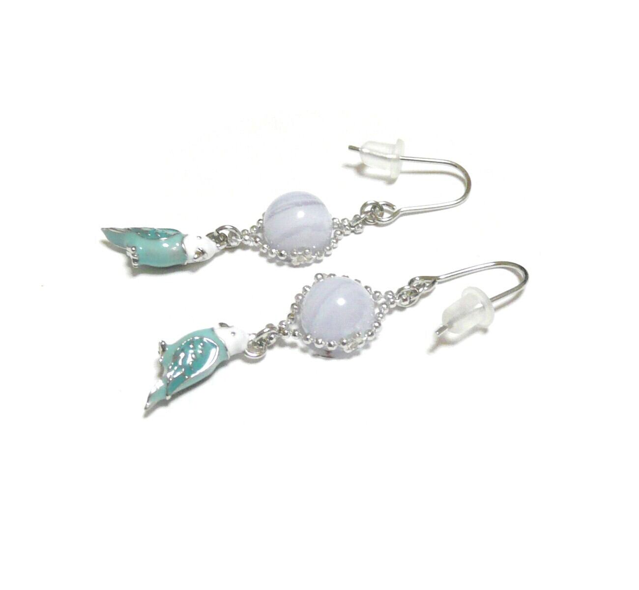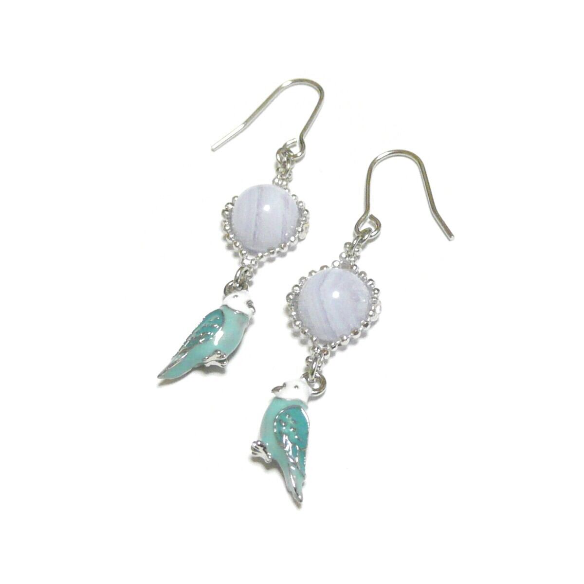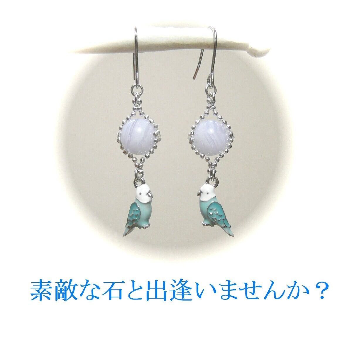 「 ブルーレースアゲート セキセイインコ イヤリング 」と検索なさりご覧下さい。