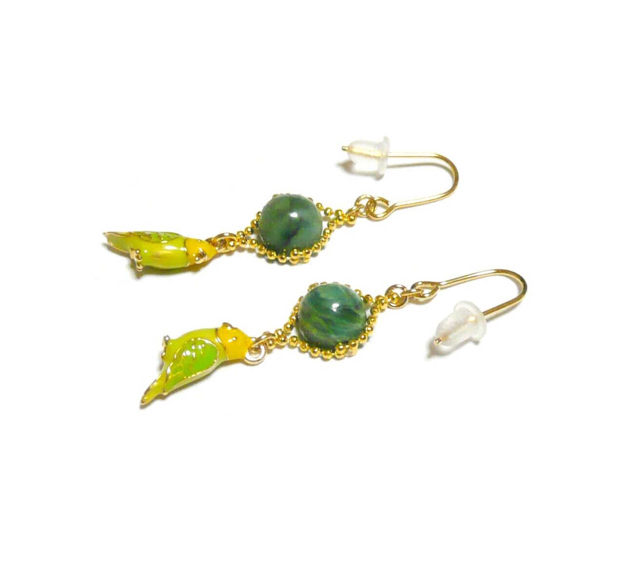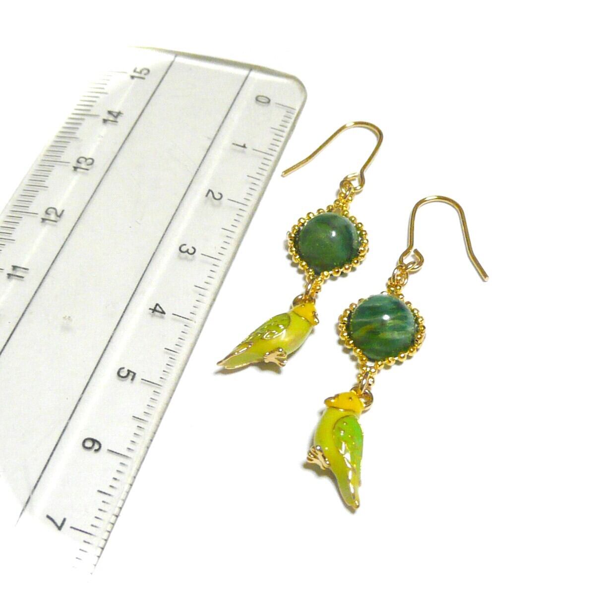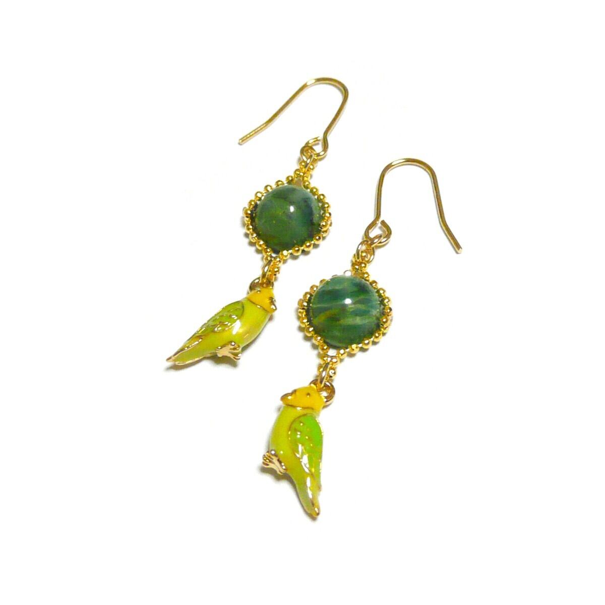 キュートなセキセイインコのチャームと共に揺れるピアスです。