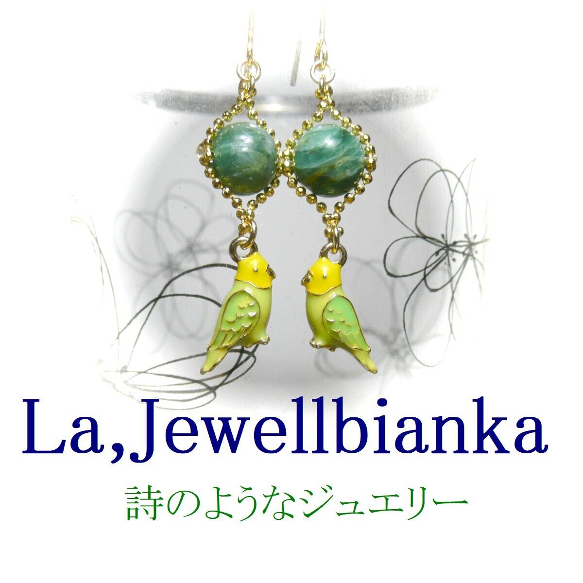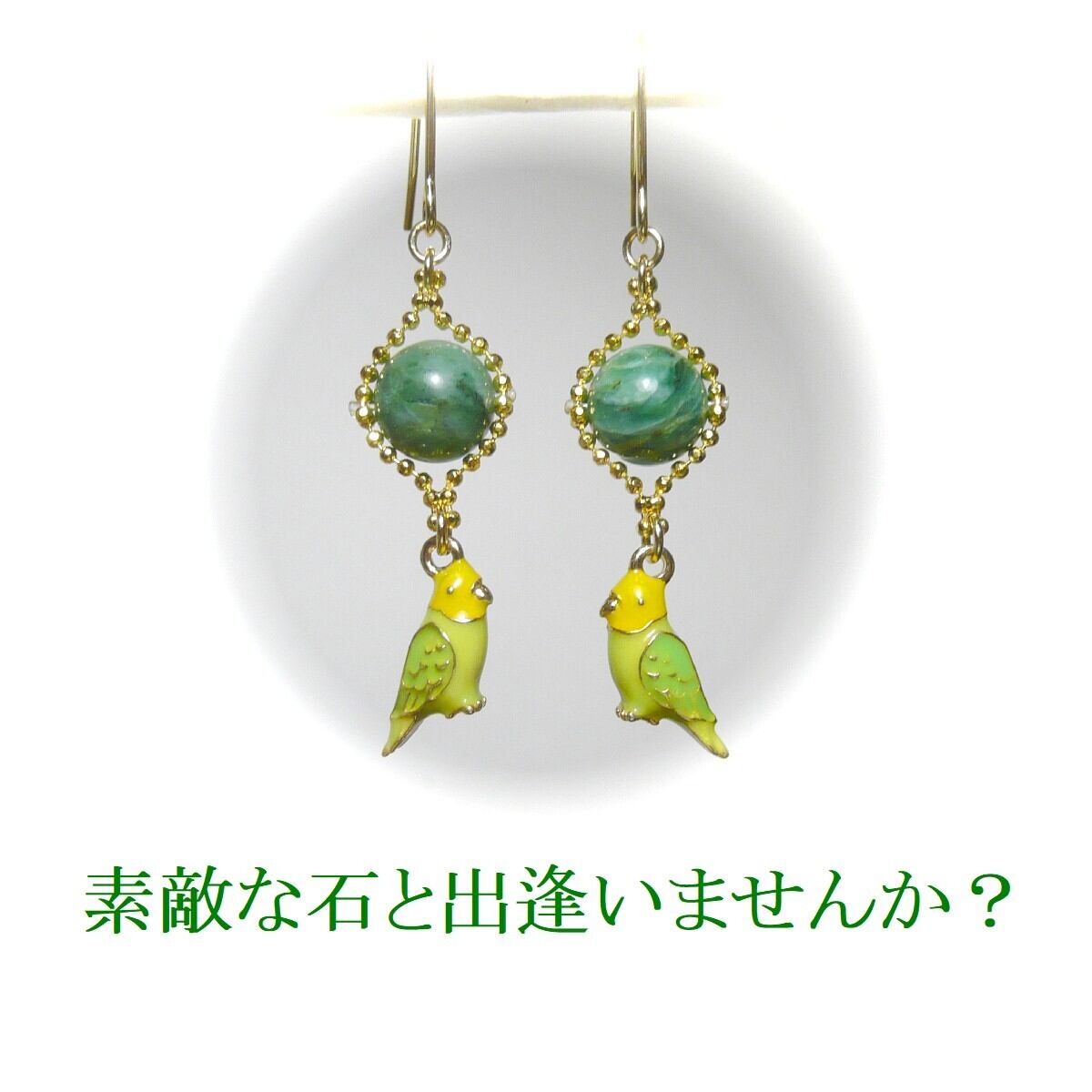 「 エメラルド セキセイインコ イヤリング 」と検索なさりご覧下さい。