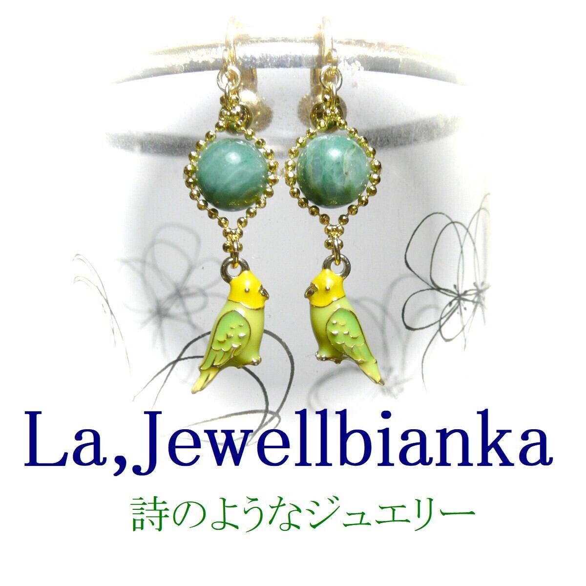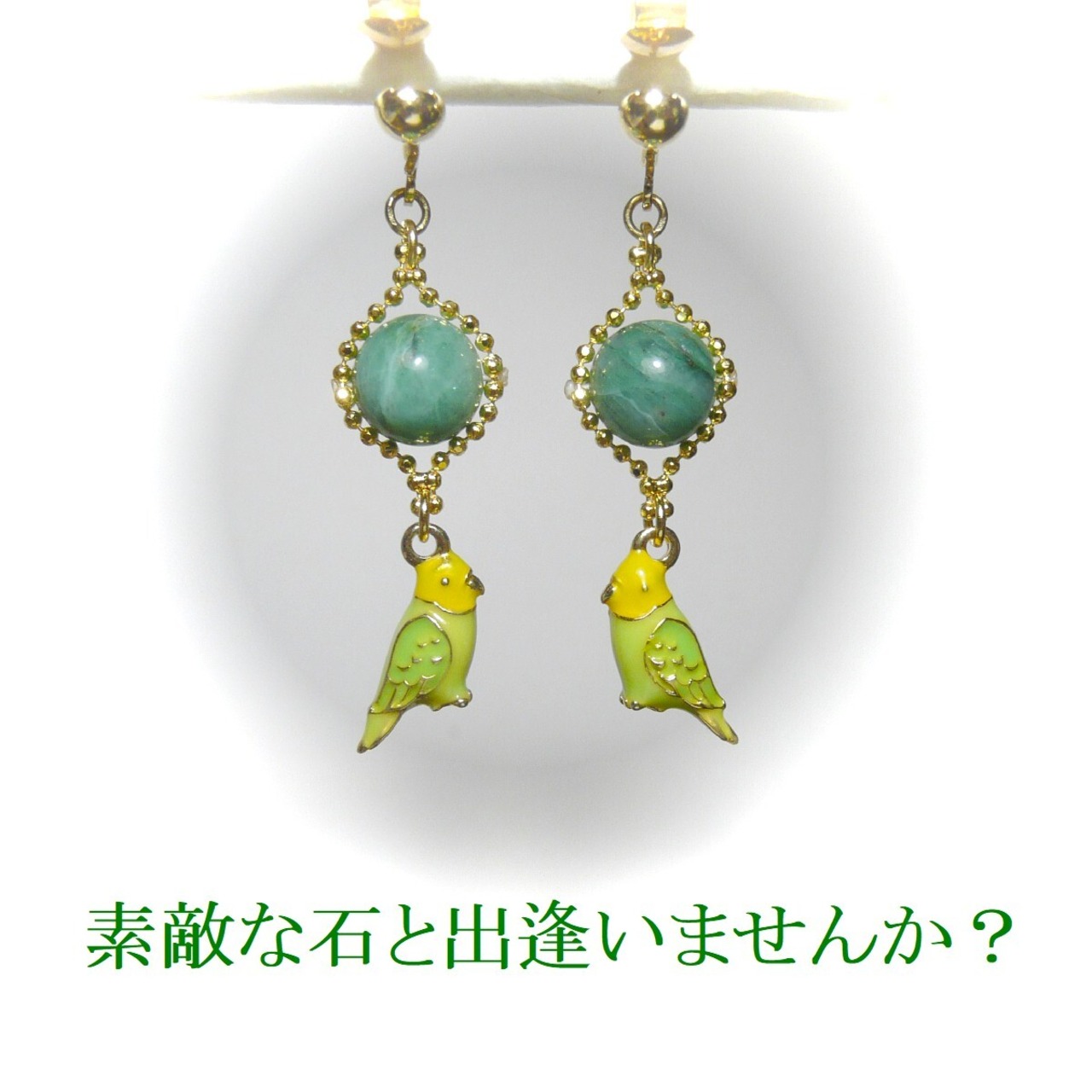 「 エメラルド セキセイインコ ピアス 」と検索なさりご覧下さい。