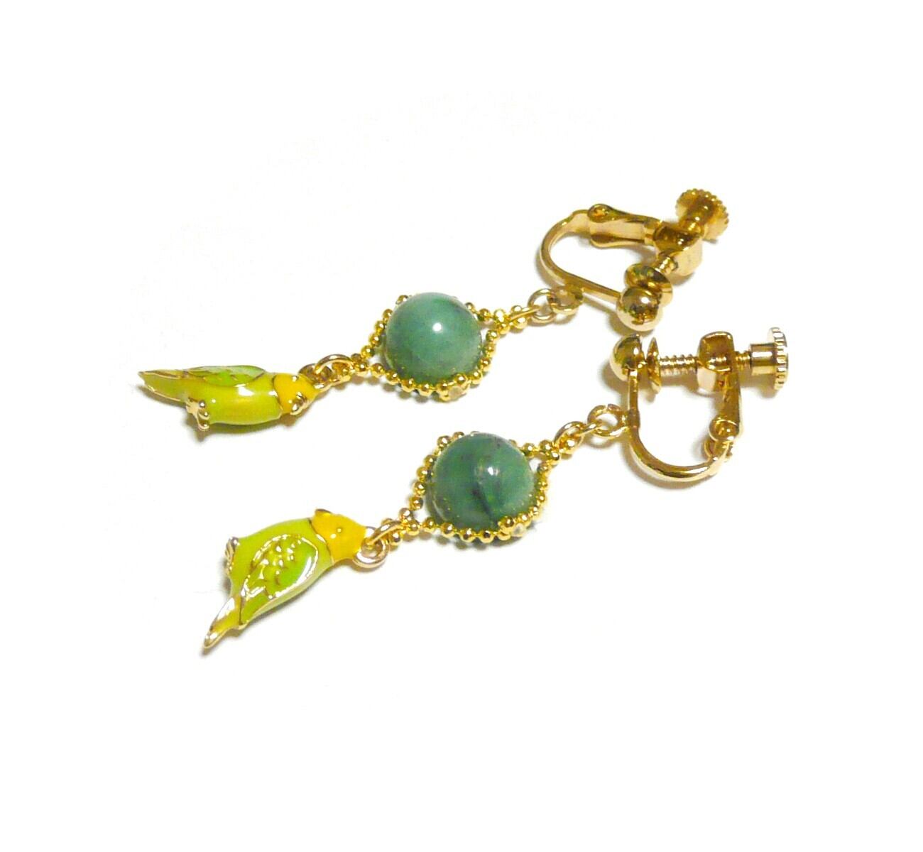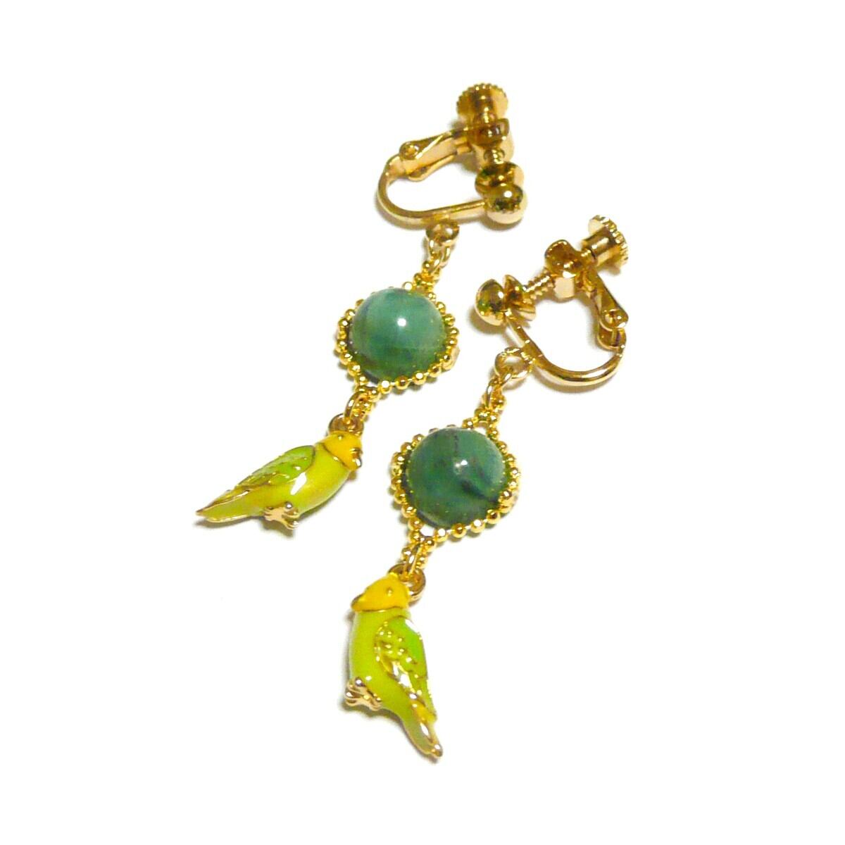 キュートなセキセイインコのチャームと共に揺れるイヤリングです。