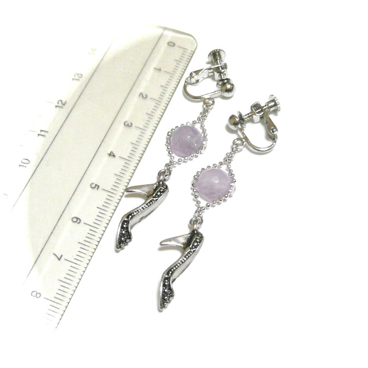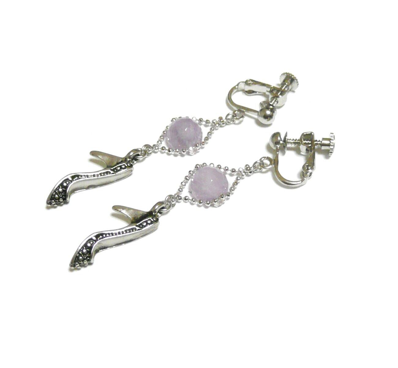 ラベンダーアメジスト イヤリング ハイヒール ミュール チャーム 紫水晶 8mm 銀色 シルバーカラー 【 シンデレラ 】