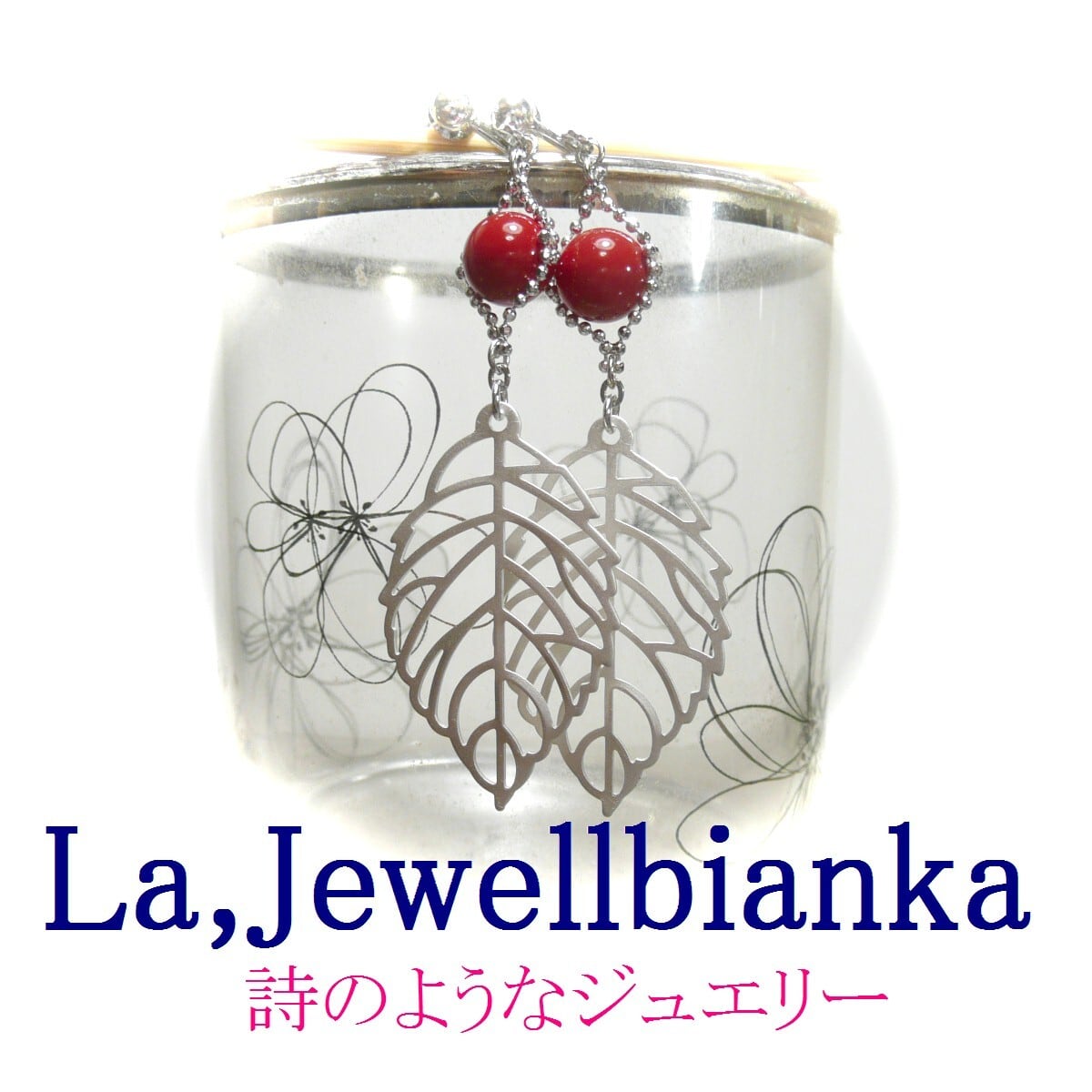 「 赤珊瑚 ピアス 大きな葉っぱ 」と検索なさりご覧下さい。