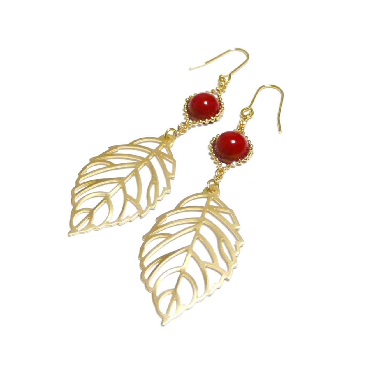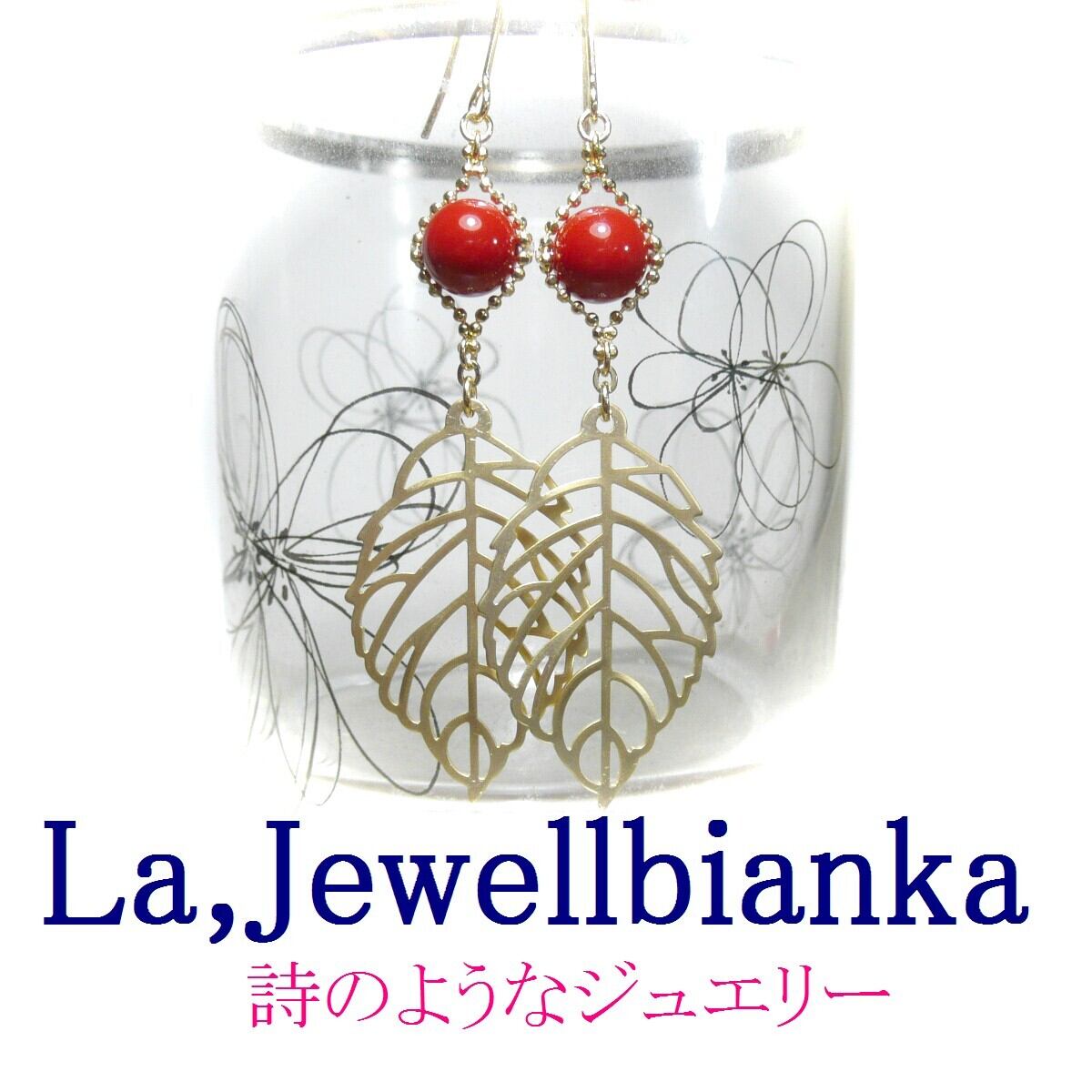 「 赤珊瑚 イヤリング 大きな葉っぱ 」と検索なさりご覧下さい。