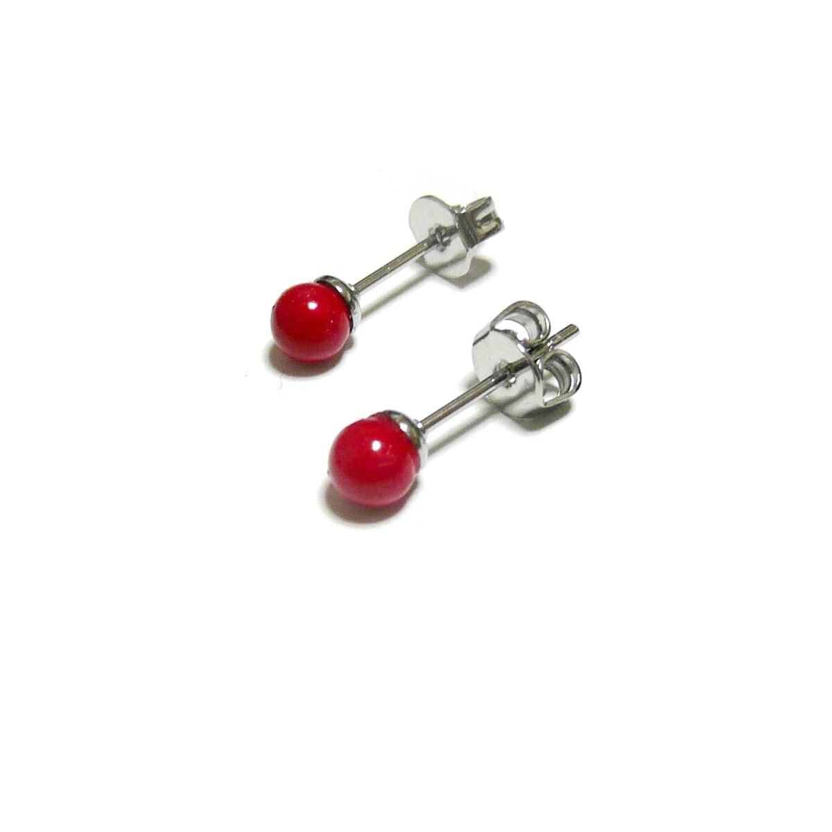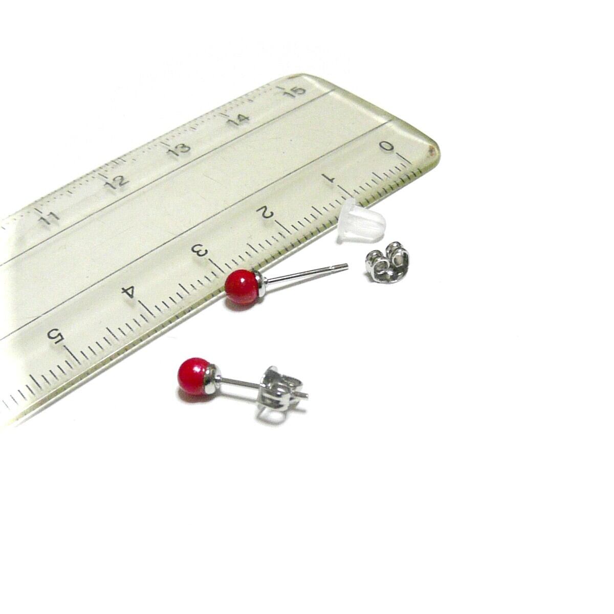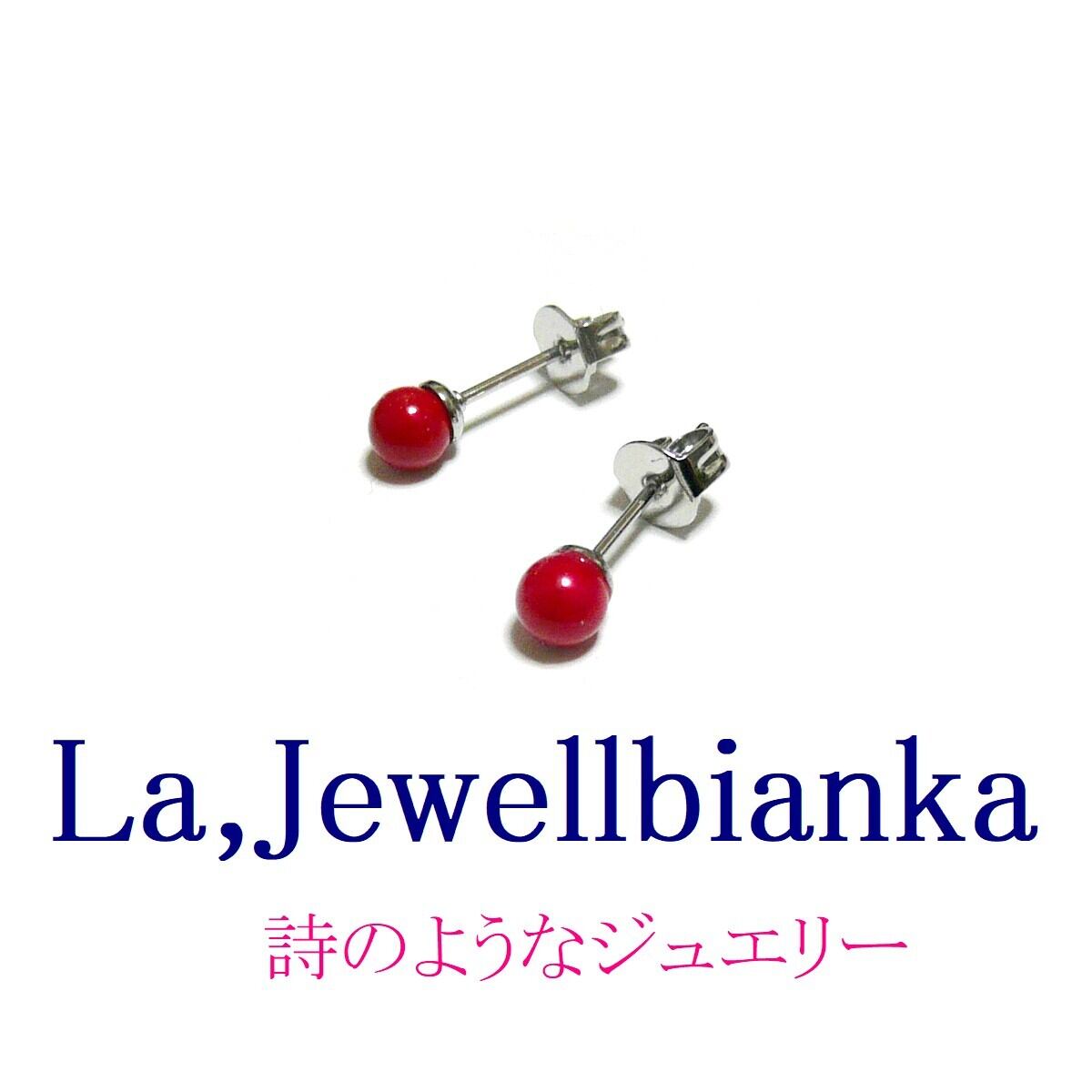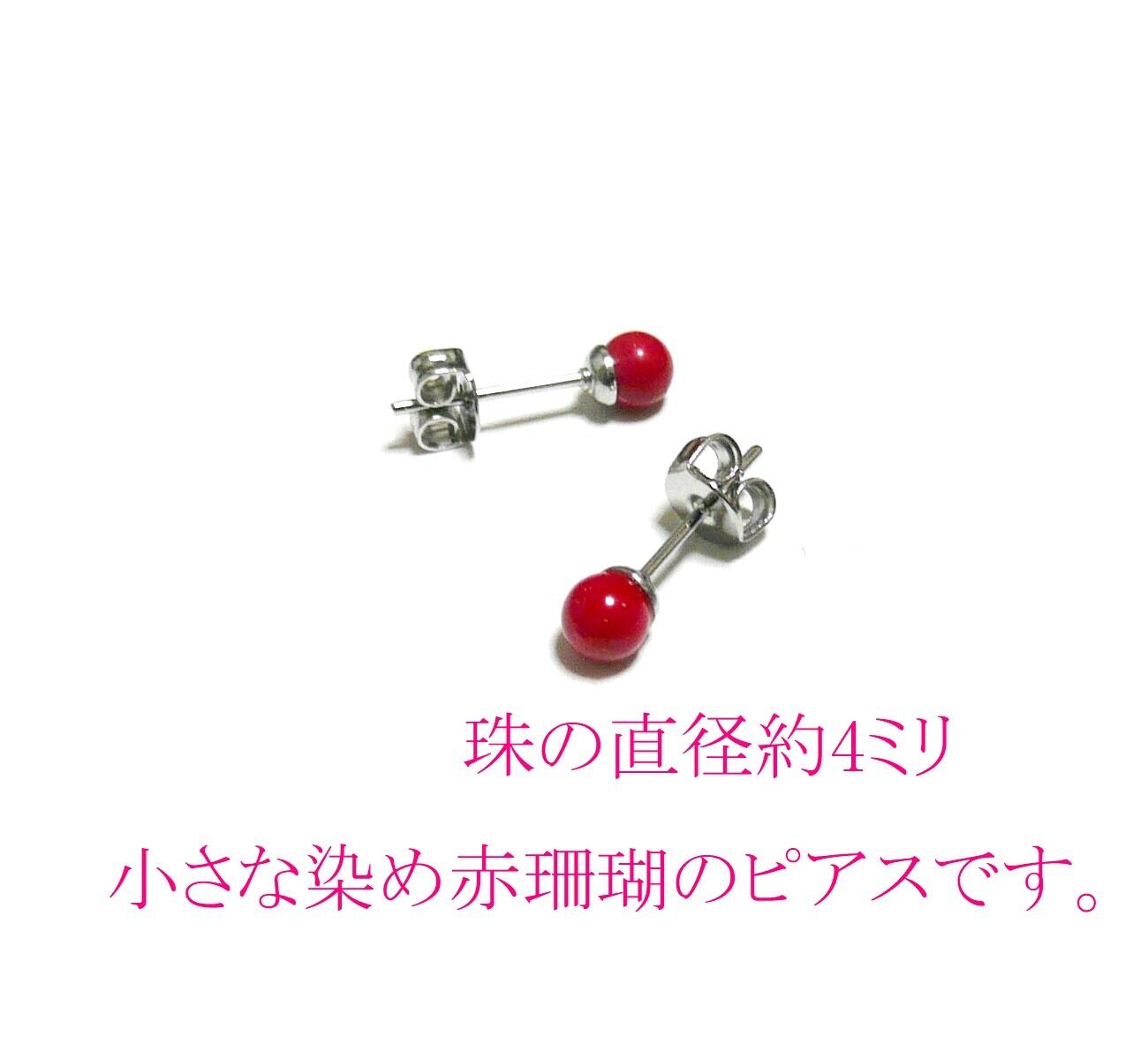 赤珊瑚 4mm スタッド ピアス さんご コーラル 銀色 シルバーカラー 【 スタンダード 】