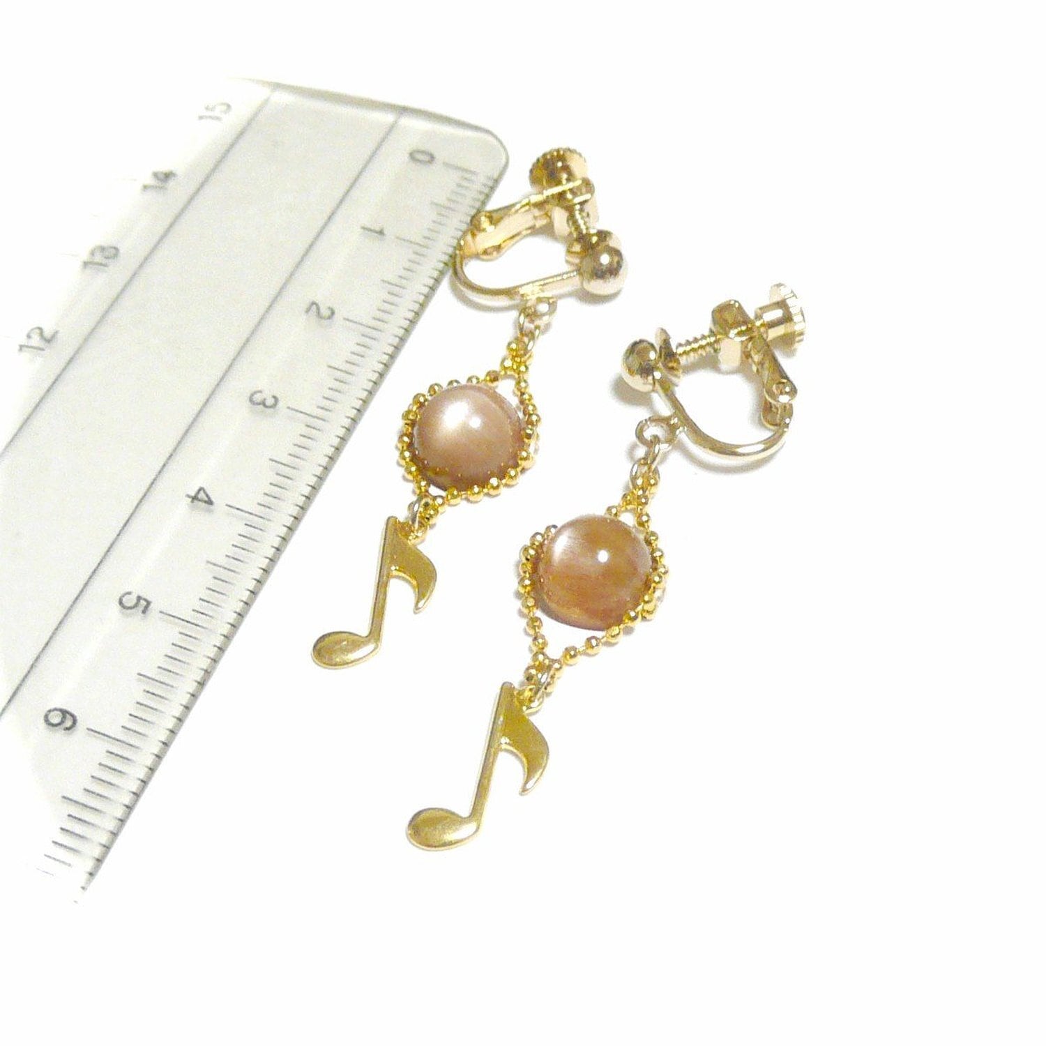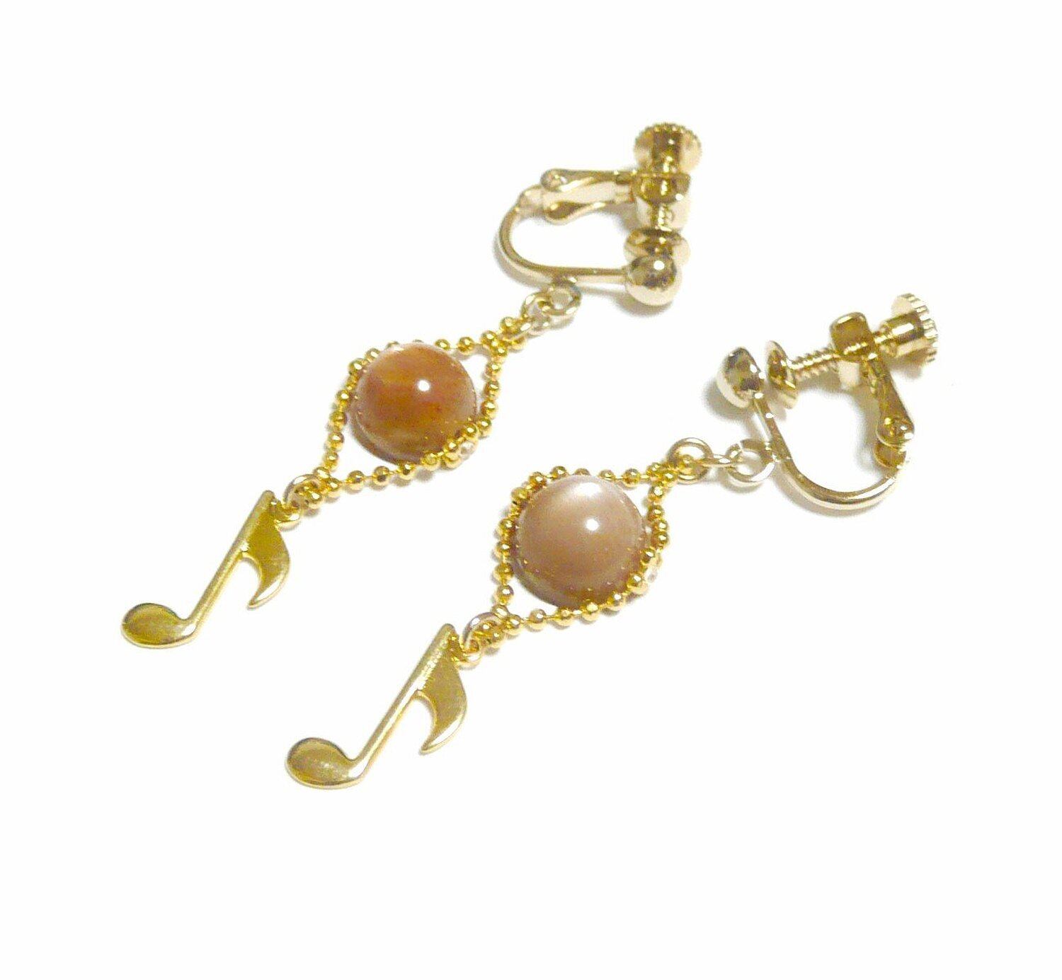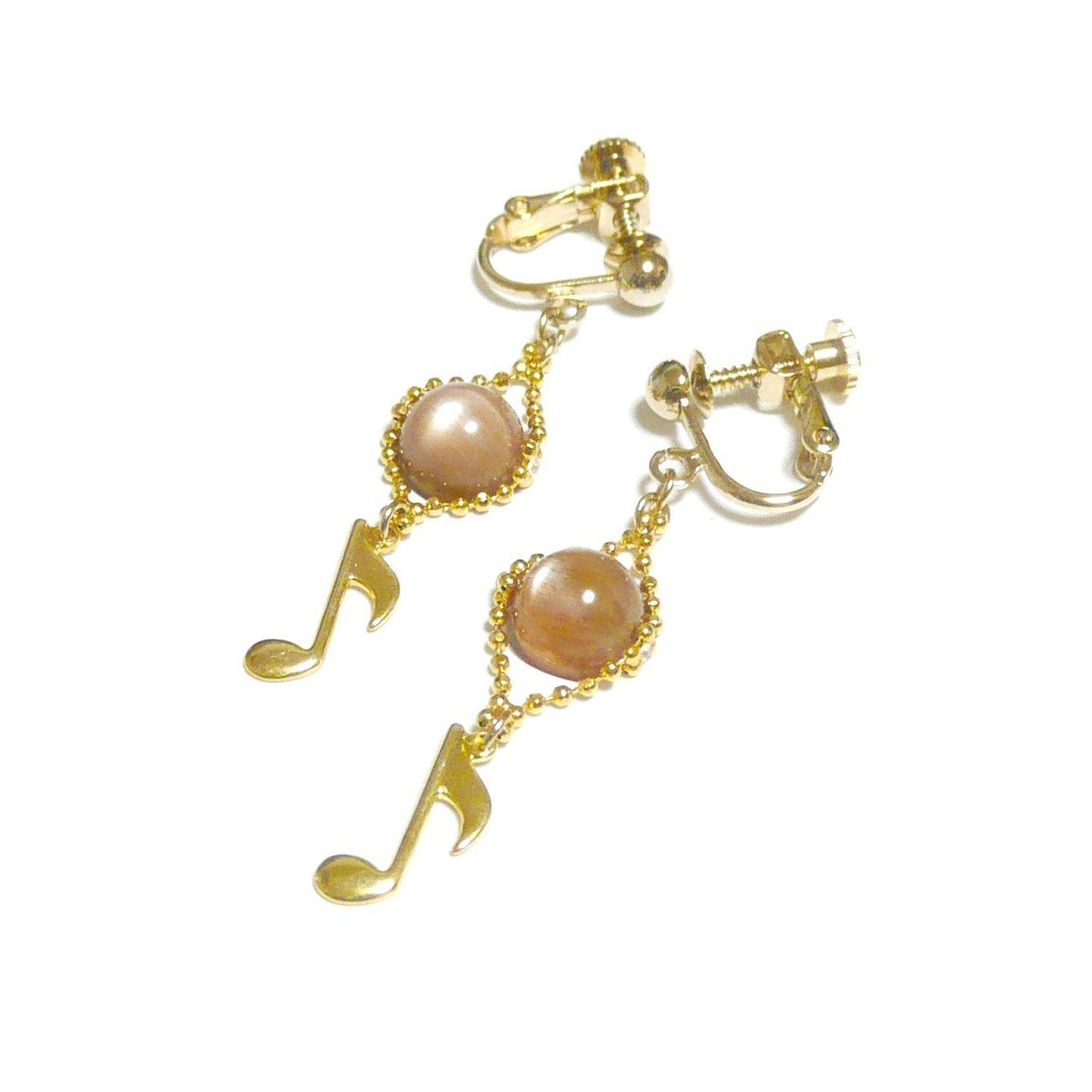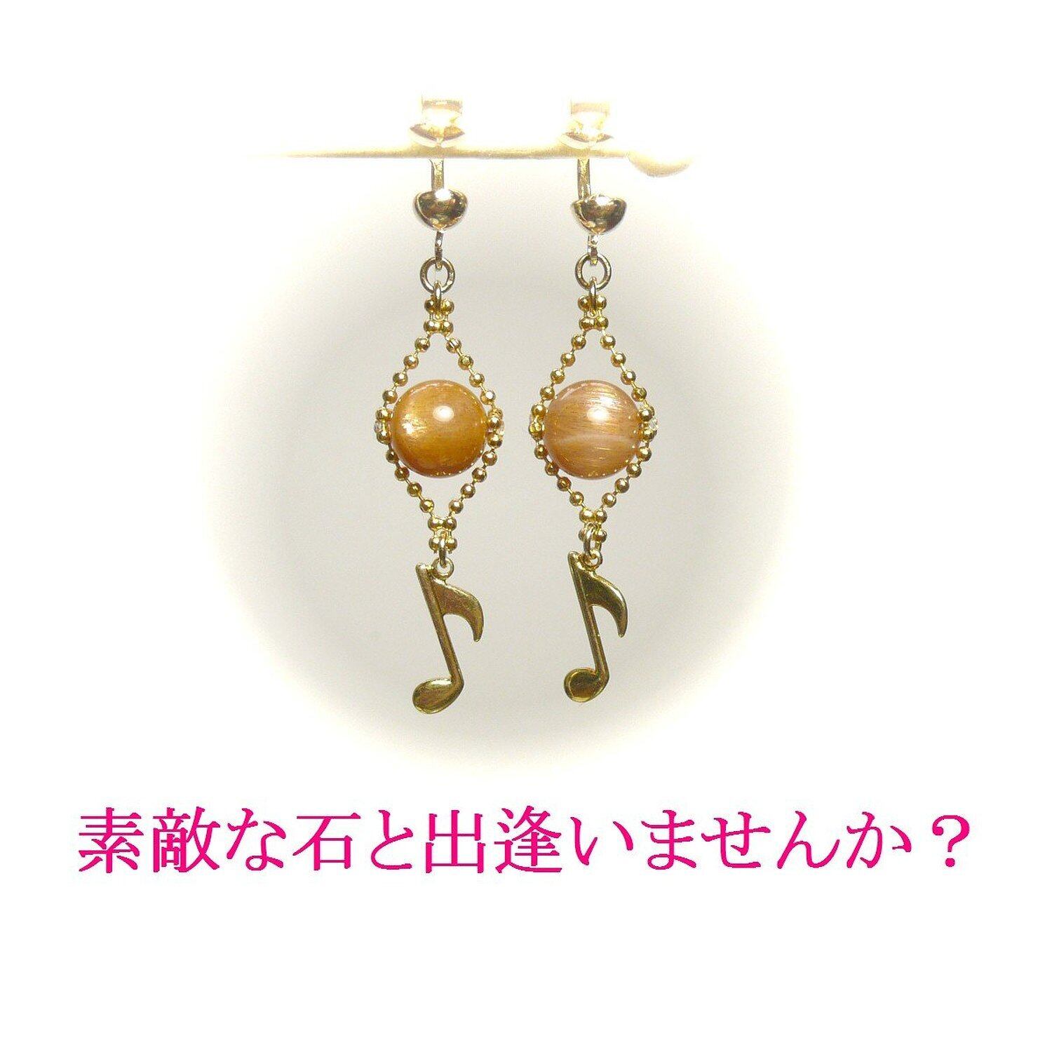サンストーン イヤリング 音符 オンプ チャーム 日長石 金色 ゴールドカラー 【 唄わずにいられない 】