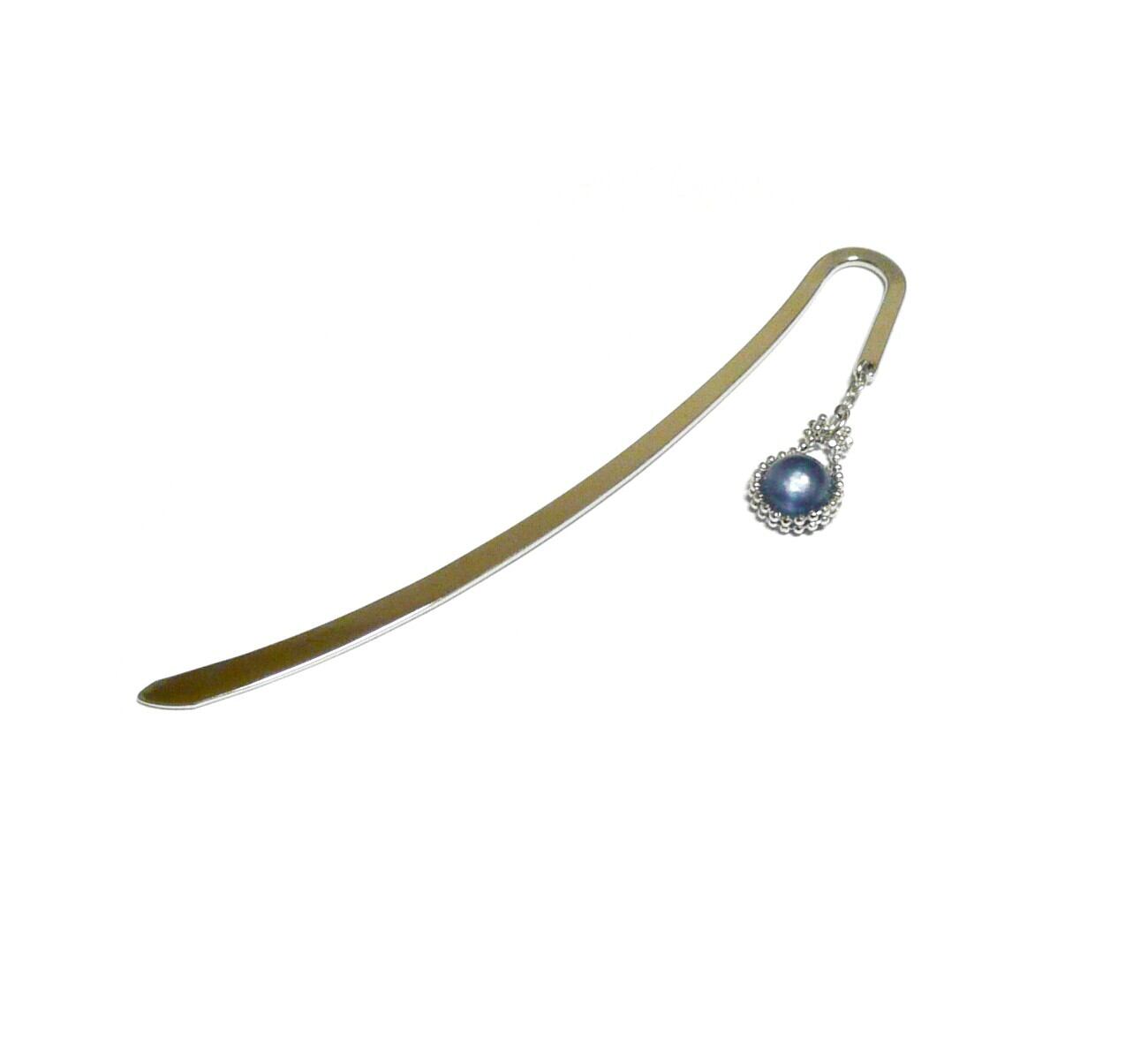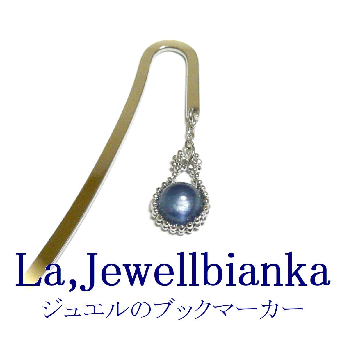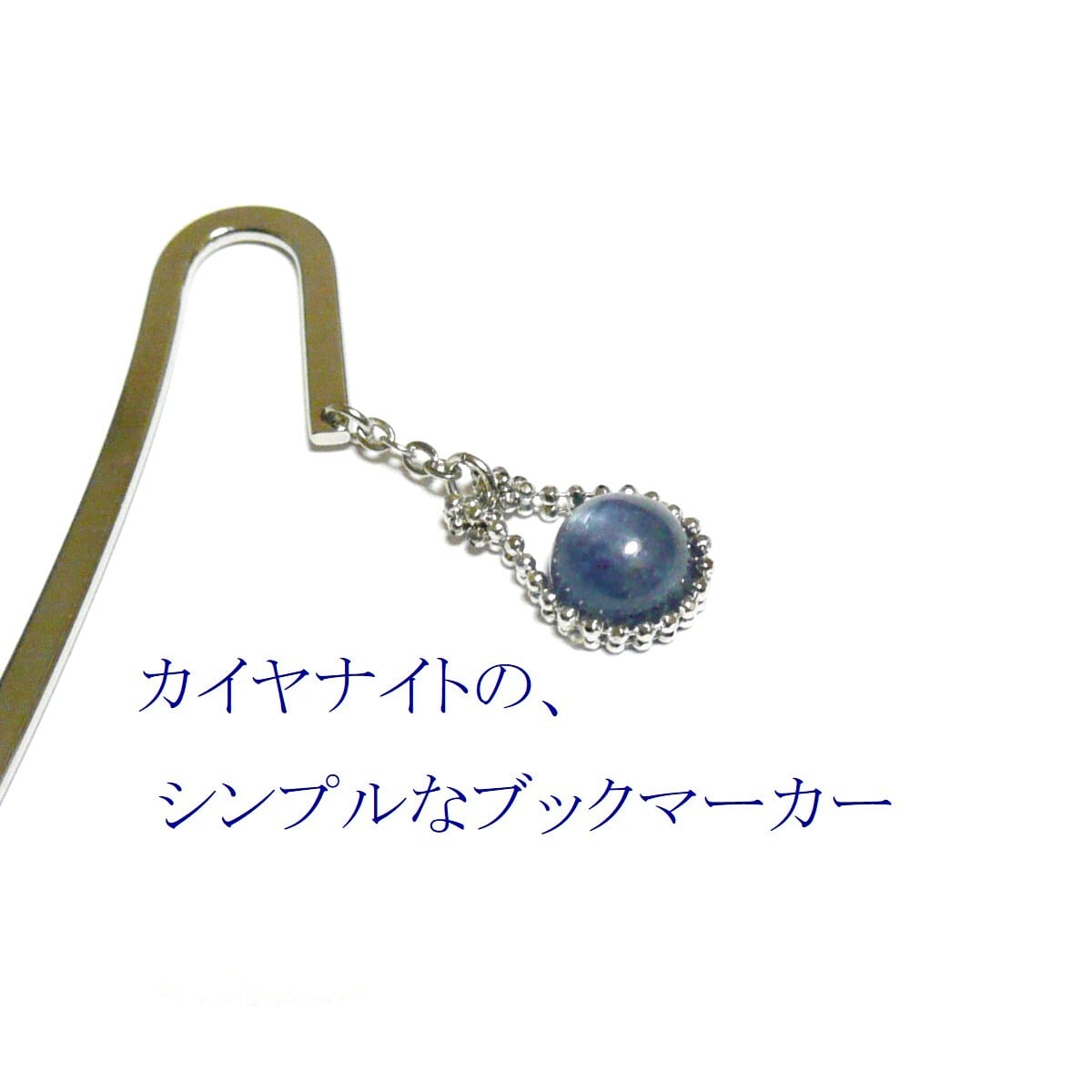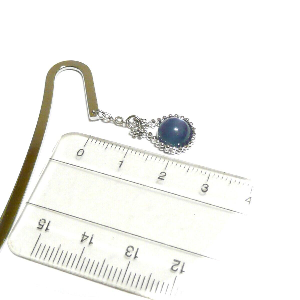 カイヤナイト しおり ブックマーカー 藍晶石 ネイビー 8mm 丸珠 栞 【 馬蹄 】