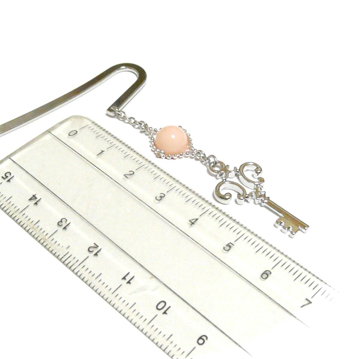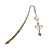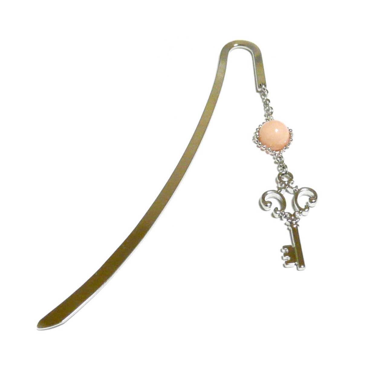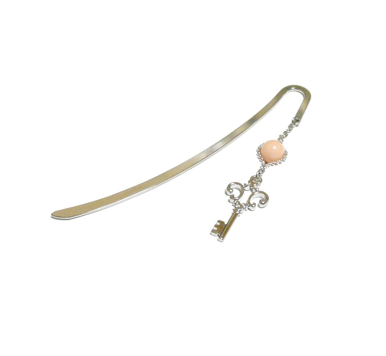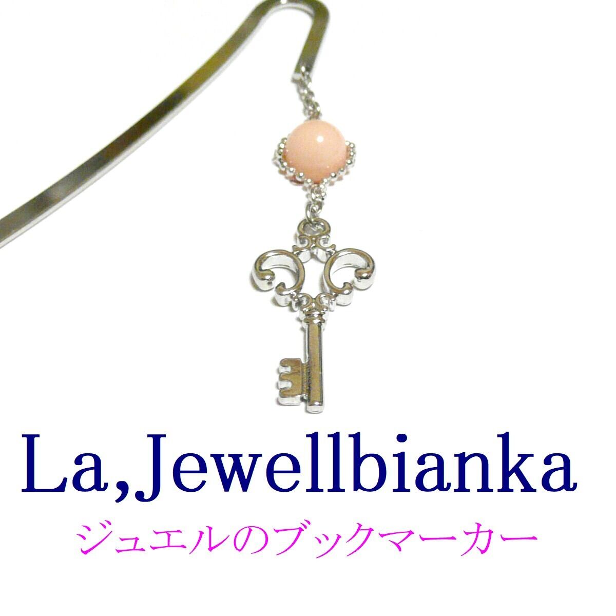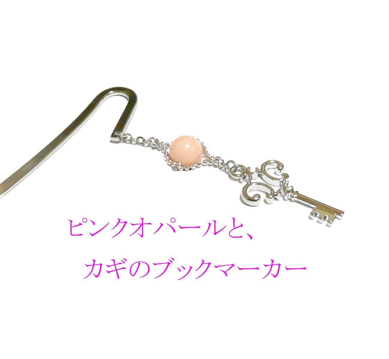 ピンクオパール しおり ブックマーカー コモン 8mm 丸珠 栞 カギ 鍵 キー 銀色 シルバーカラー