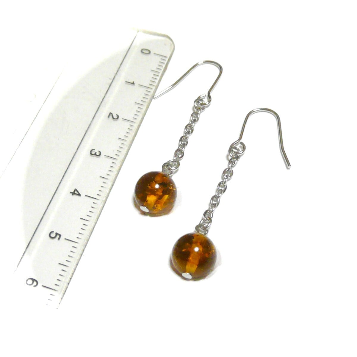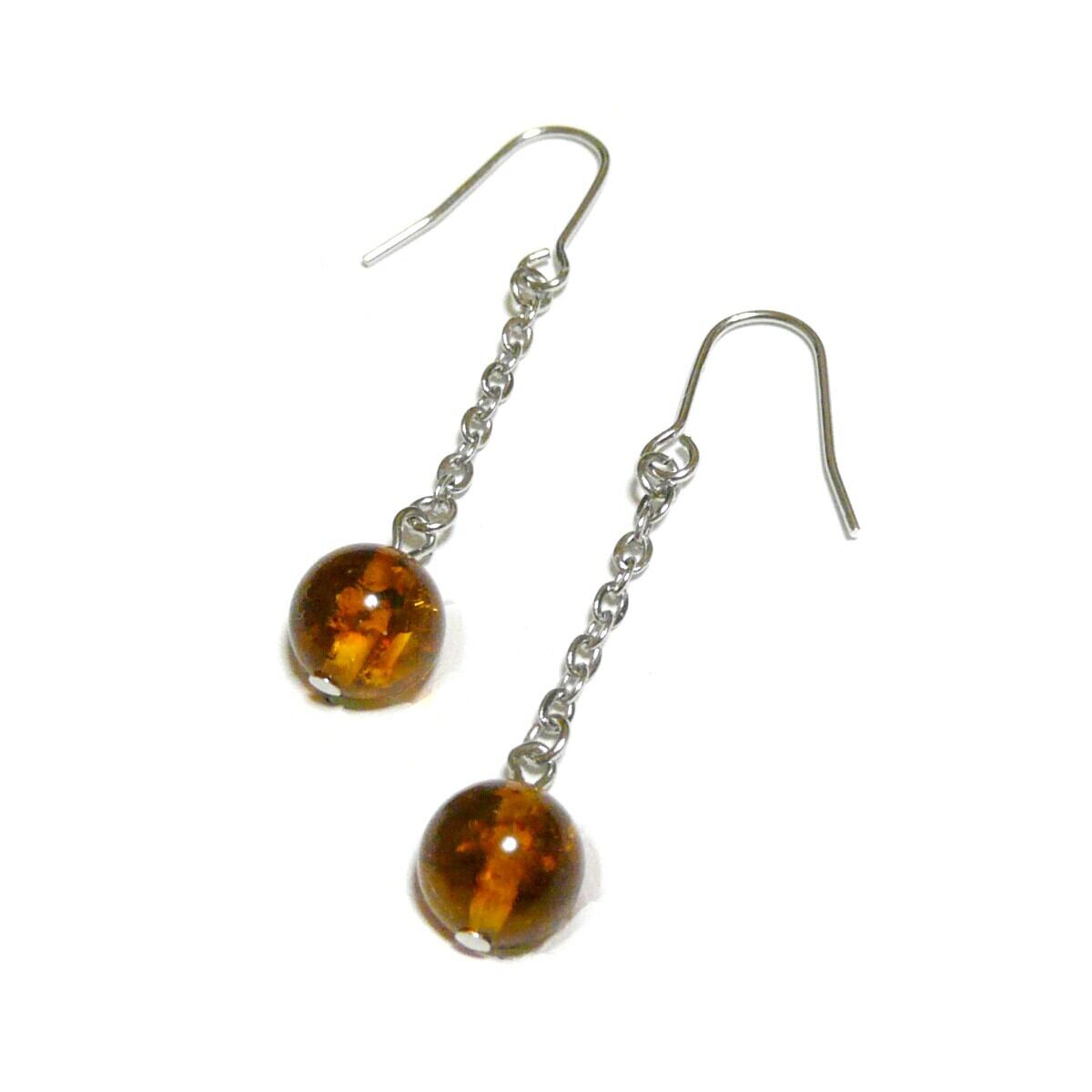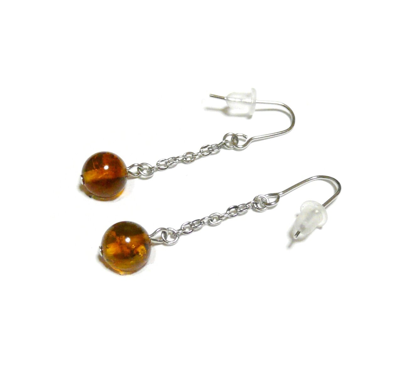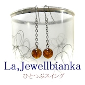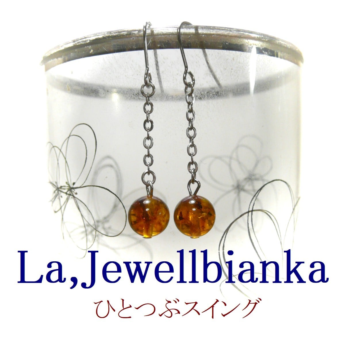 琥珀 ロングピアス ひとつぶ 揺れる スイング 一粒 8mm こはく アンバー 銀色 シルバーカラー