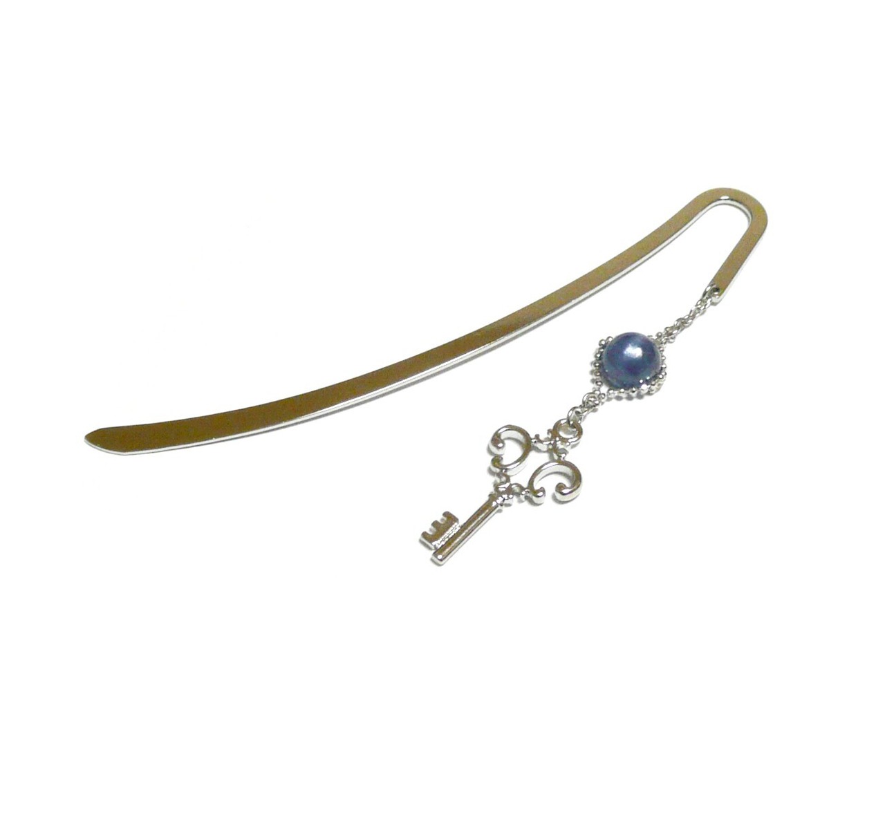 カギのチャームと共に揺れるブックマーカーです。