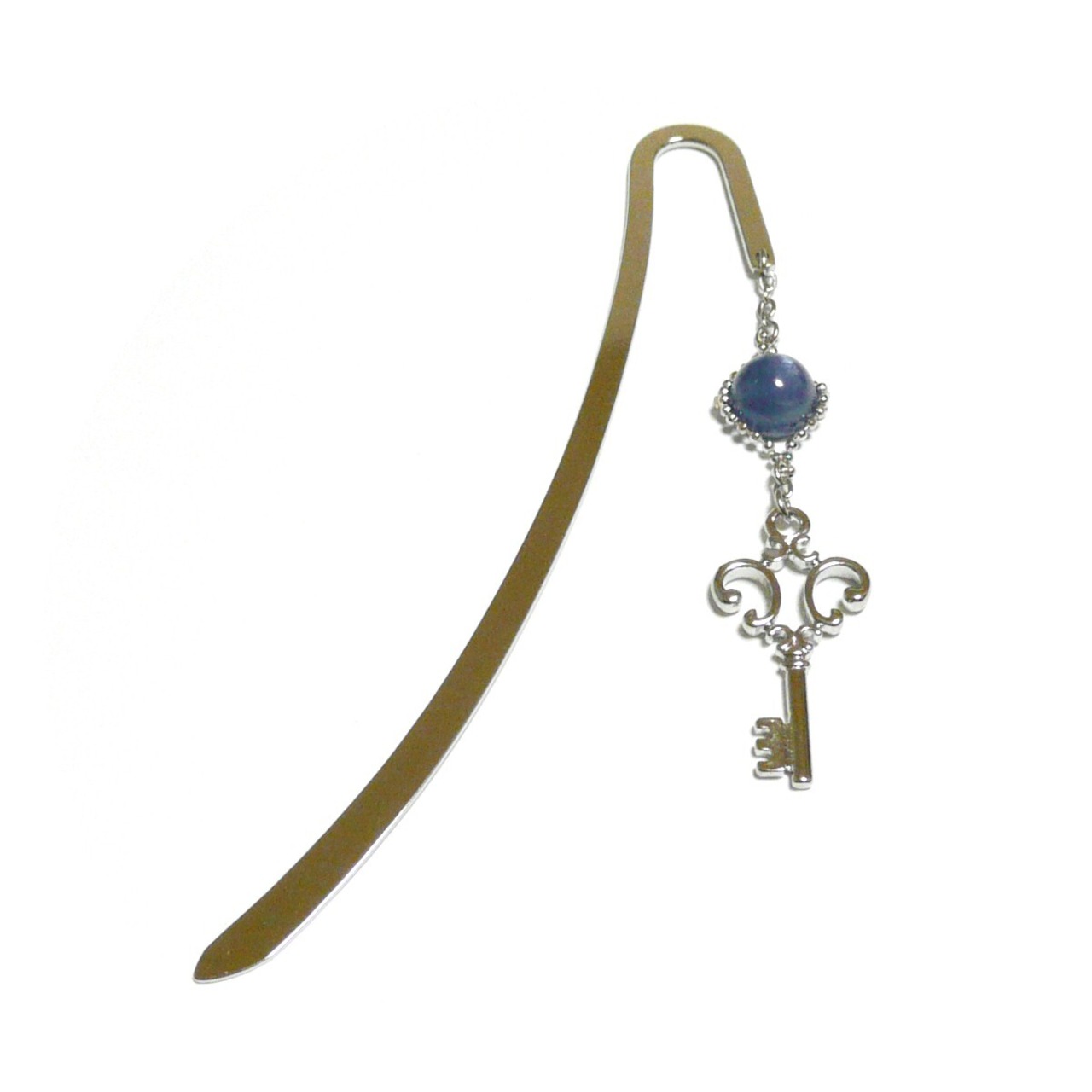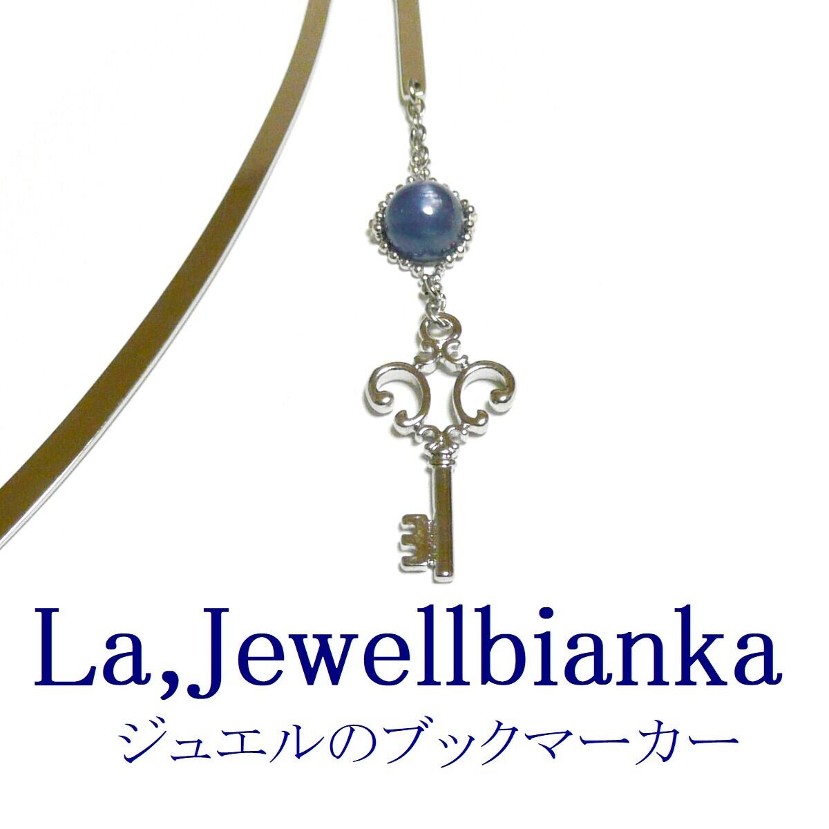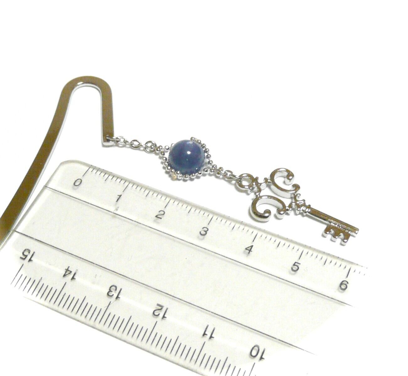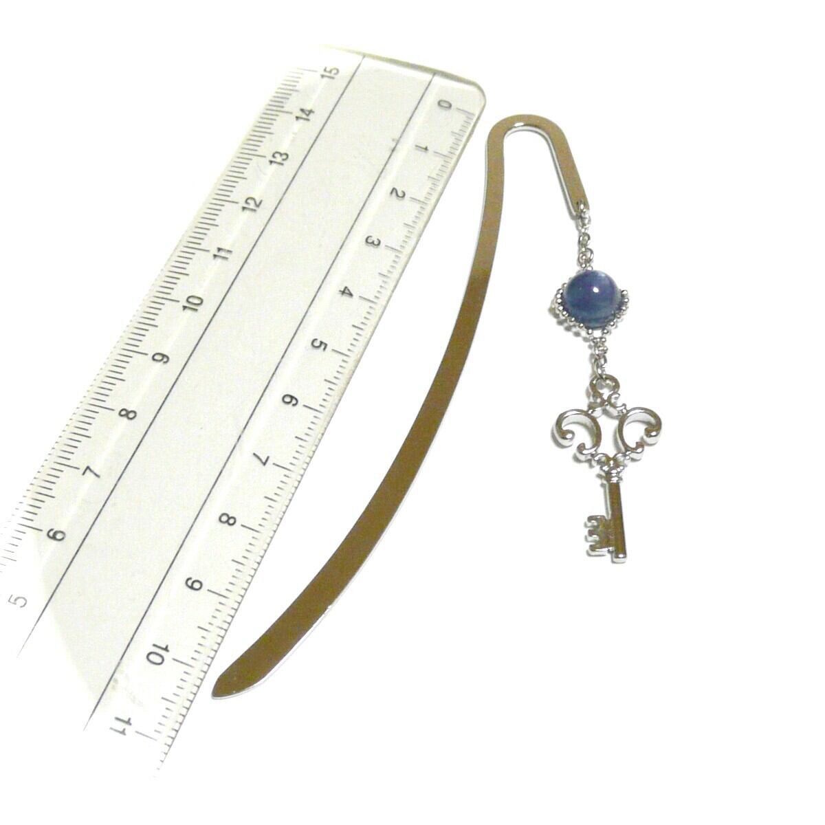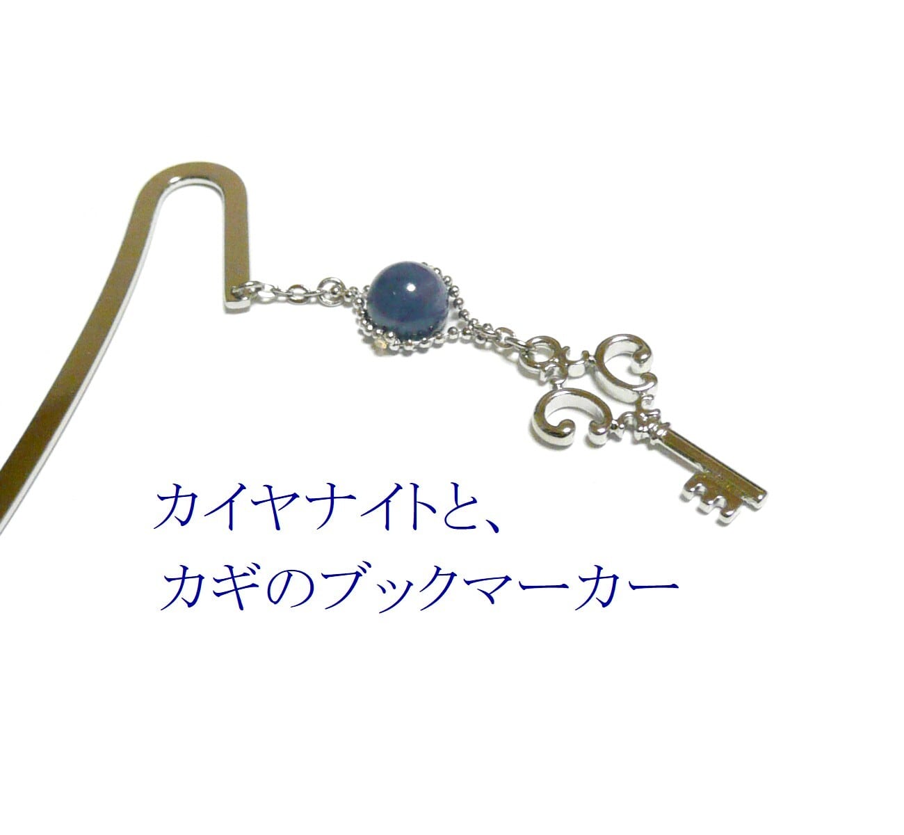 カイヤナイト しおり ブックマーカー 藍晶石 8mm 丸珠 栞 カギ 鍵 キー 銀色 シルバーカラー