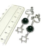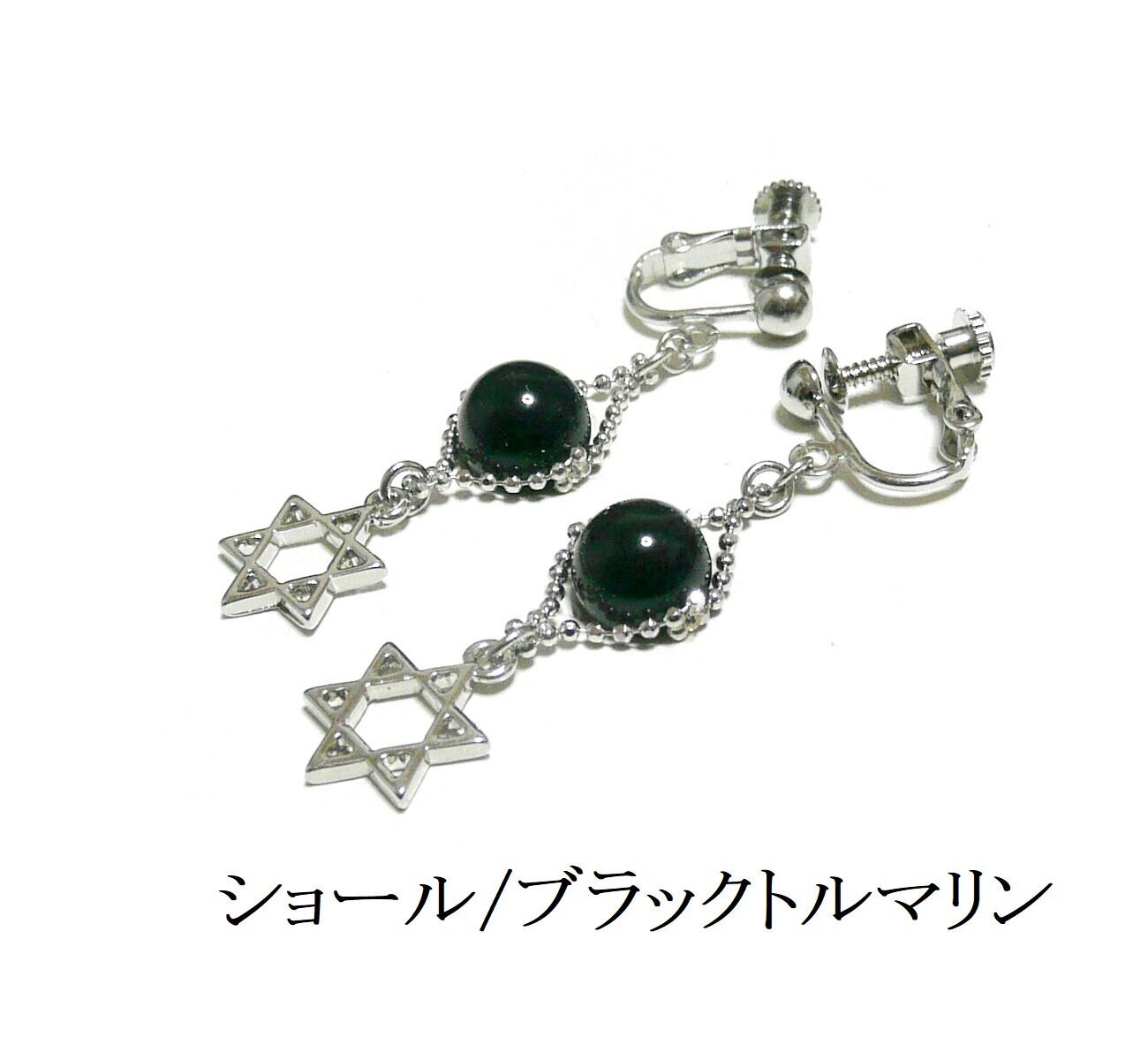 ブラックトルマリン イヤリング 六芒星 ショール 電気石 スター 銀色 シルバーカラー 【 聖母の星 】