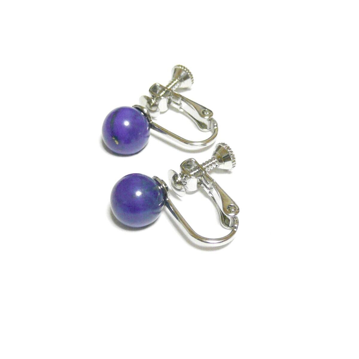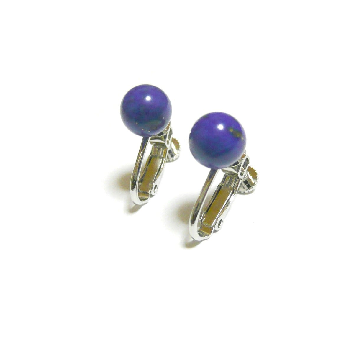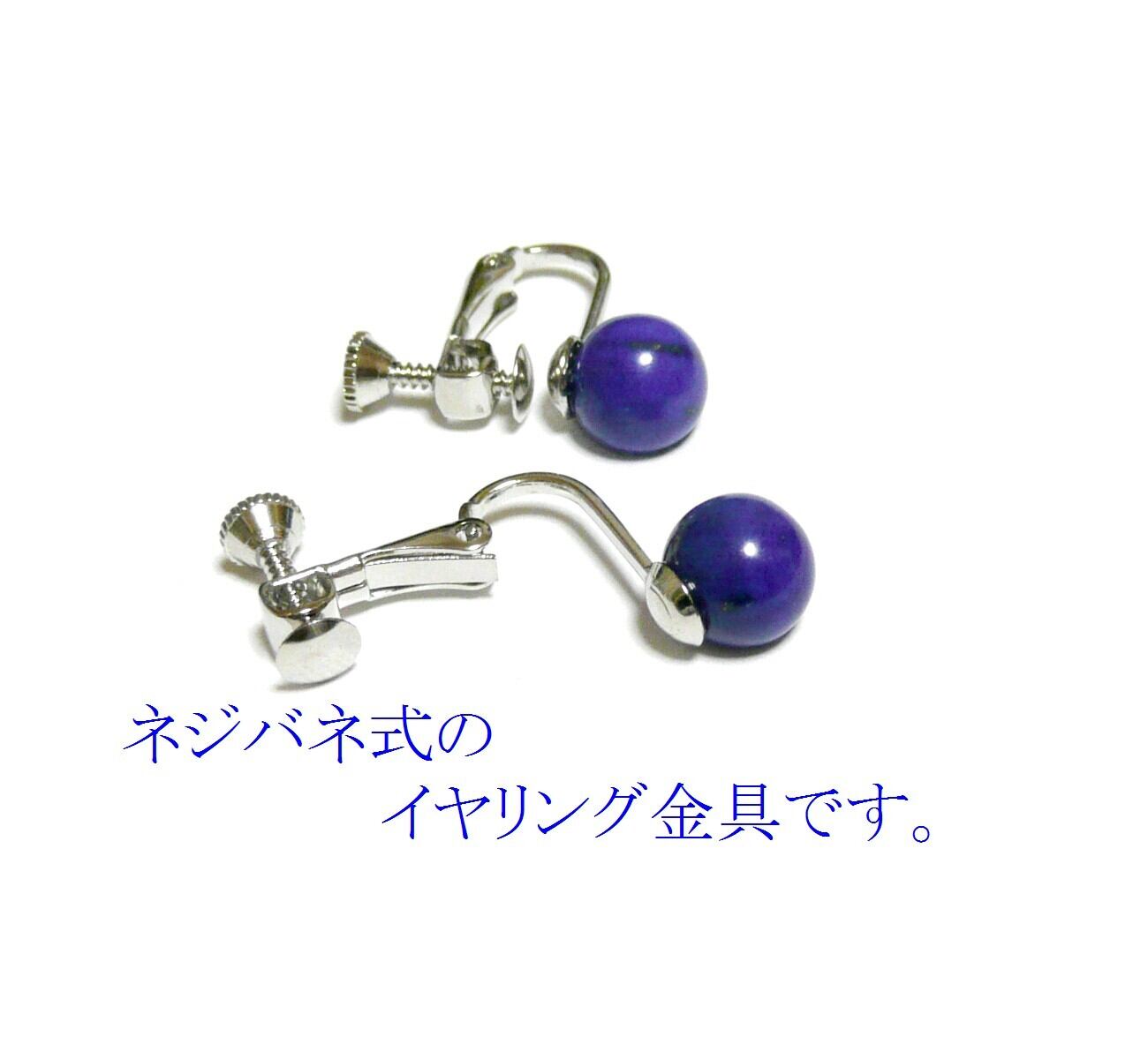 ラピスラズリ イヤリング 8mm 丸珠 スタンダード 瑠璃 銀色 ロジウムカラー スクリューバック