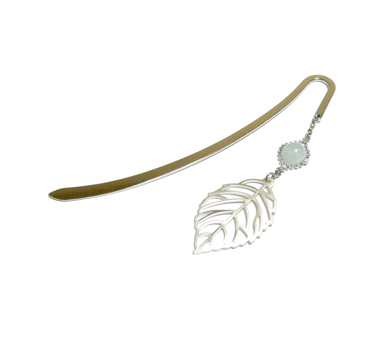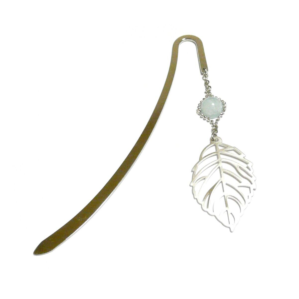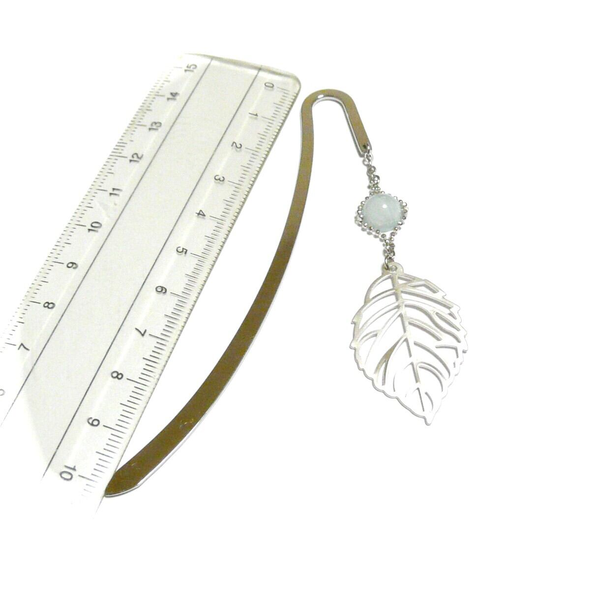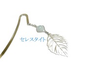 セレスタイト しおり ブックマーカー 天青石 8mm 丸珠 葉っぱ リーフ 天然石