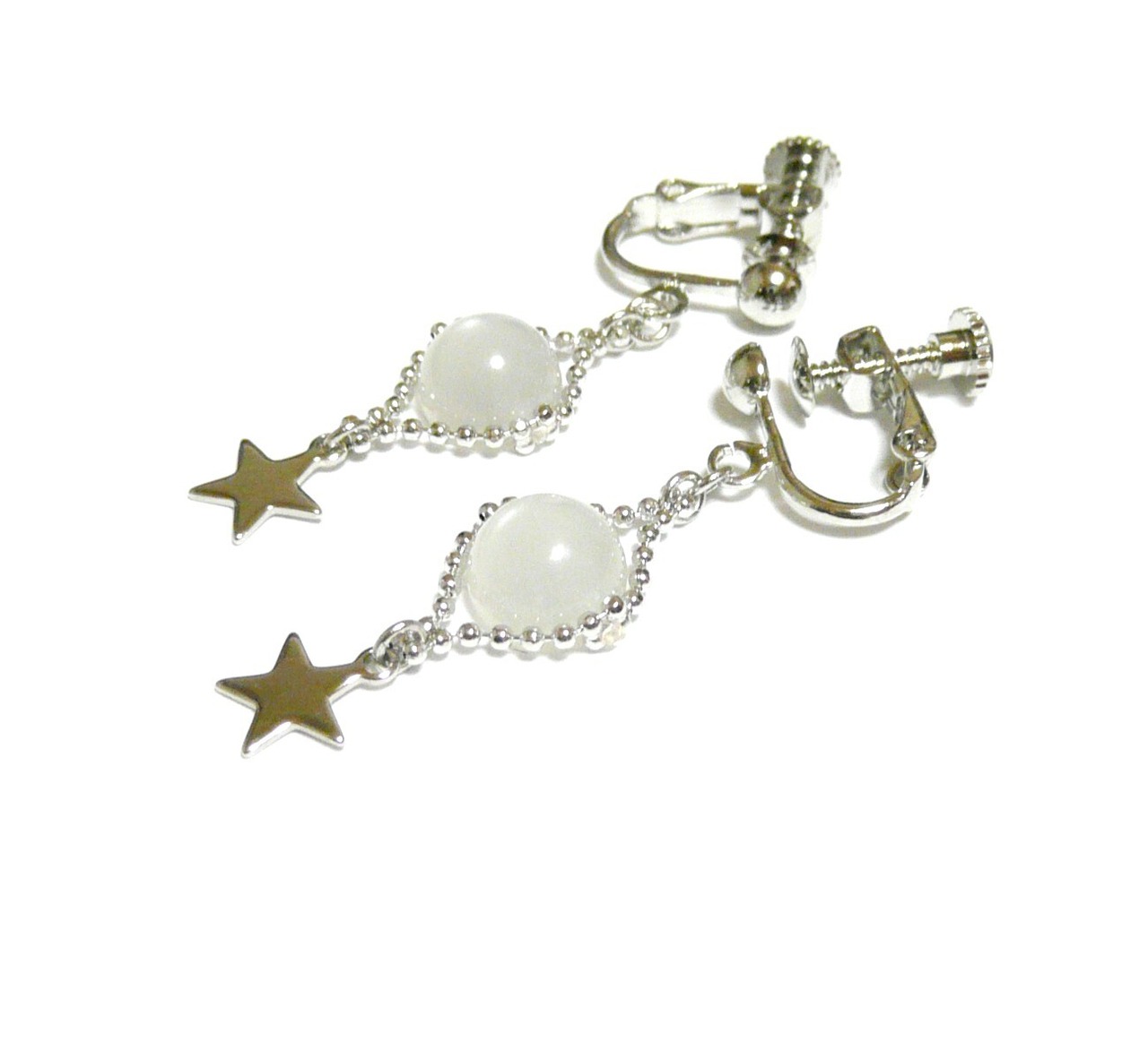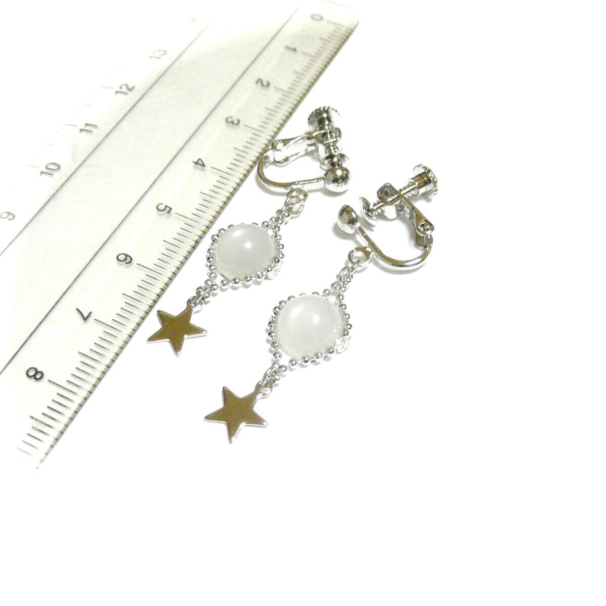 ムーンストーン イヤリング 小さな星 月長石 ホワイト 銀色 シルバーカラー 【 Lily スター 】