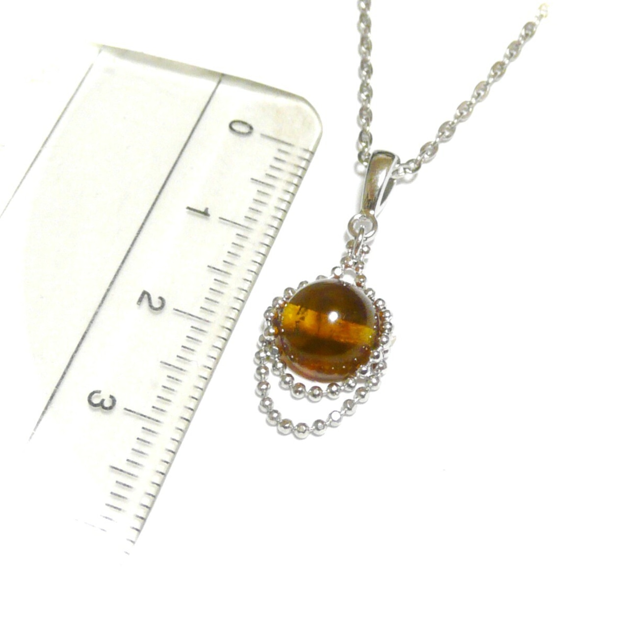 琥珀 ペンダント ネックレス 8mm丸珠 フリンジ フリル こはく アンバー 銀色 シルバーカラー