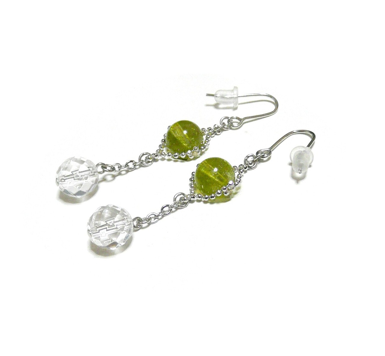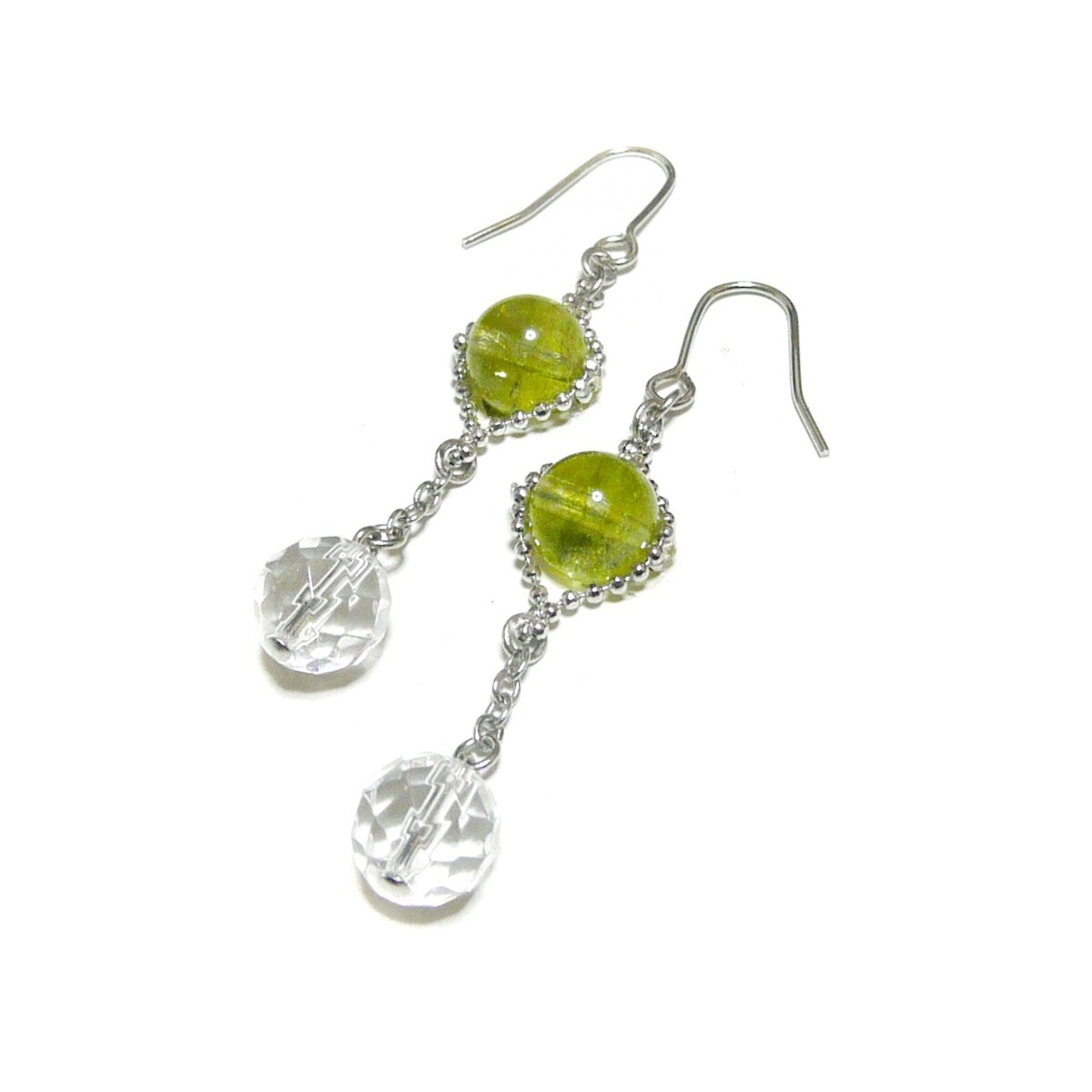 ペリドット と 水晶 ピアス 銀色 シルバーカラー 【 クリスタルウィズ 】
