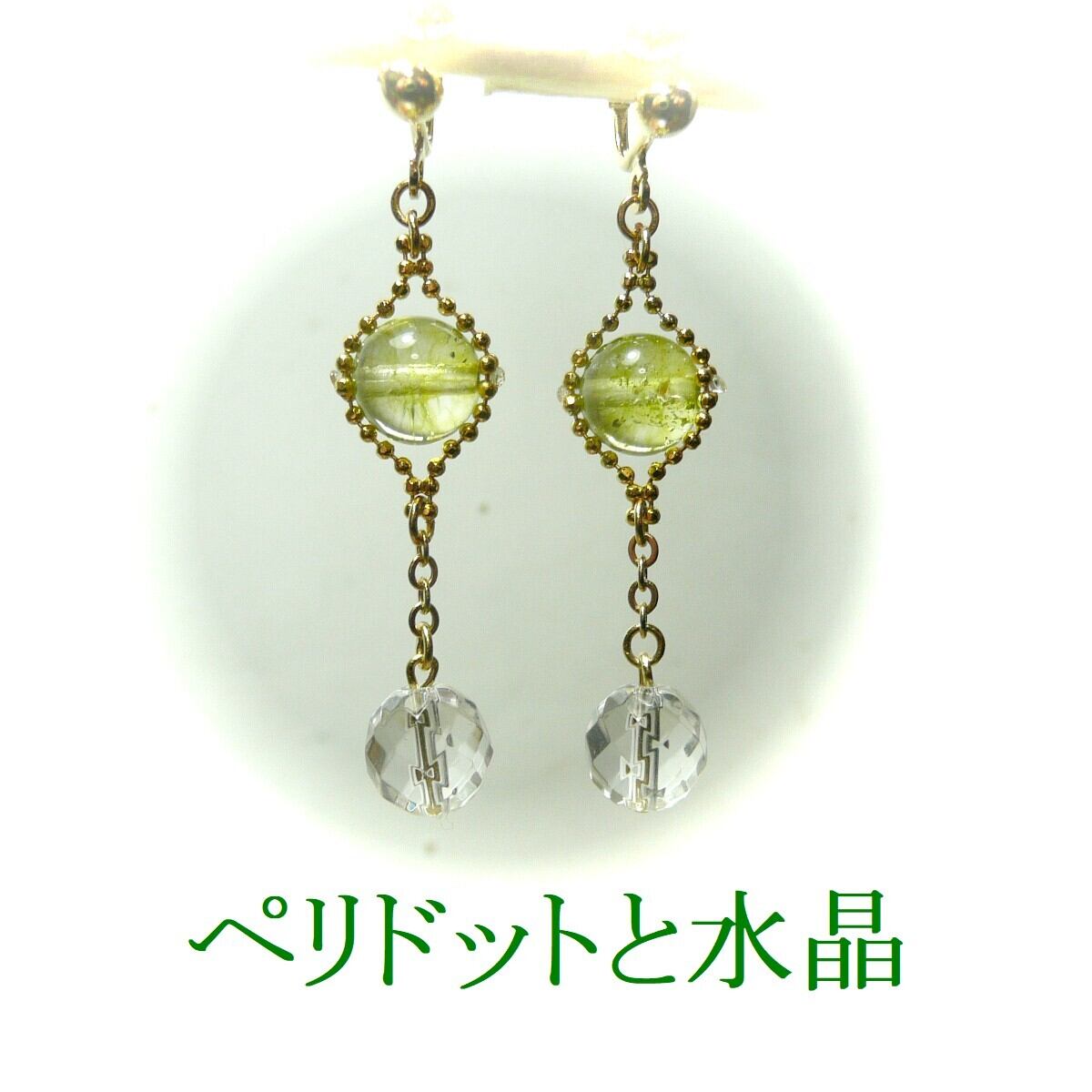 「 ペリドット 水晶 ピアス クリスタルウィズ 」と検索なさりご覧下さい。