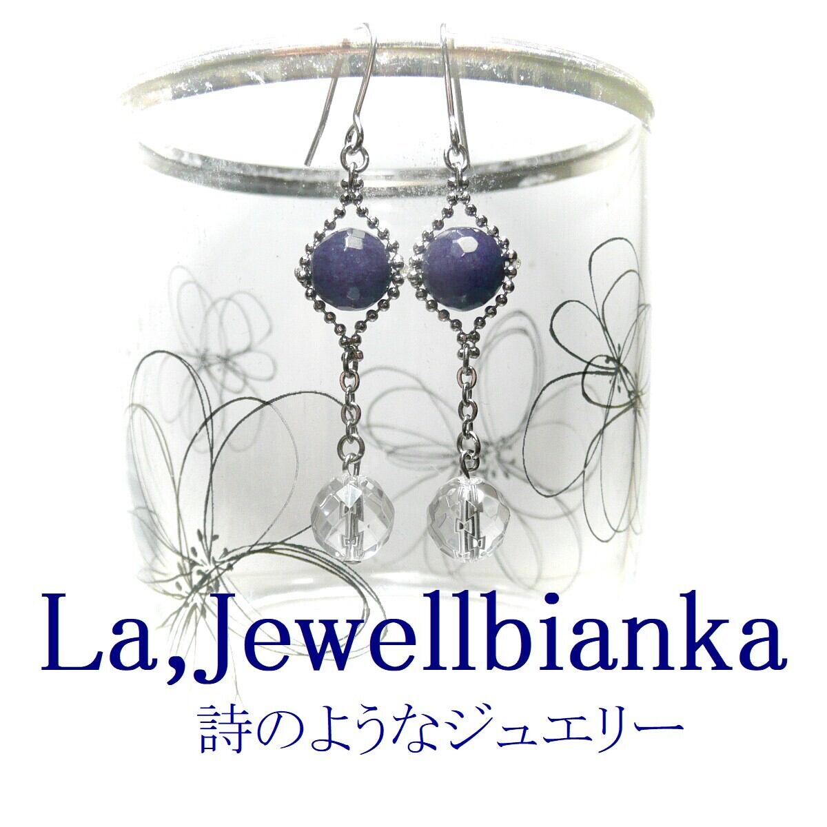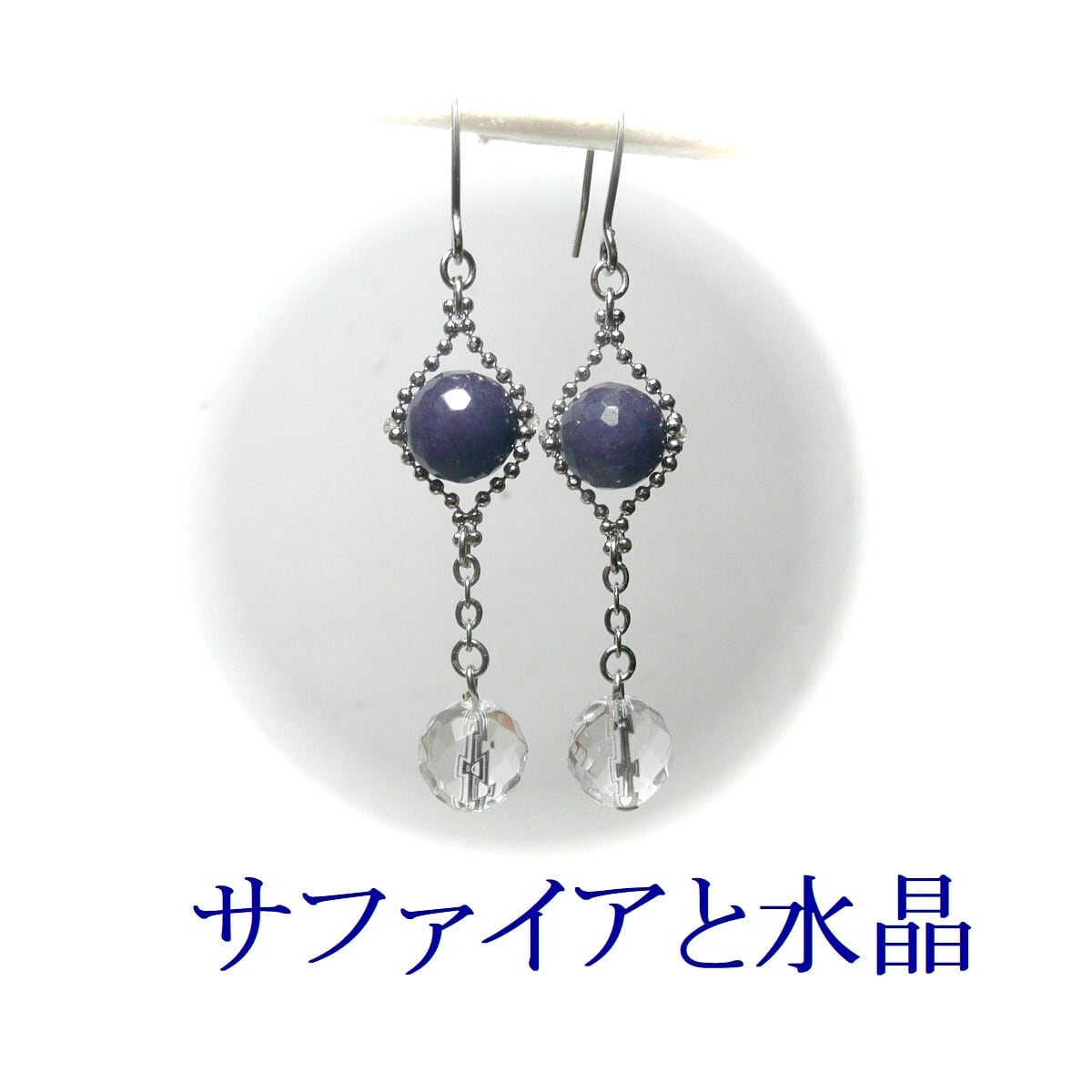 「 サファイア 水晶 イヤリング クリスタルウィズ 」と検索なさりご覧下さい。