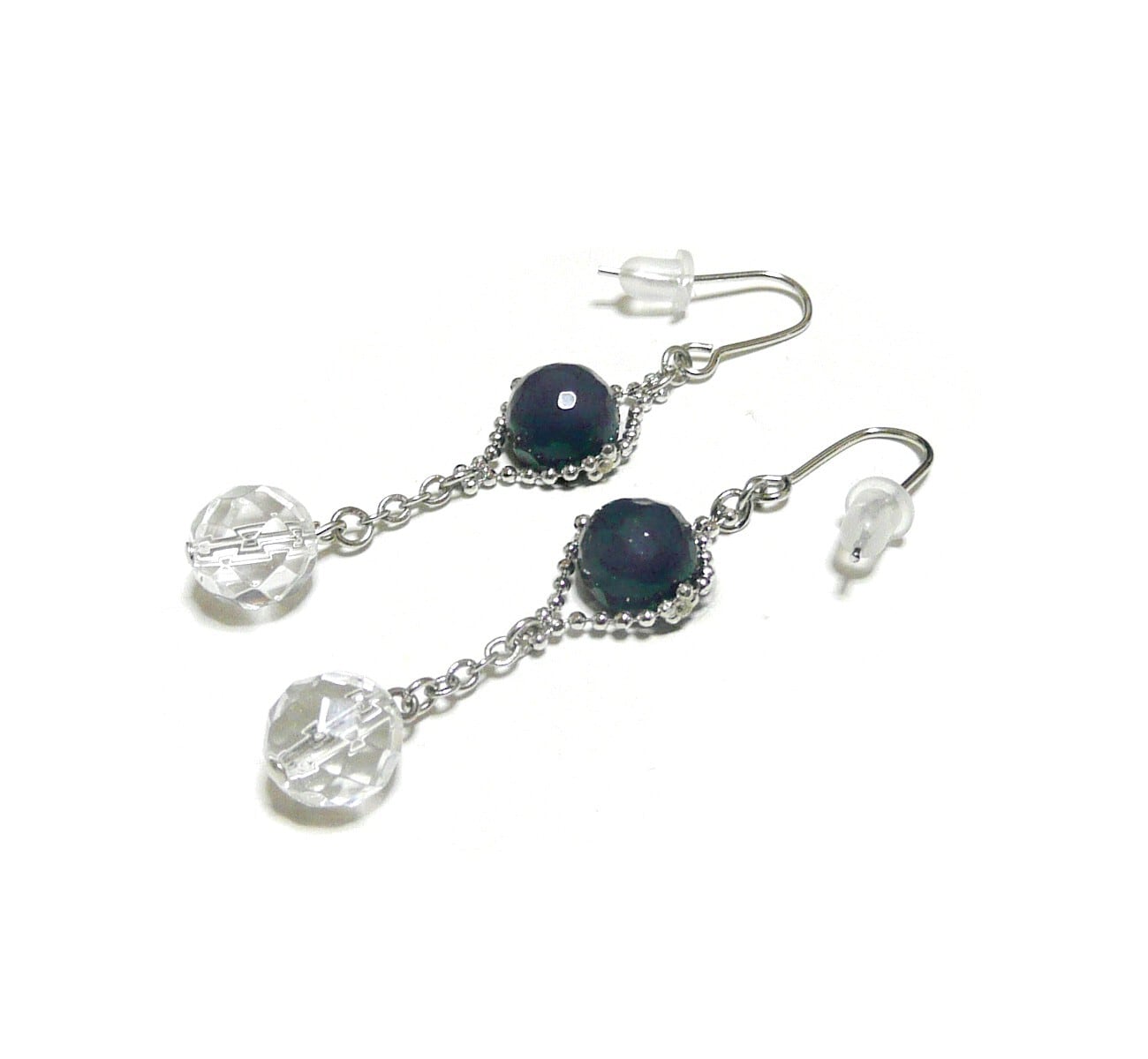 【 サファイアと水晶のピアス 】