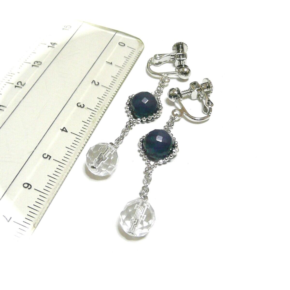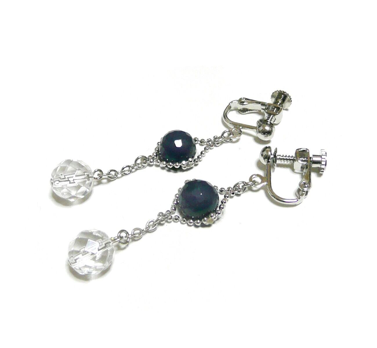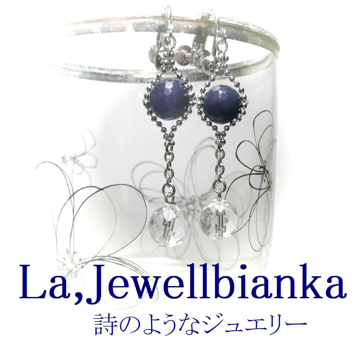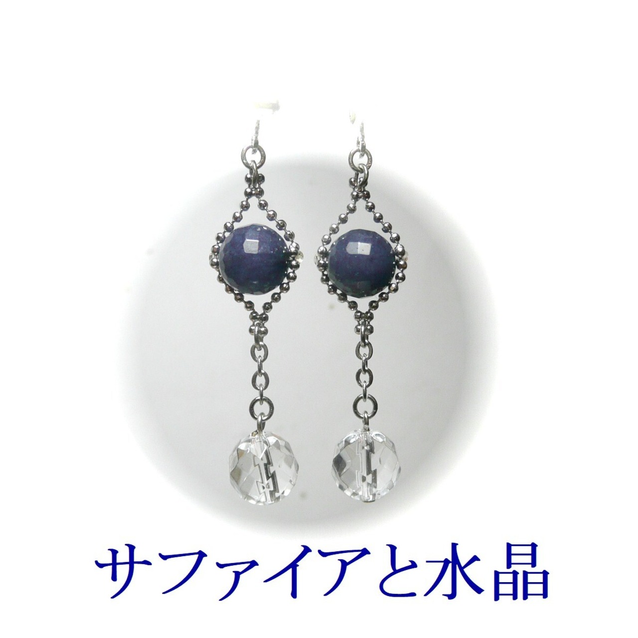サファイア と 水晶 イヤリング 銀色 シルバーカラー 【 クリスタルウィズ 】