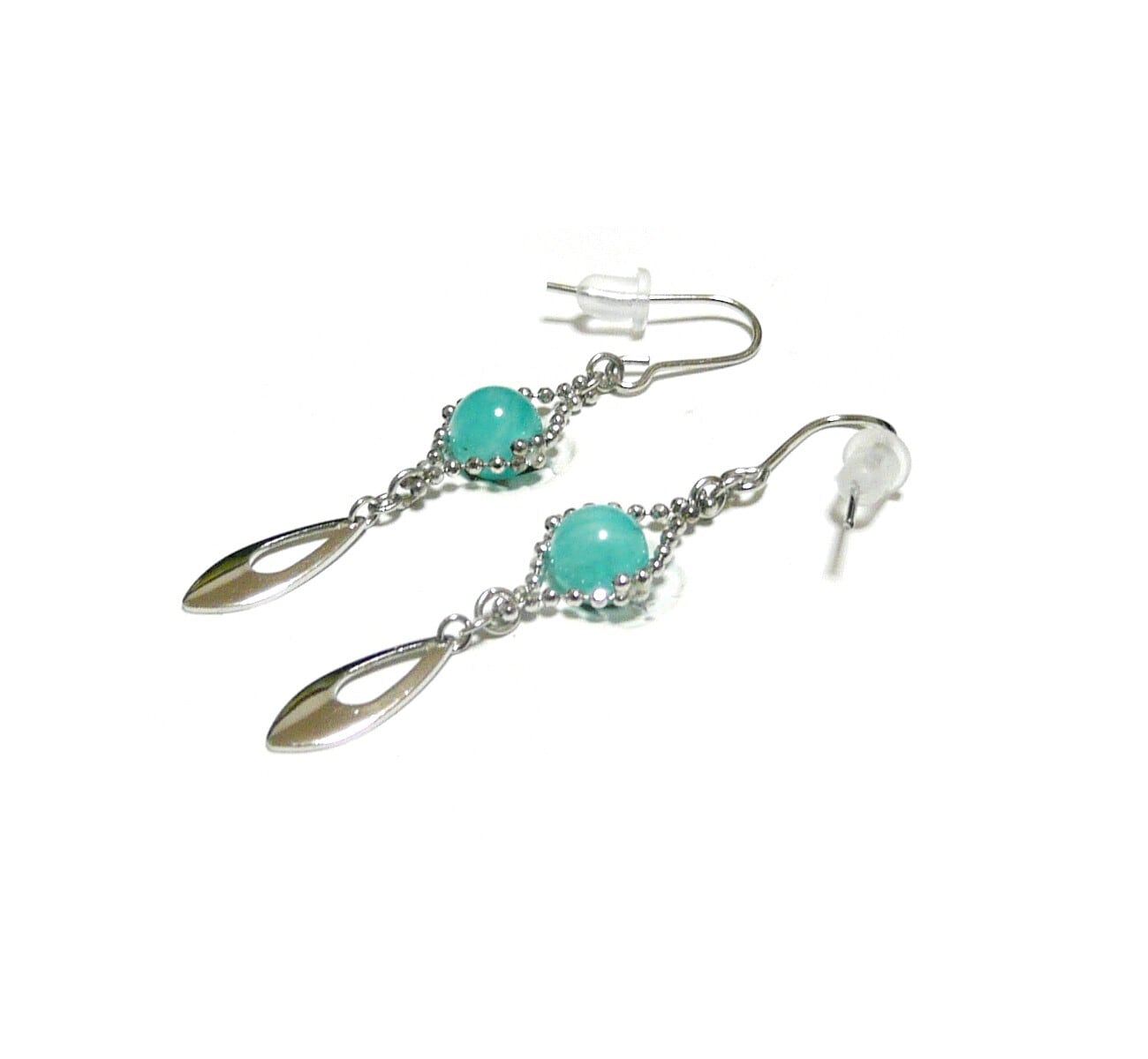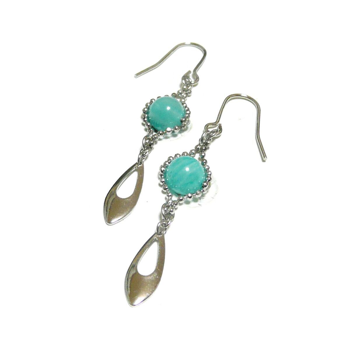 アマゾナイト ピアス 天河石 小粒 ロング 銀色 シルバーカラー 6mm 丸珠 【 女王 アヴァンテ 】