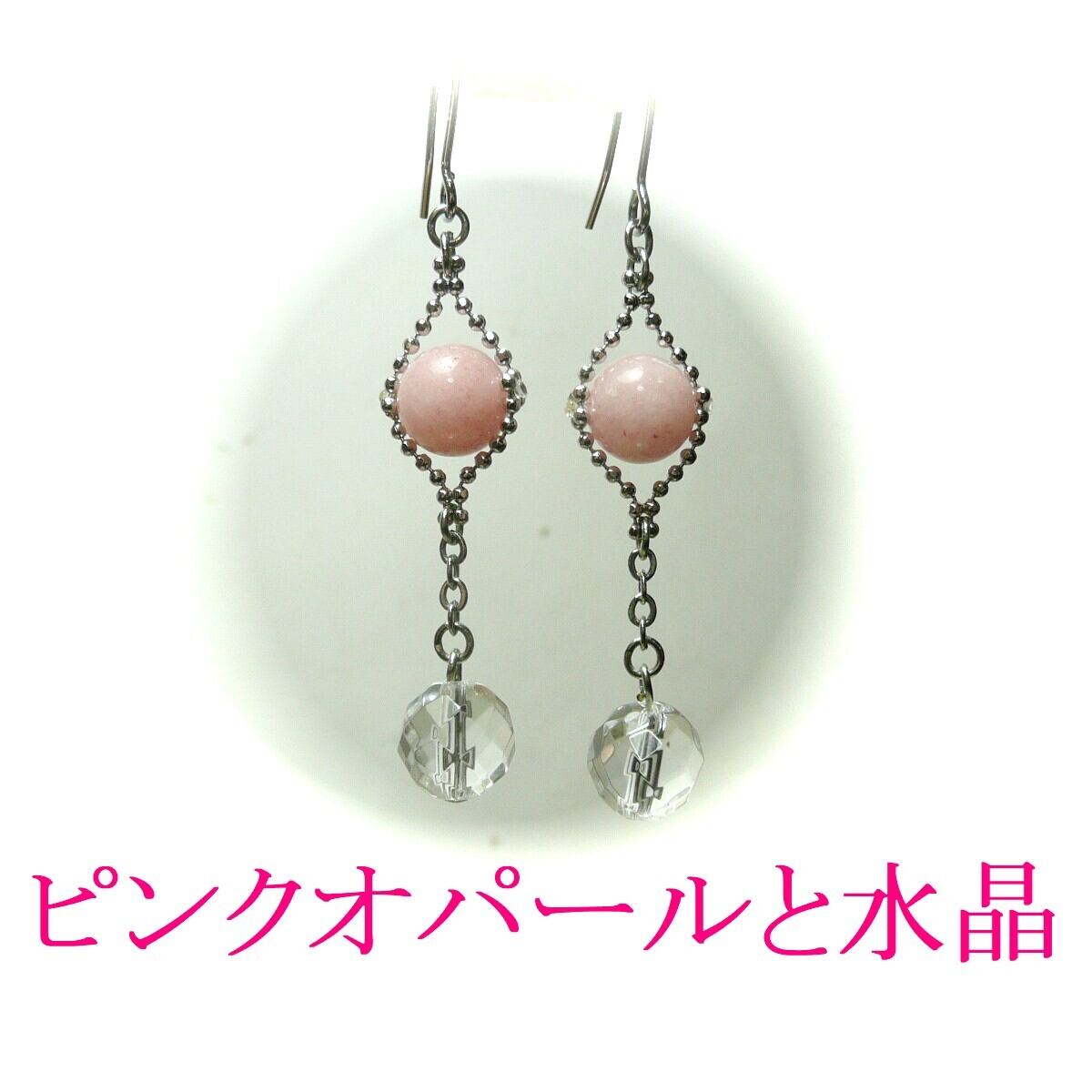 「 ピンクオパール 水晶 イヤリング クリスタルウィズ 」と検索なさりご覧下さい。