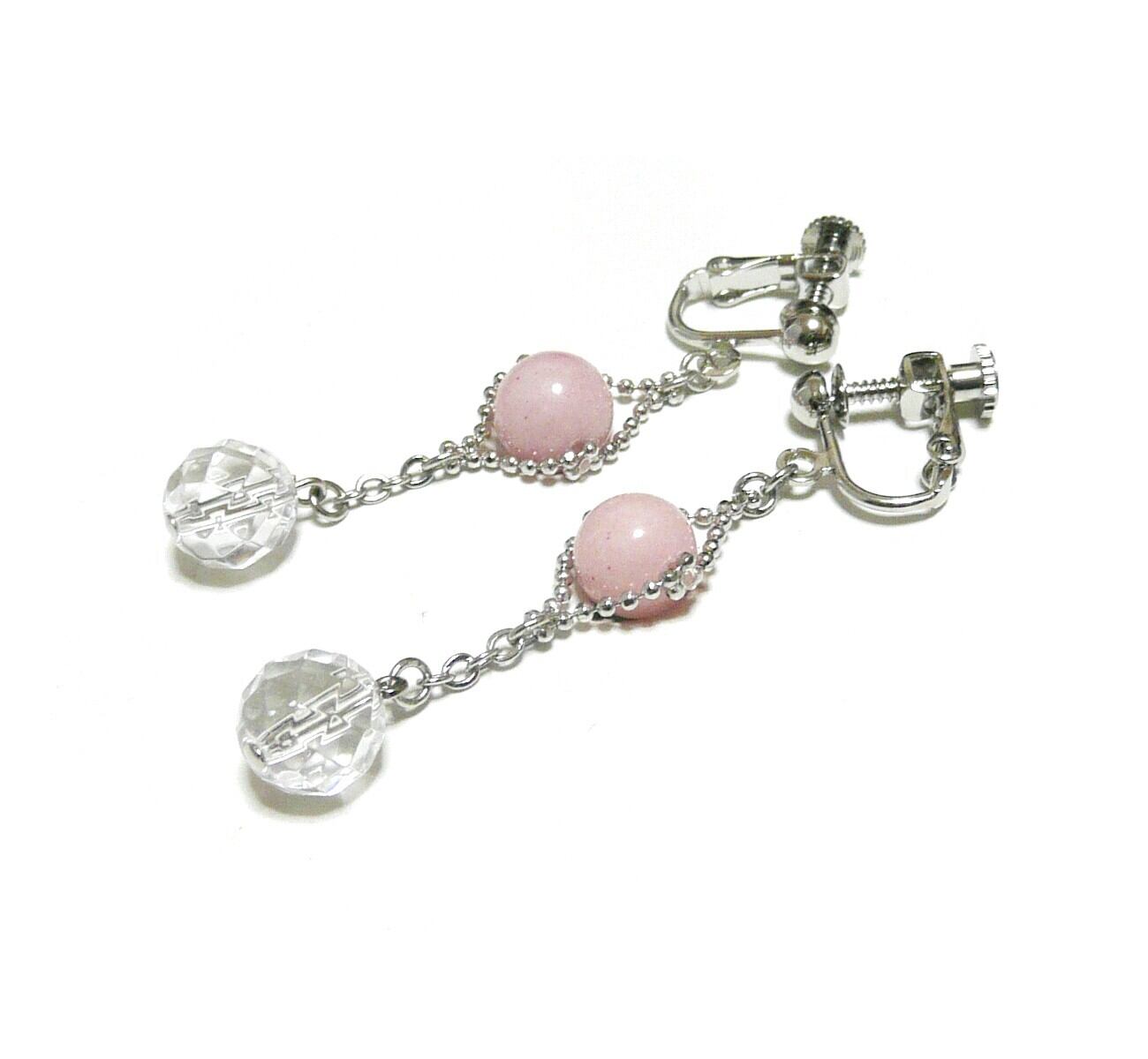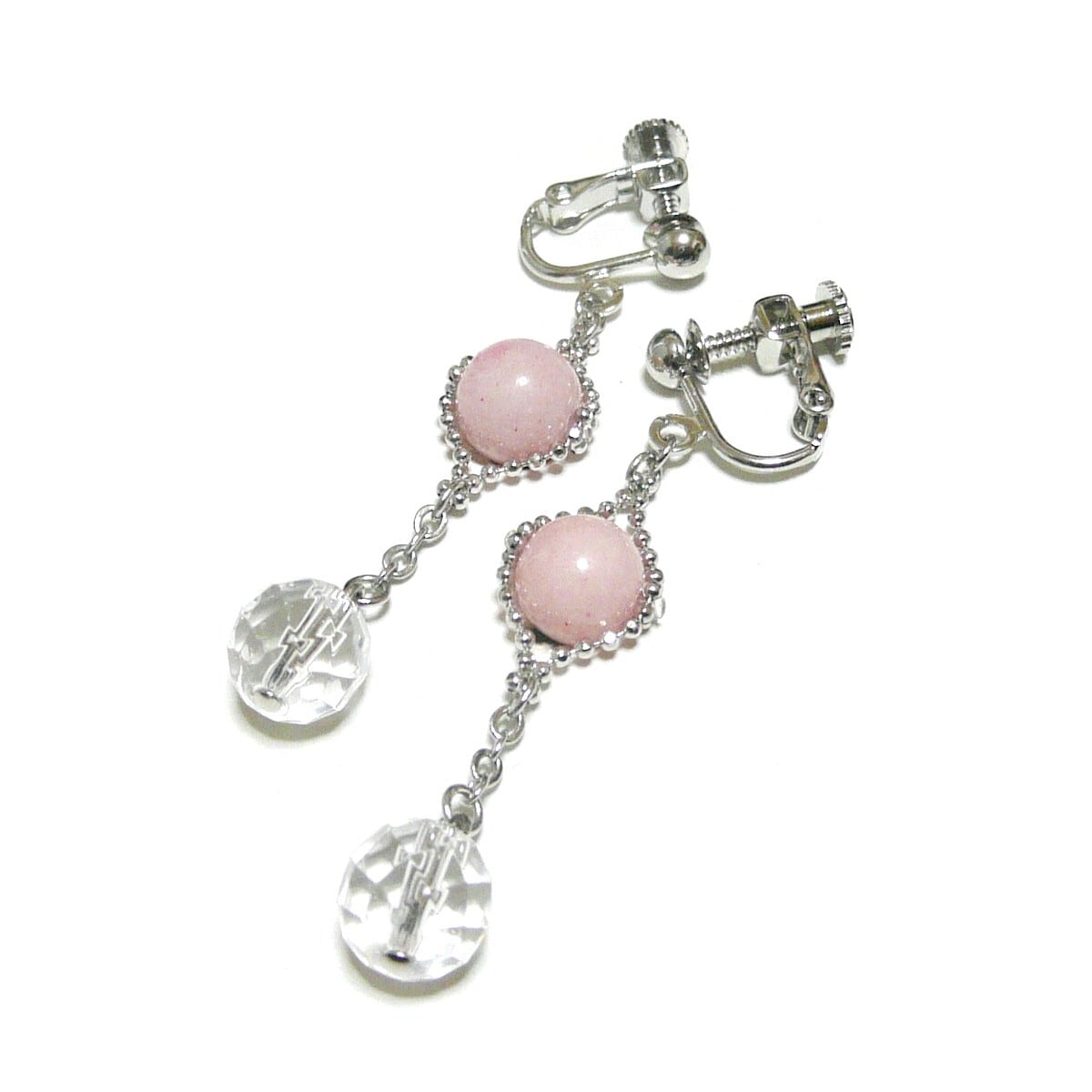 ピンクオパール と 水晶 イヤリング 銀色 シルバーカラー 【 クリスタルウィズ 】