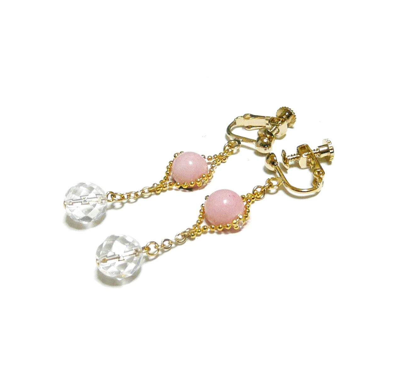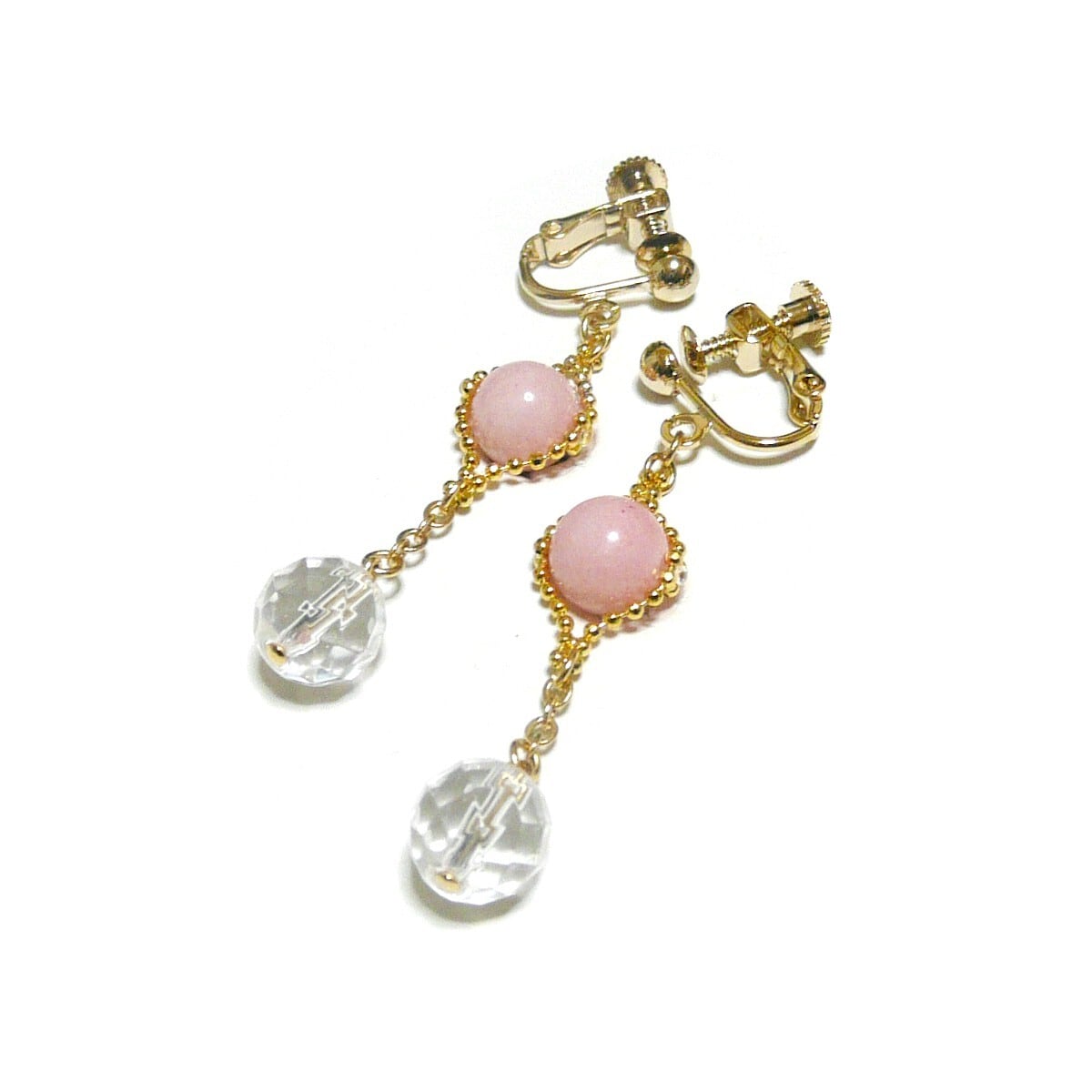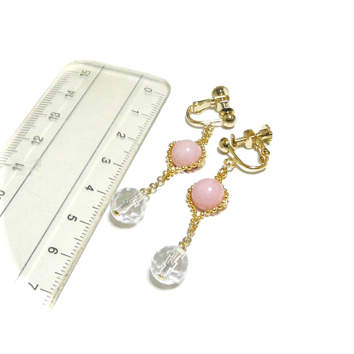 ピンクオパール と 水晶 イヤリング 金色 ゴールドカラー 【 クリスタルウィズ 】