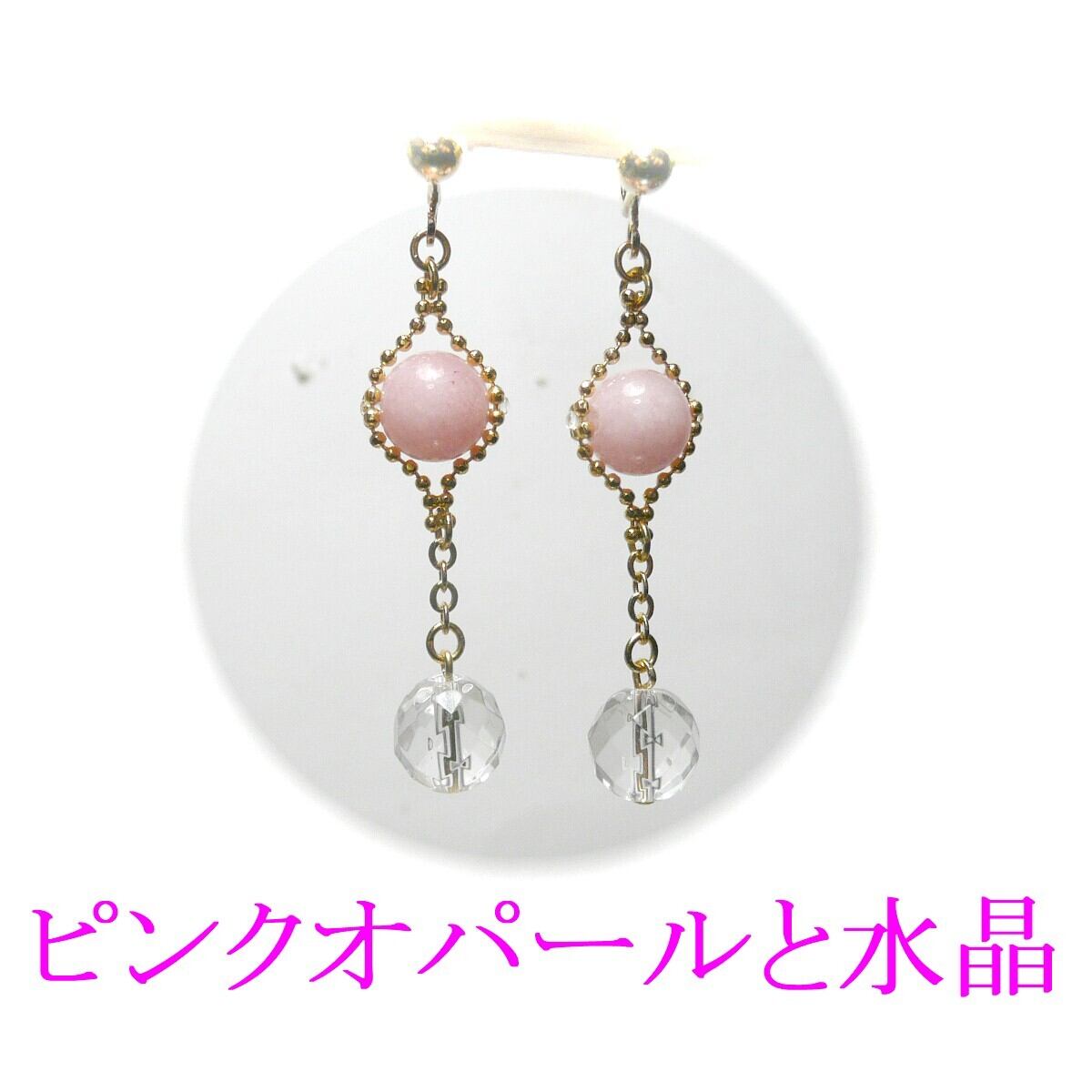 「 ピンクオパール 水晶 ピアス クリスタルウィズ 」と検索なさりご覧下さい。