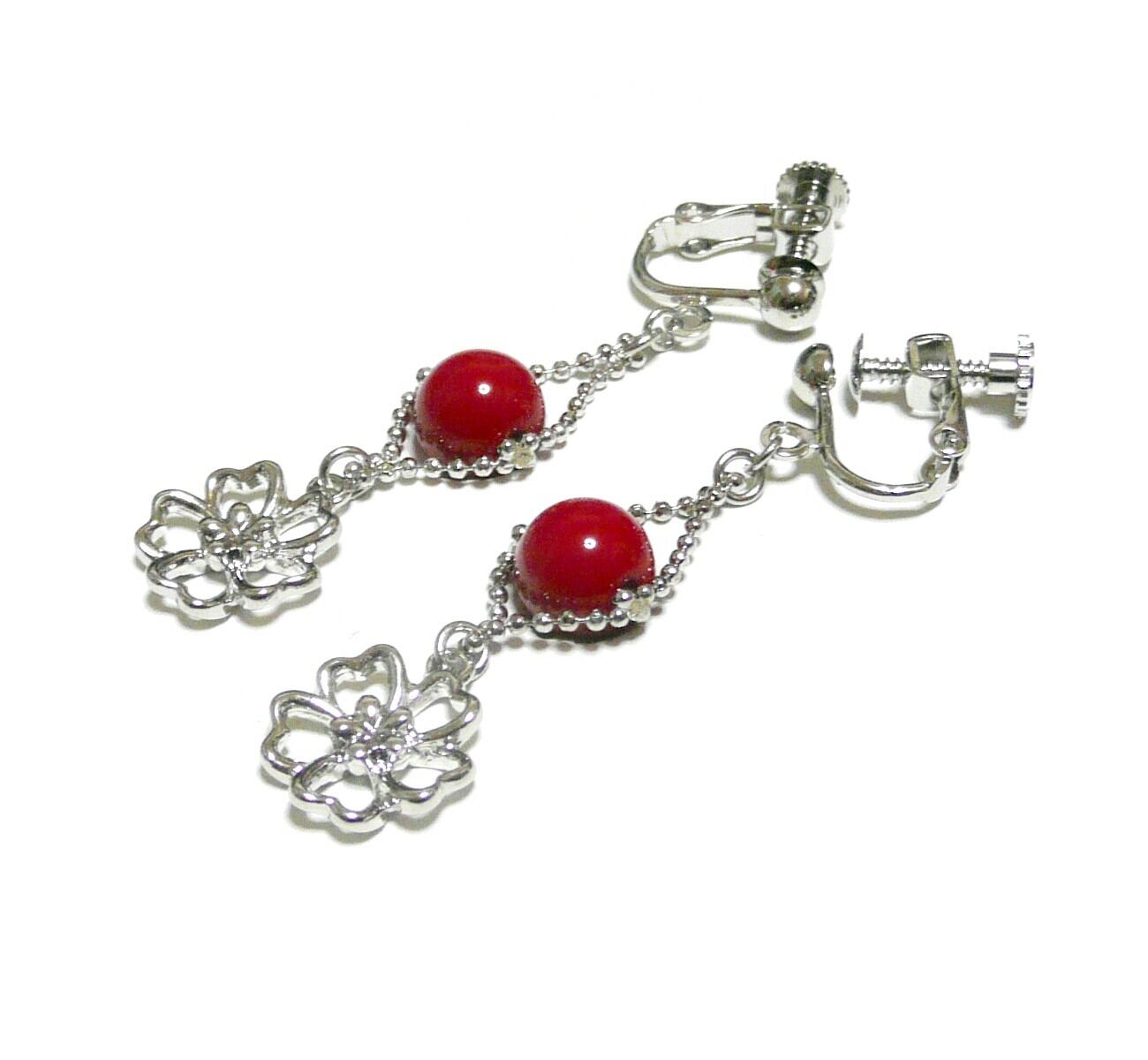 赤珊瑚 イヤリング 桜 さんご コーラル 銀色 シルバーカラー 【 さくら 舞う 】