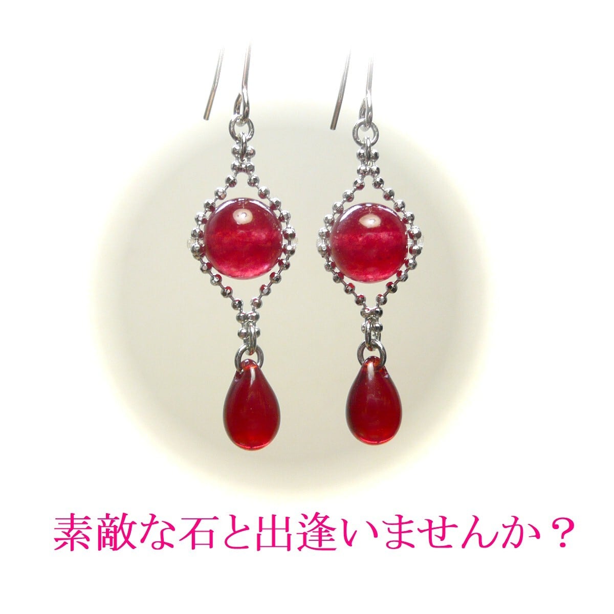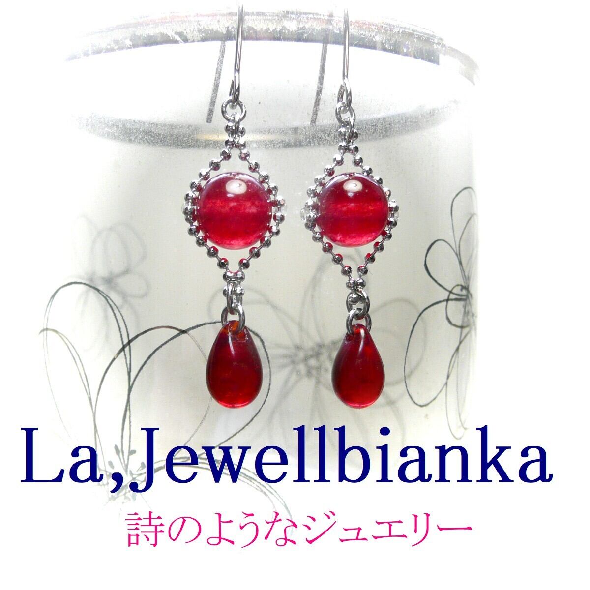 「 ルビー 赤い琥珀 イヤリング 人魚姫の涙 」と検索なさりご覧下さい。