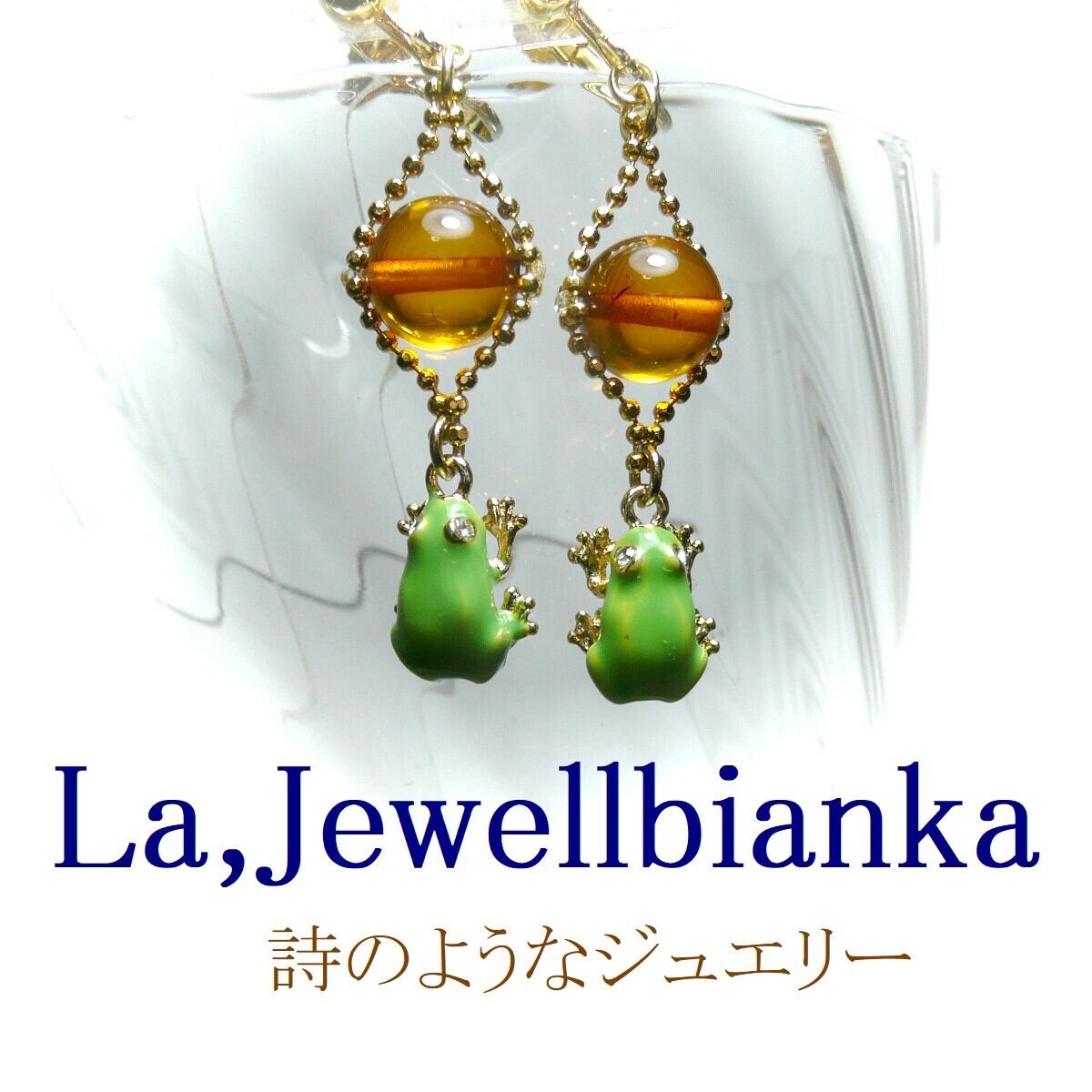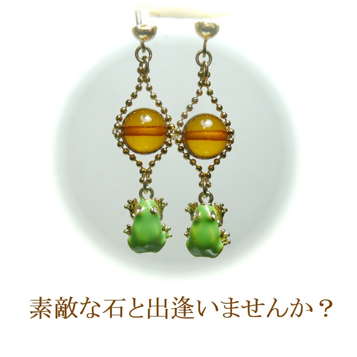 「 アマガエル ピアス 琥珀 」と検索なさりご覧下さい。
