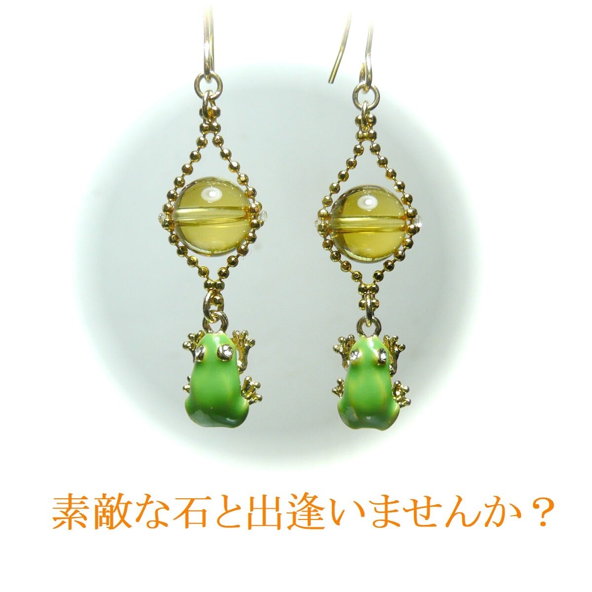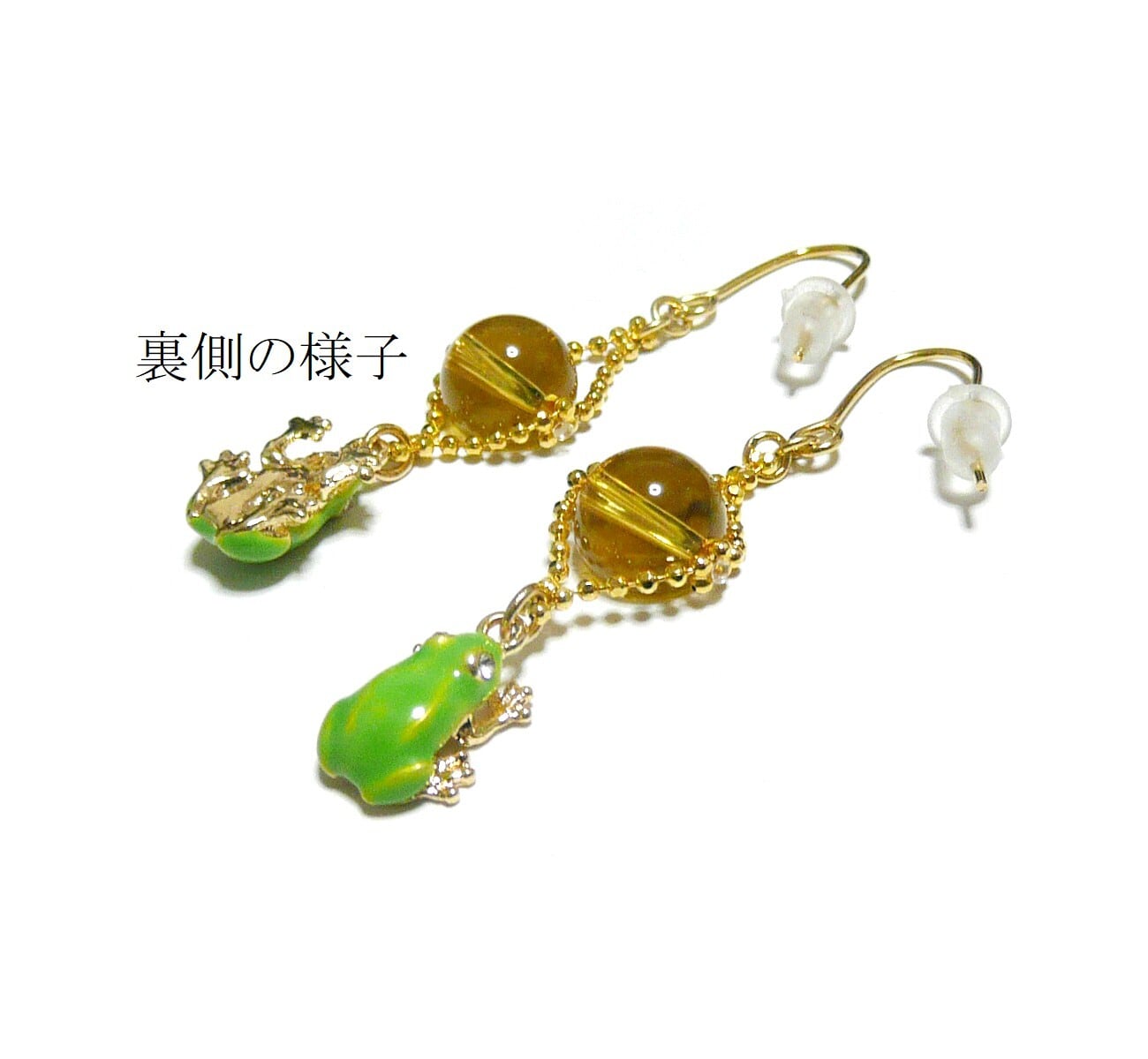 「 アマガエル イヤリング シトリン 」と検索なさりご覧下さい。
