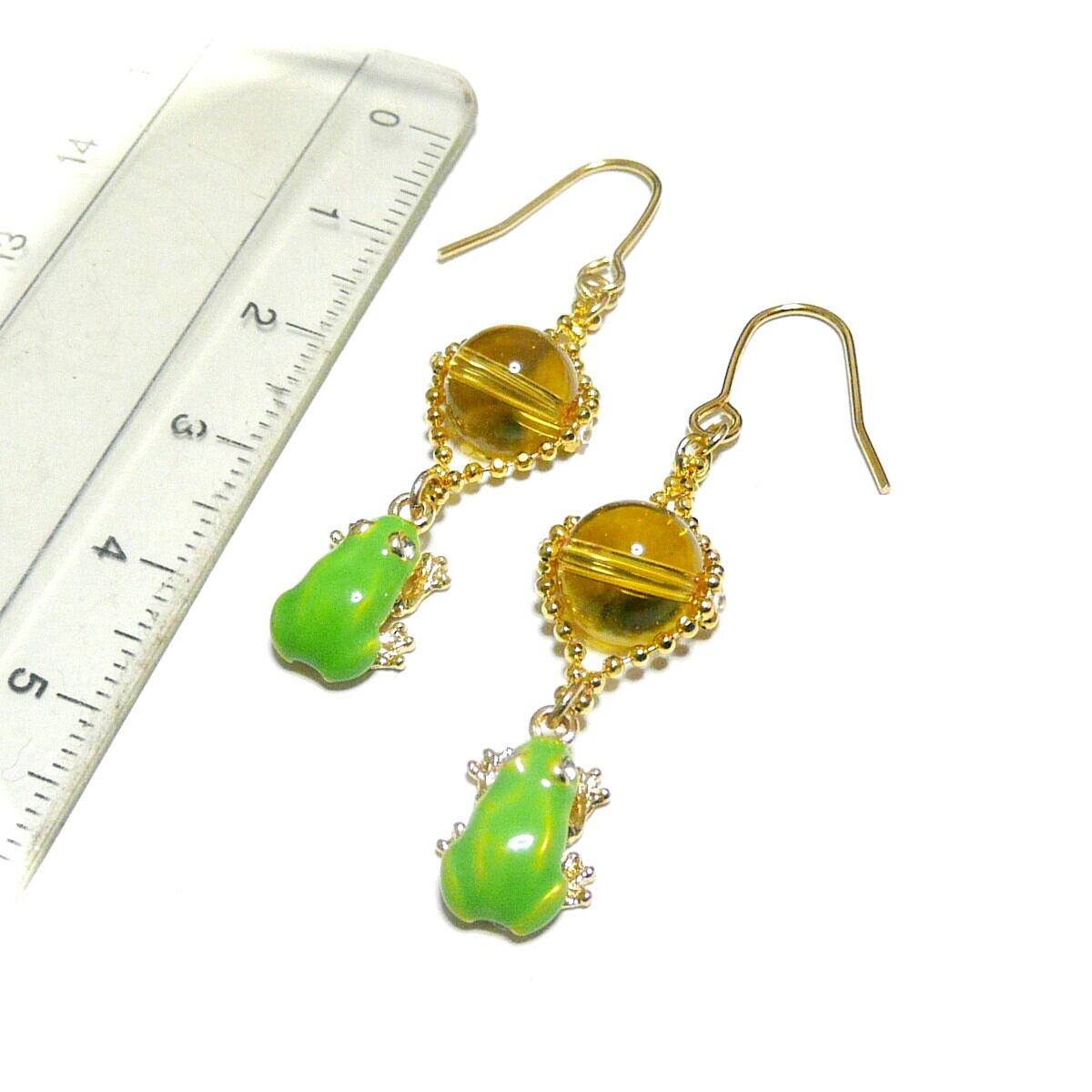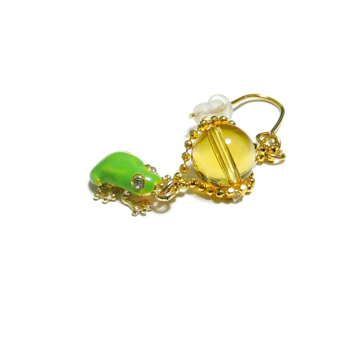 アマガエル ピアス シトリン 黄水晶 8mm 蛙チャーム 金色 ゴールドカラー 【 かえる ぴょん 】