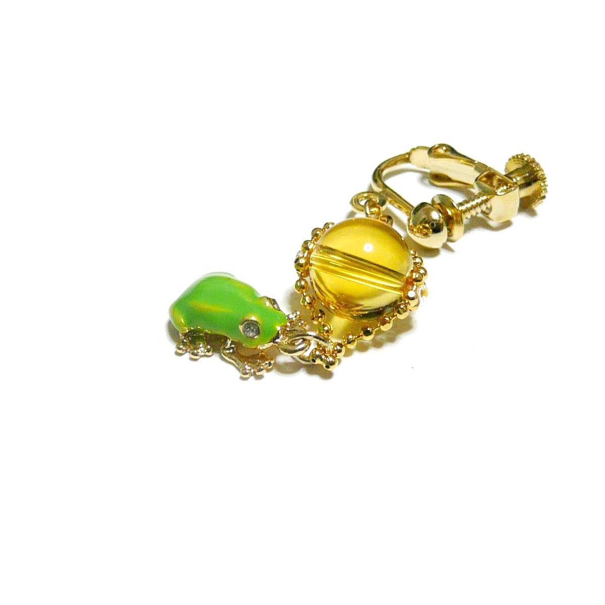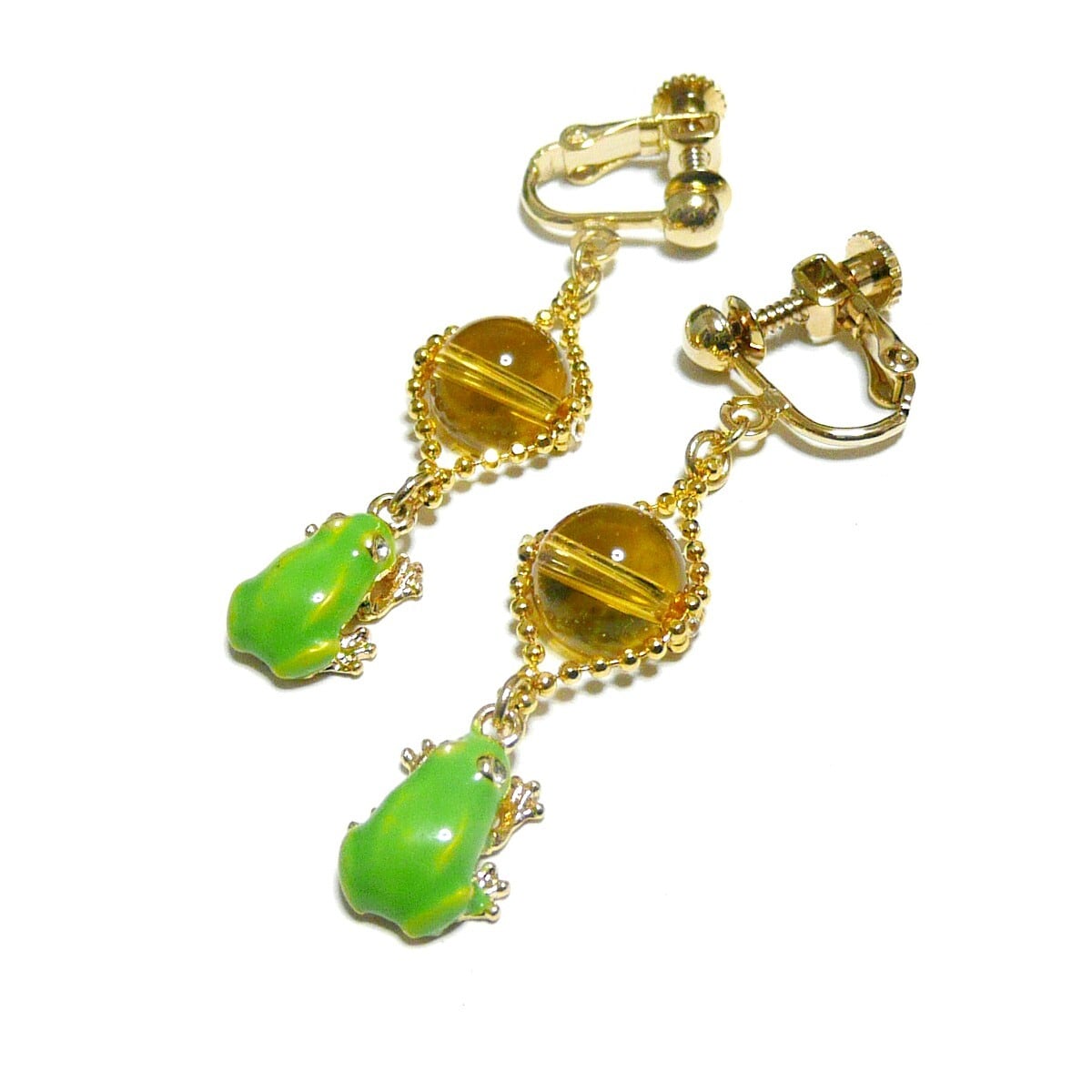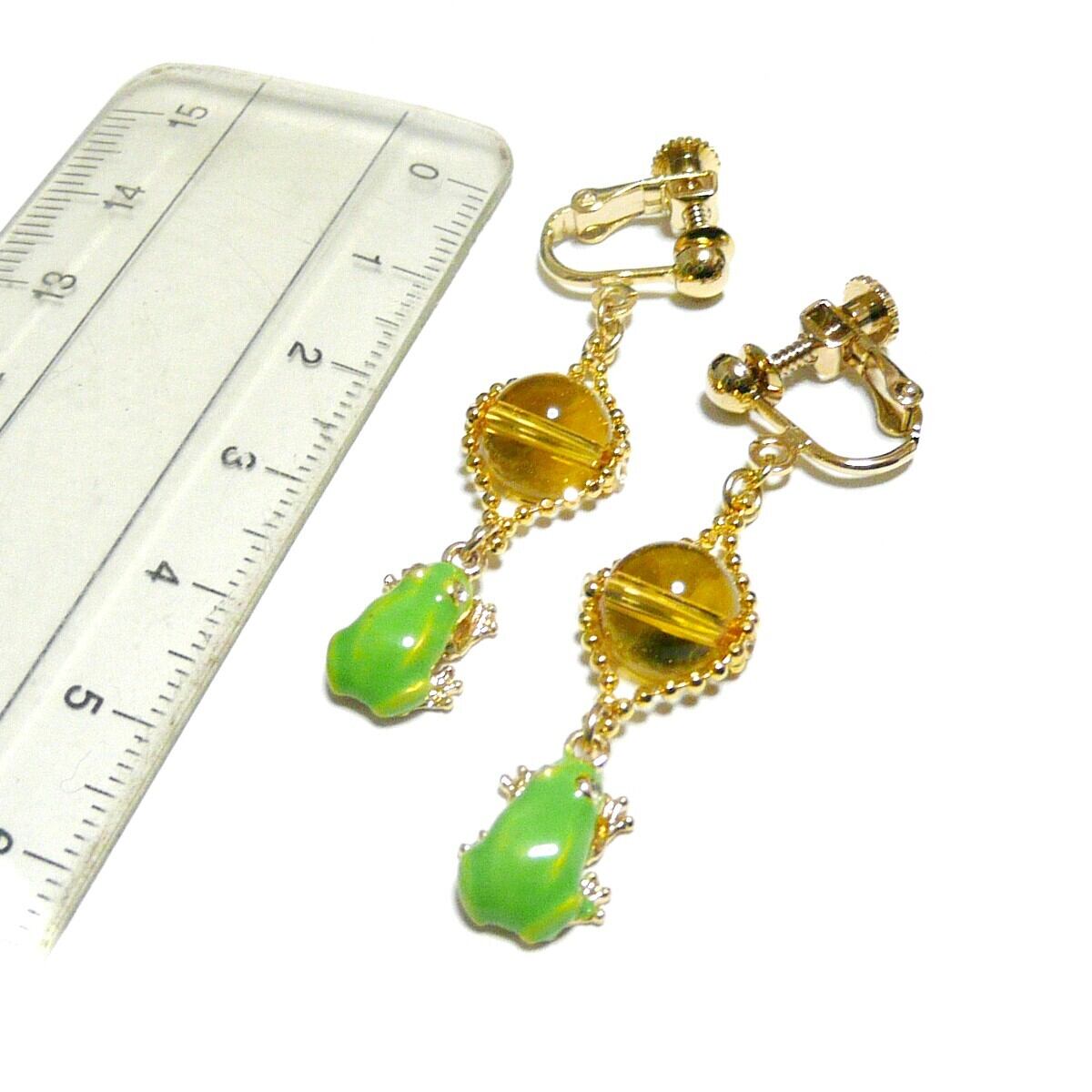 アマガエル イヤリング シトリン 黄水晶 8mm 蛙チャーム 金色 ゴールドカラー 【 かえる ぴょん 】