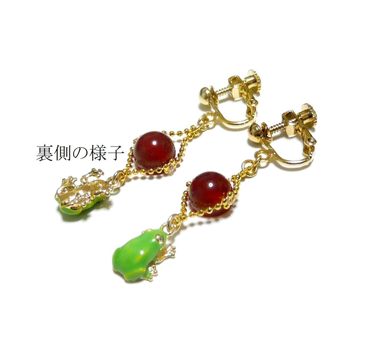 「 アマガエル ピアス カーネリアン 」と検索なさりご覧下さい。