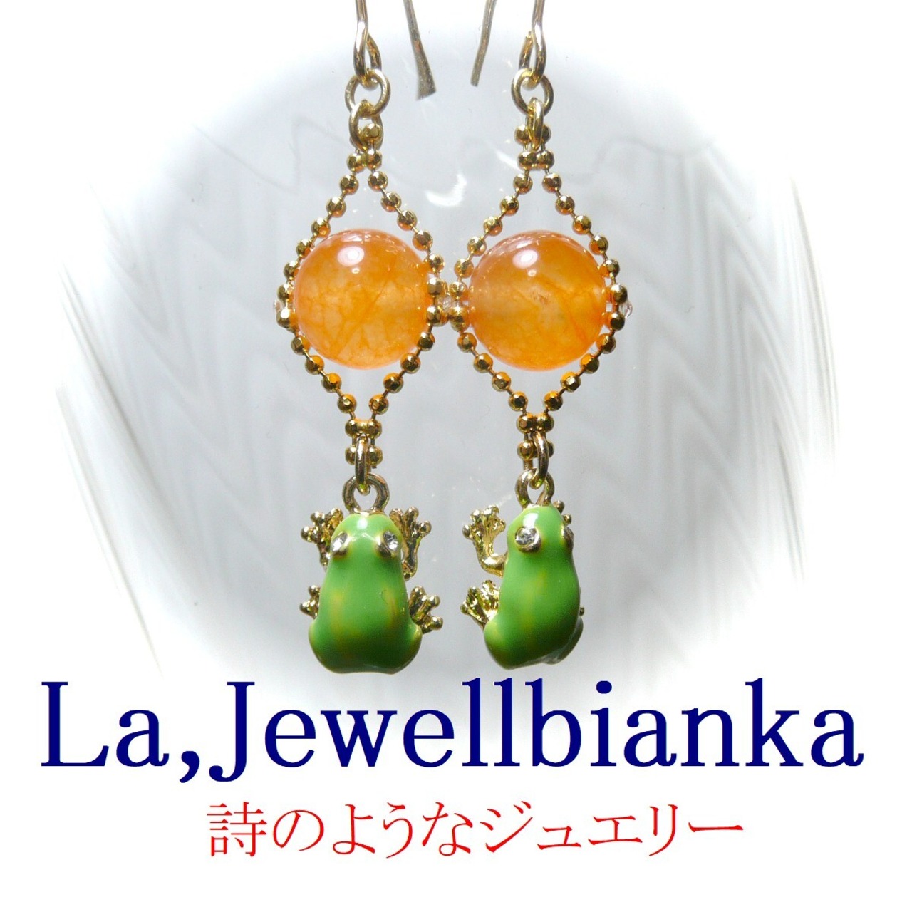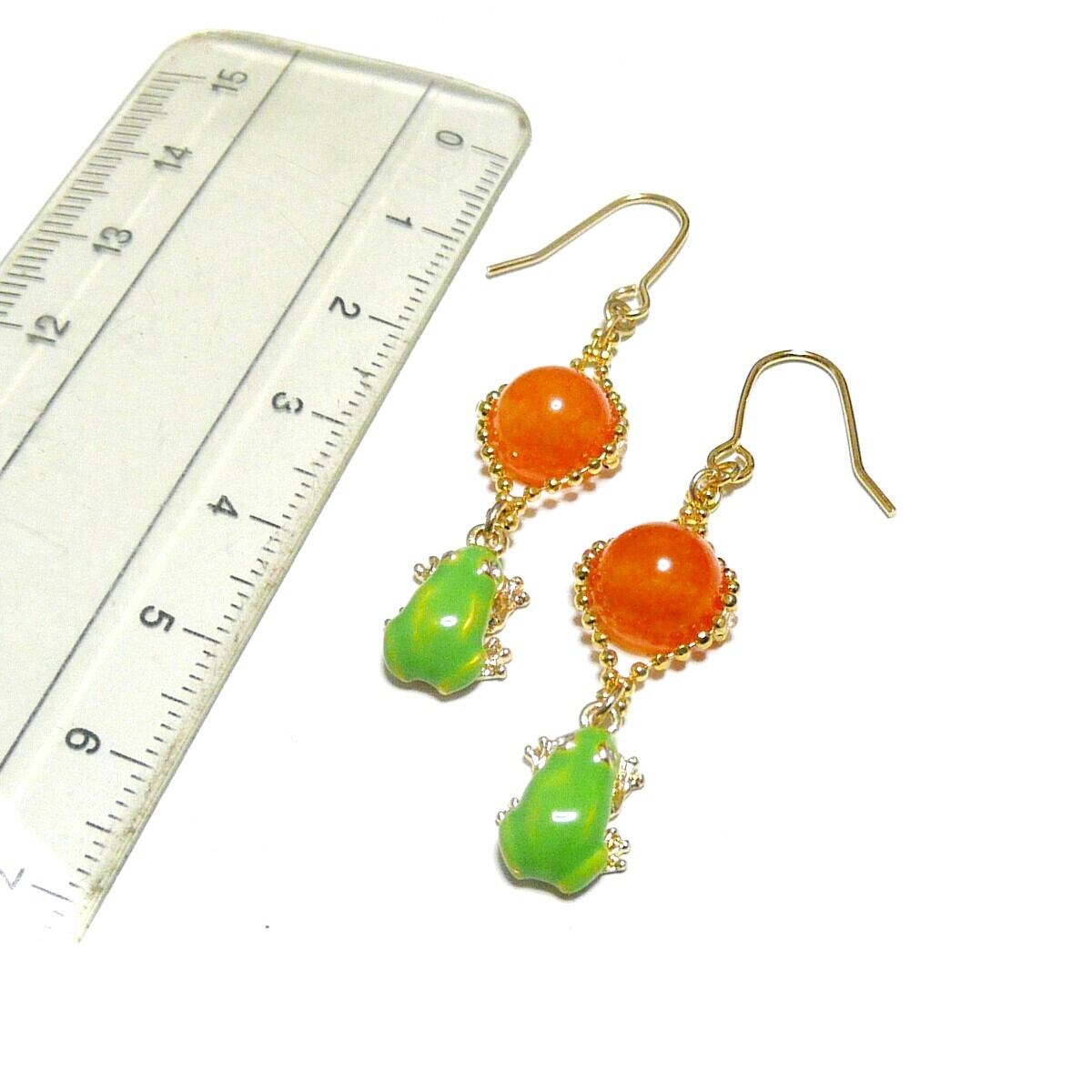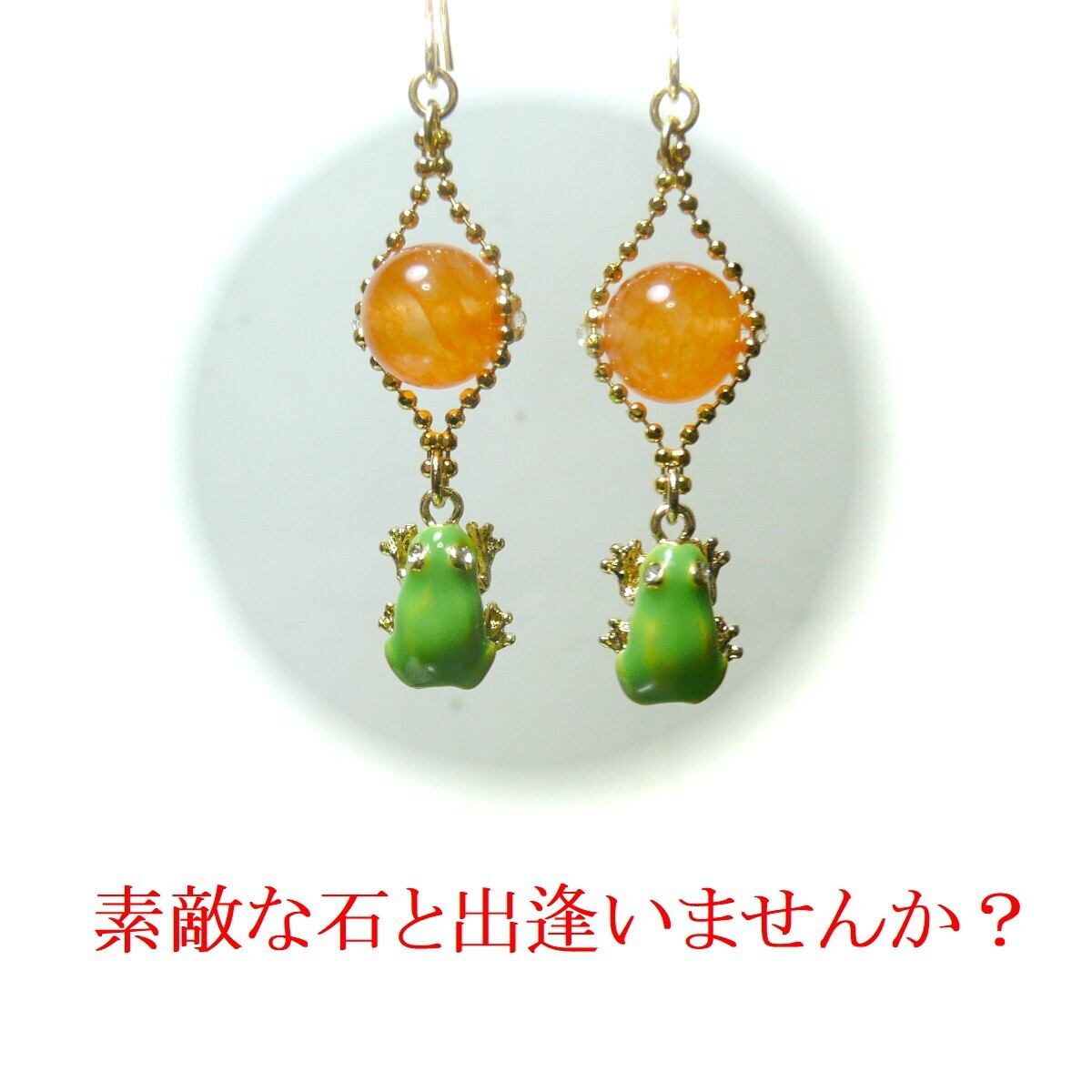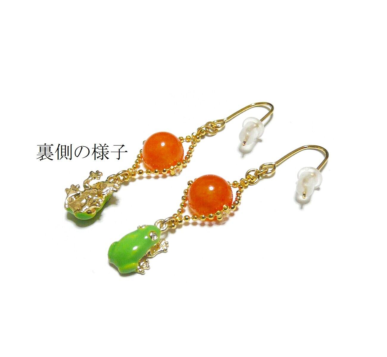 「 アマガエル イヤリング オレンジカルセドニー 」と検索なさりご覧下さい。