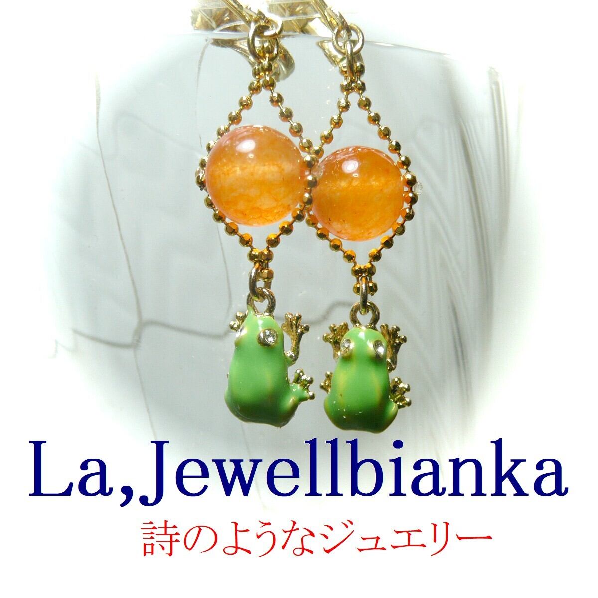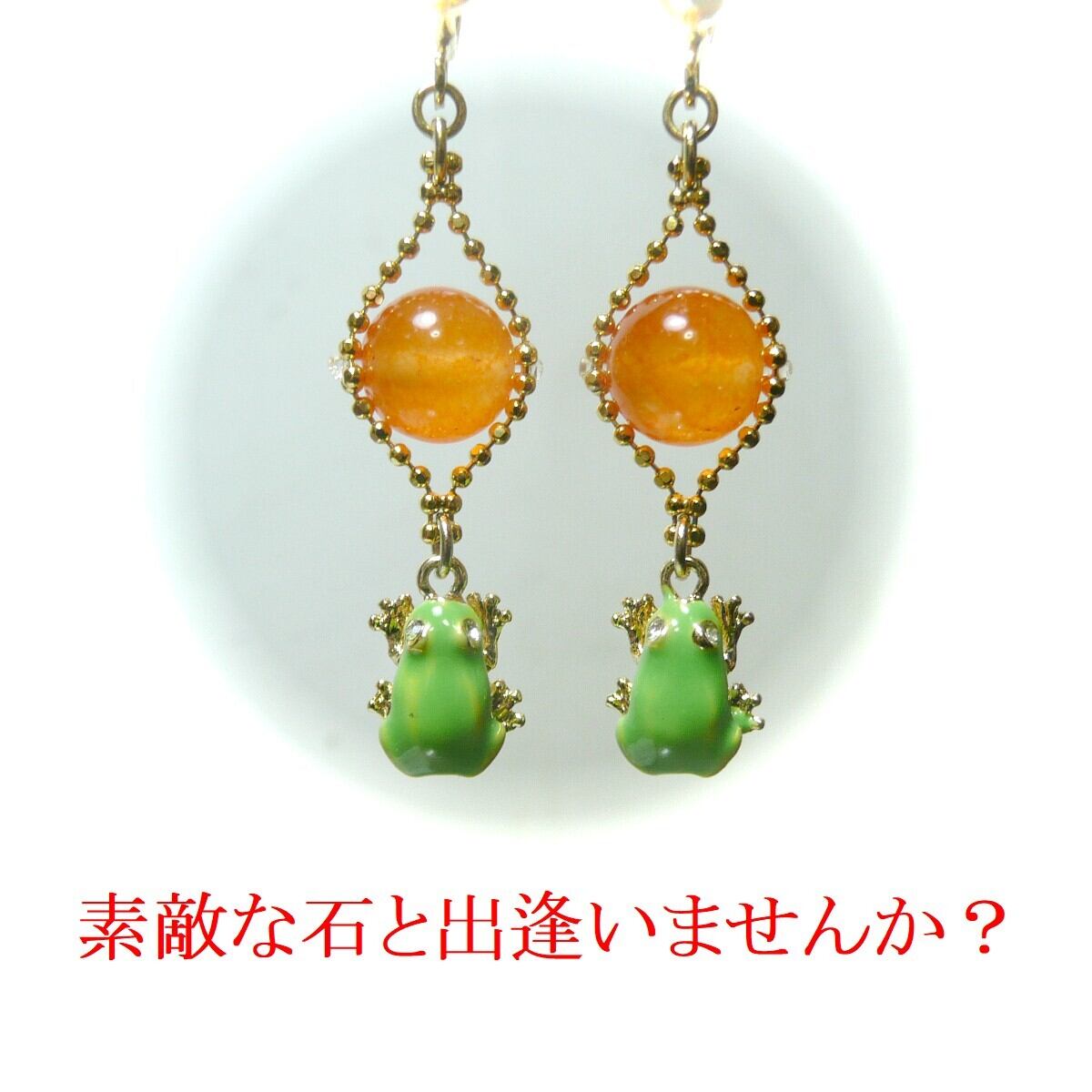 「 アマガエル ピアス オレンジカルセドニー 」と検索なさりご覧下さい。