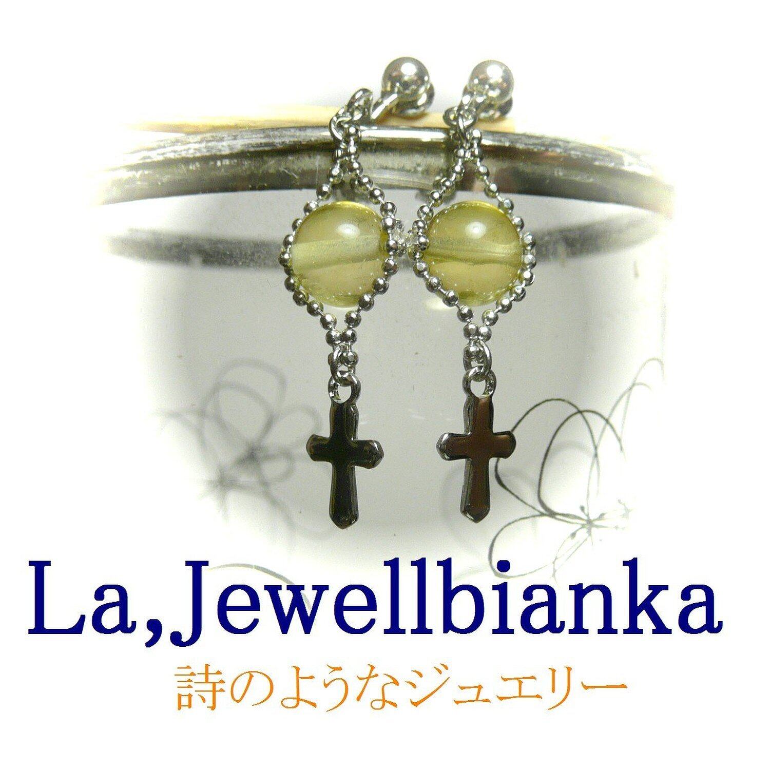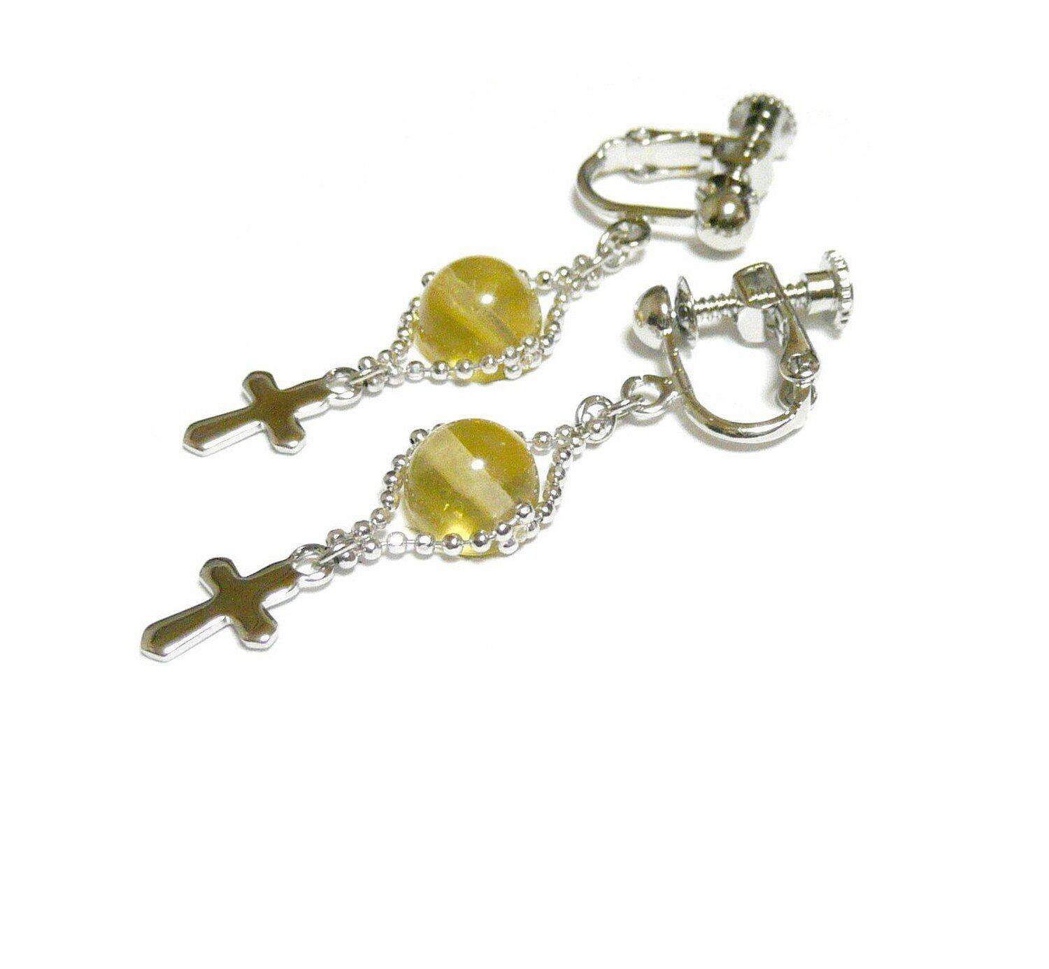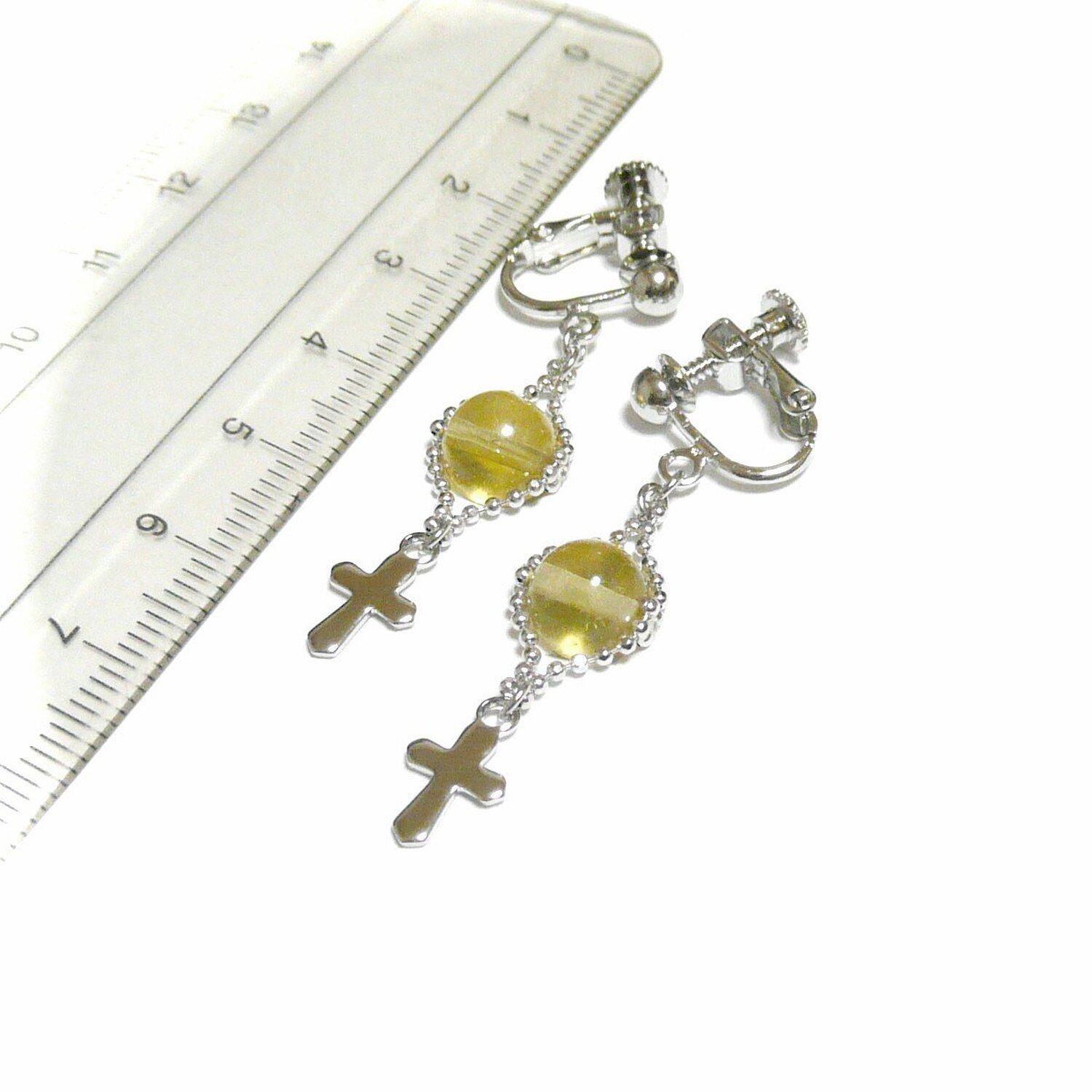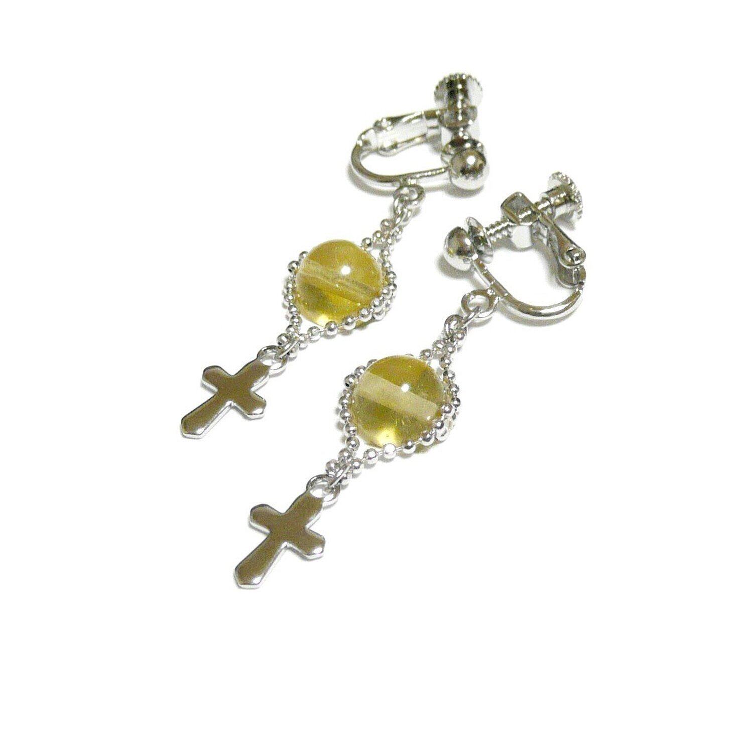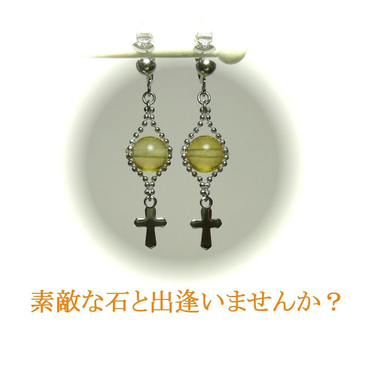 イエローオパール イヤリング 小さな十字架 銀色 シルバーカラー 藍晶石 【 Lily クロス 】