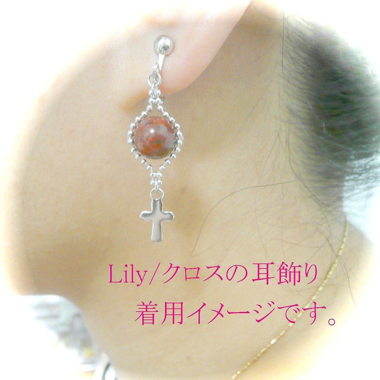 「 イエローオパール ピアス 小さな十字架 」と検索なさりご覧下さい。